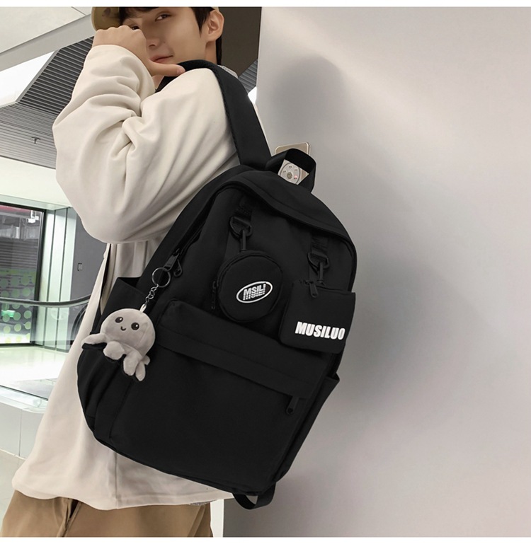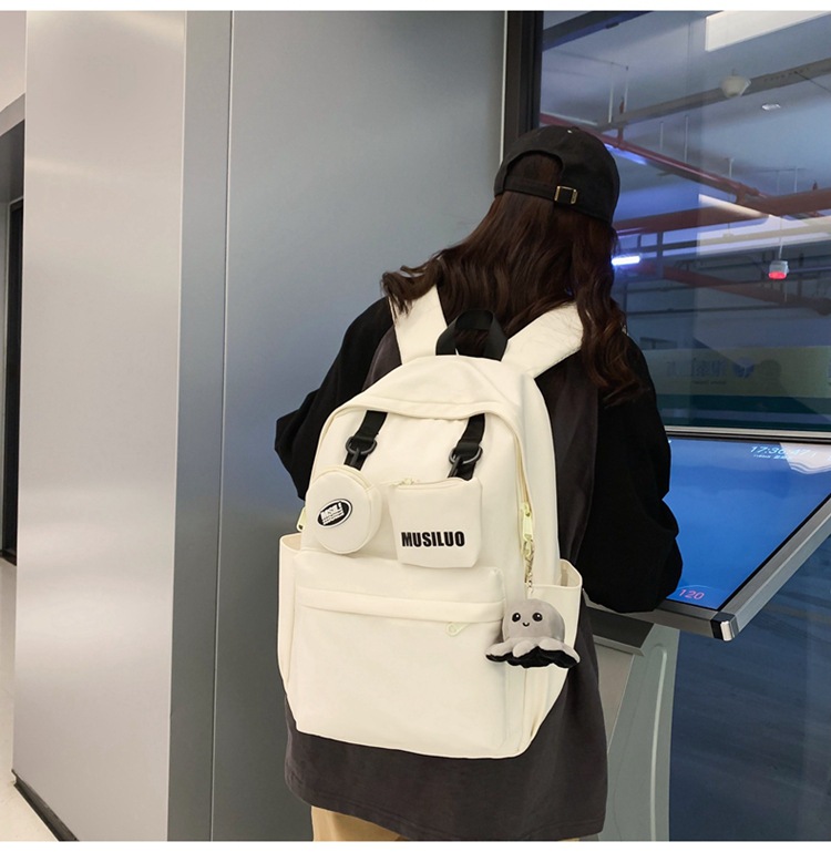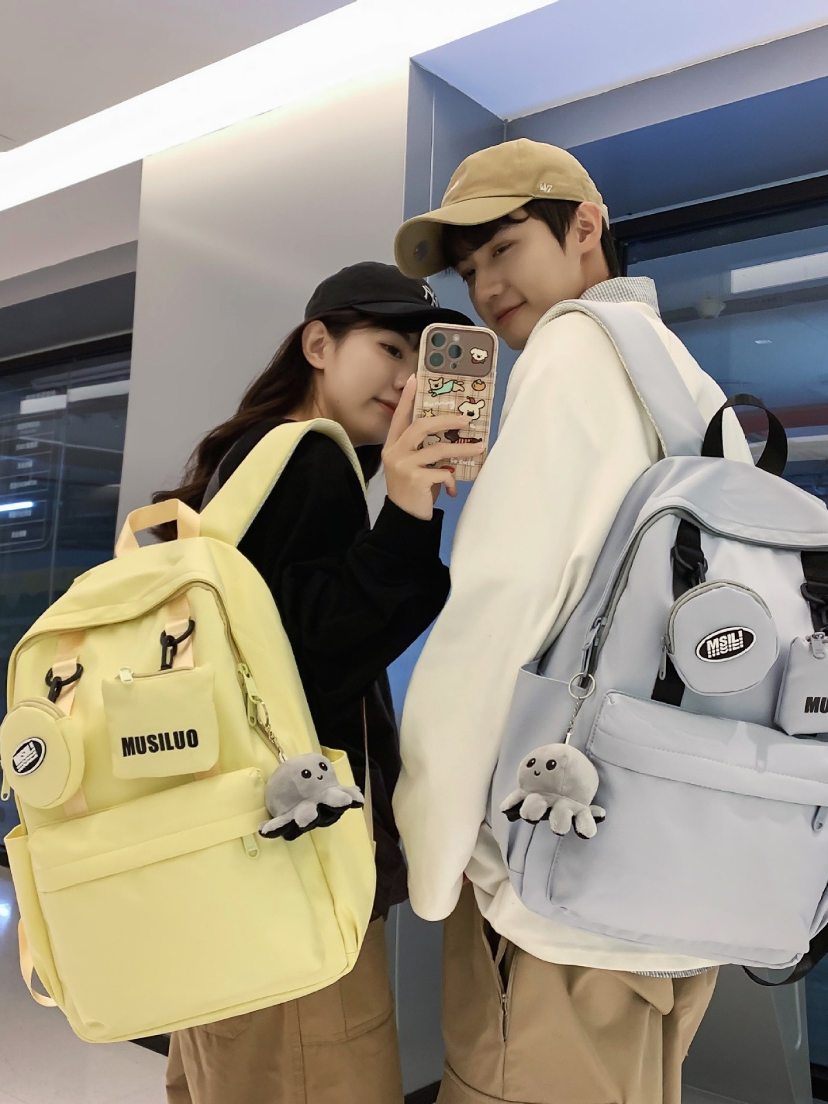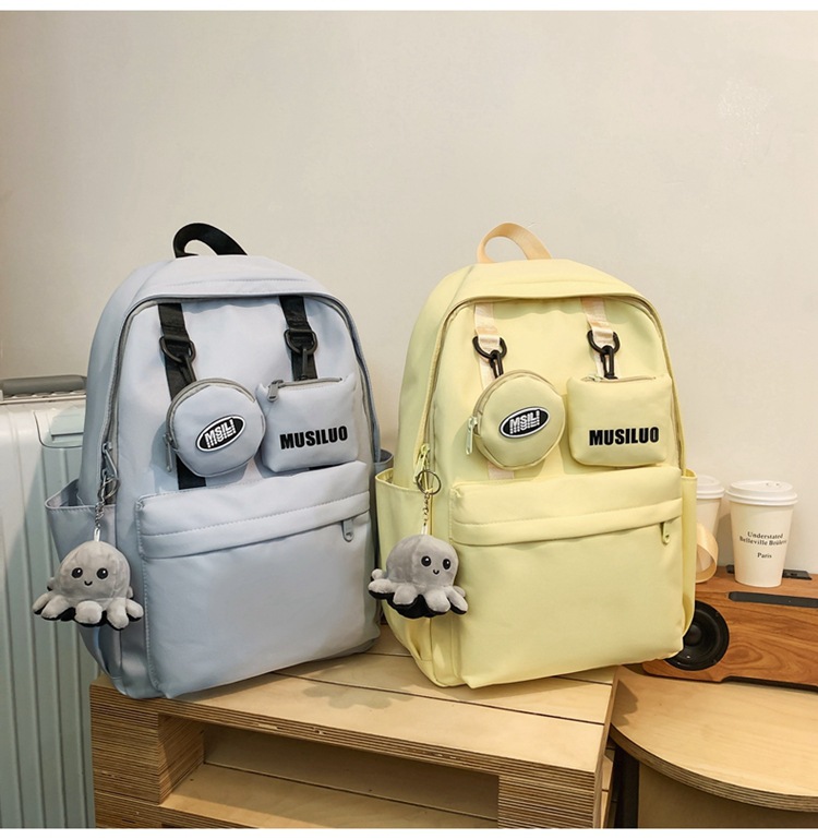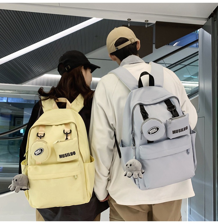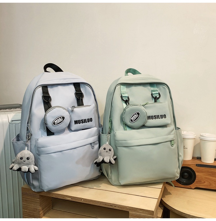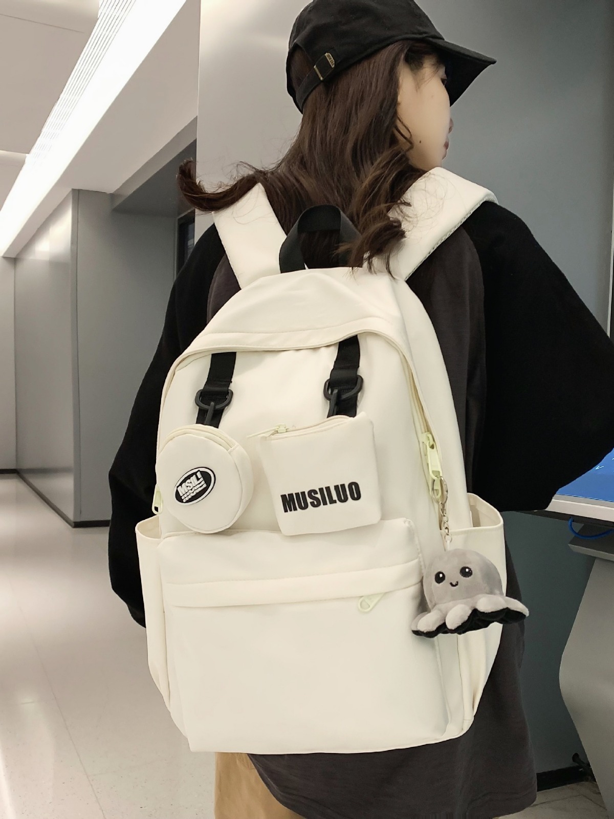 书包女新款ins学院风中学生双肩包纯色学生双肩包