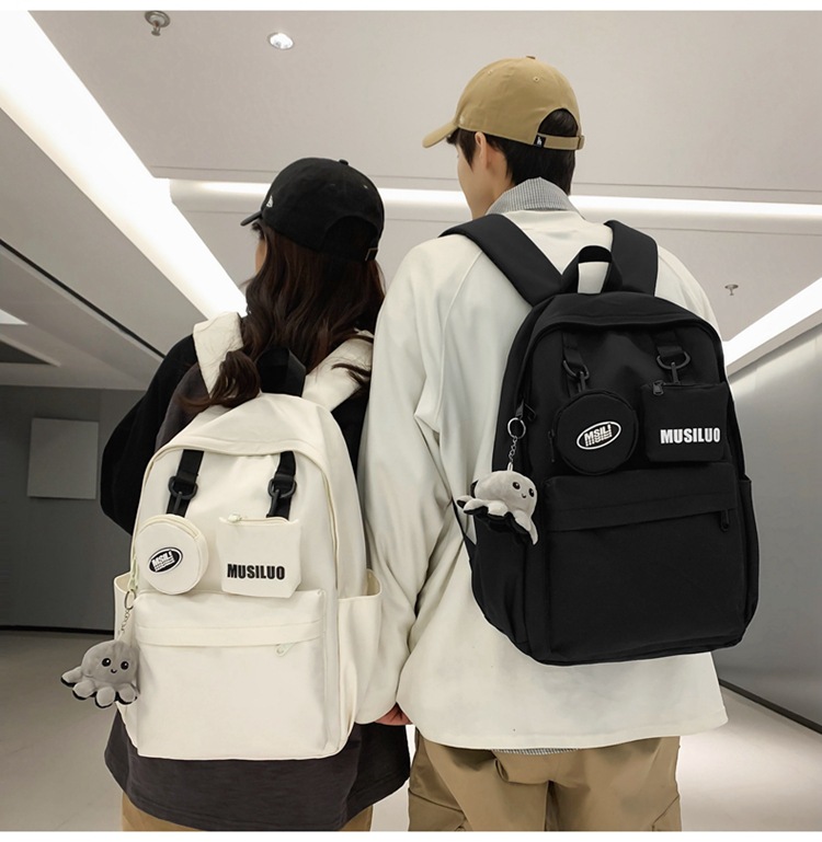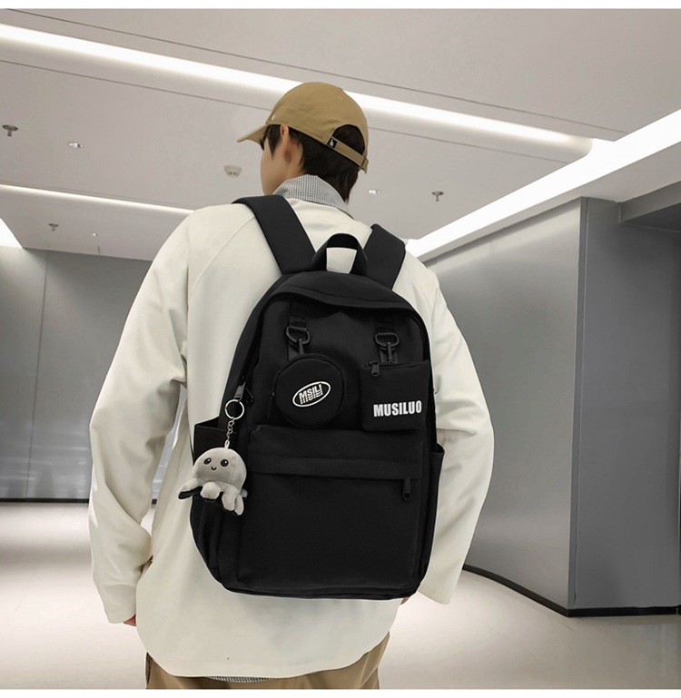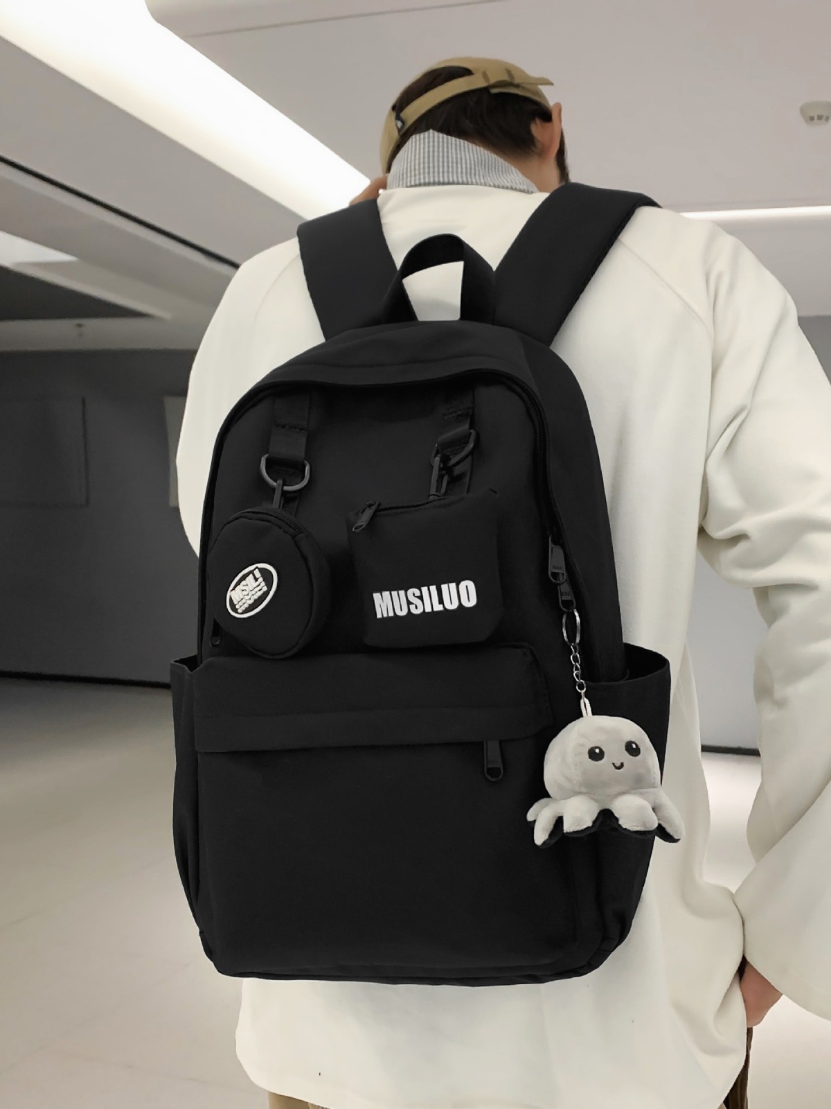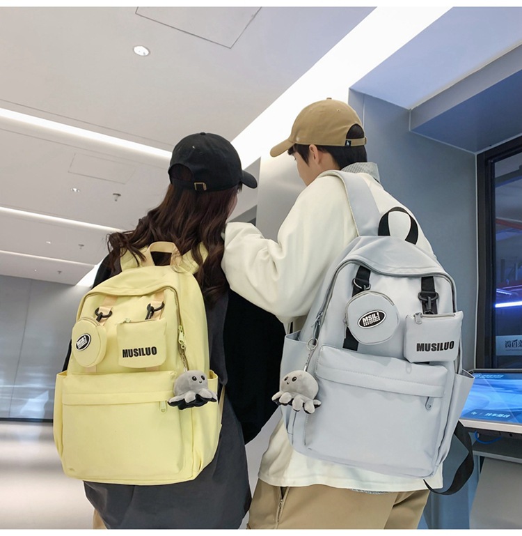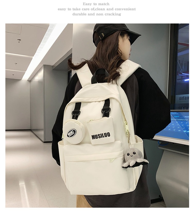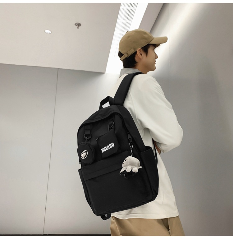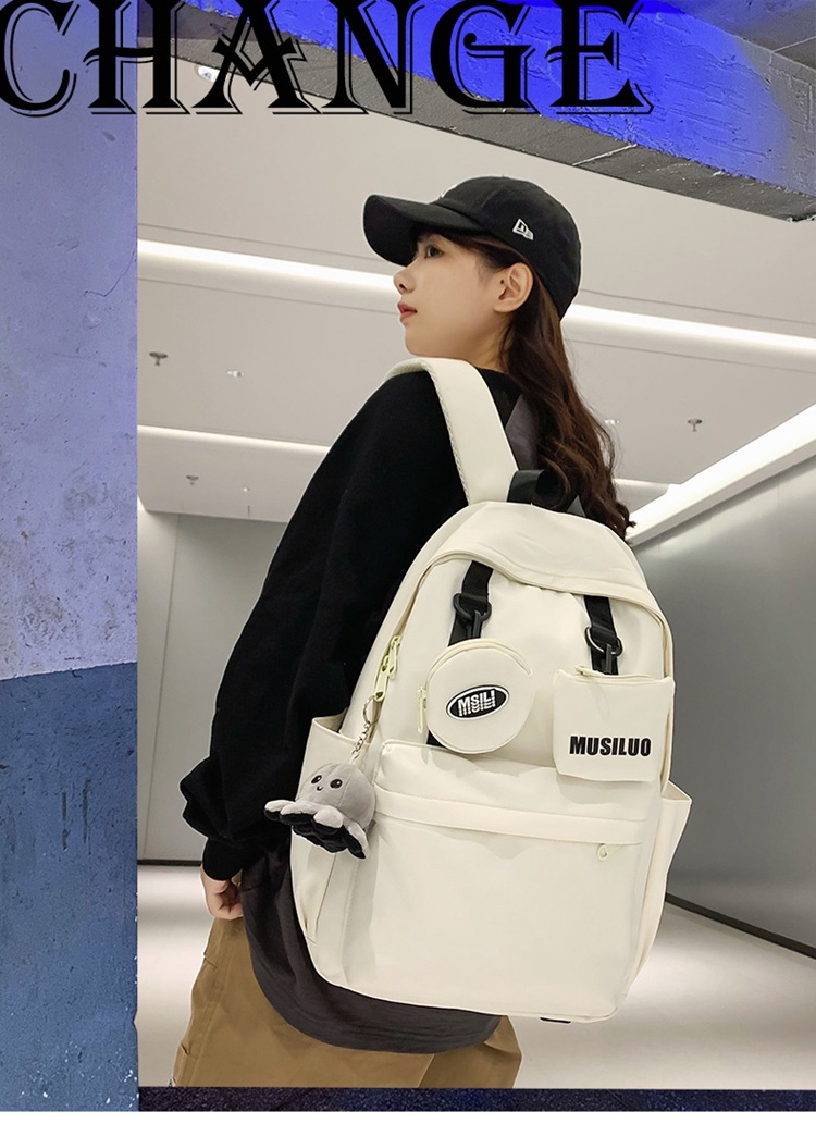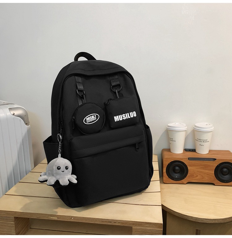书包女新款ins学院风中学生双肩包纯色学生双肩包