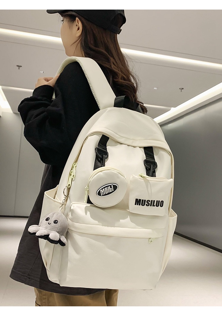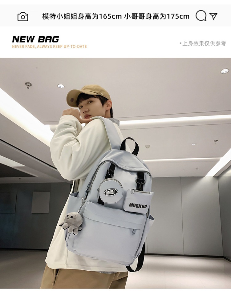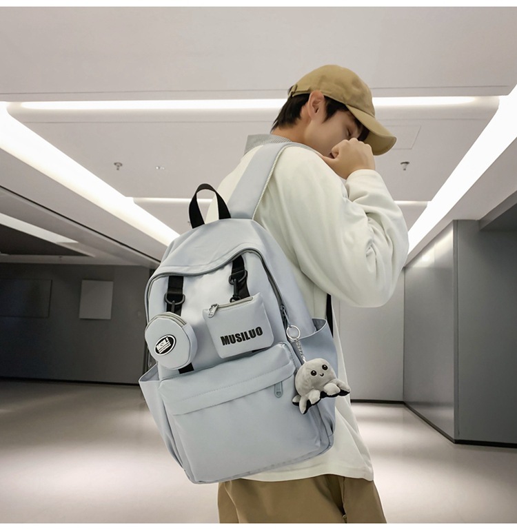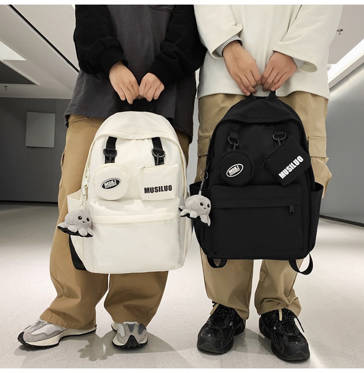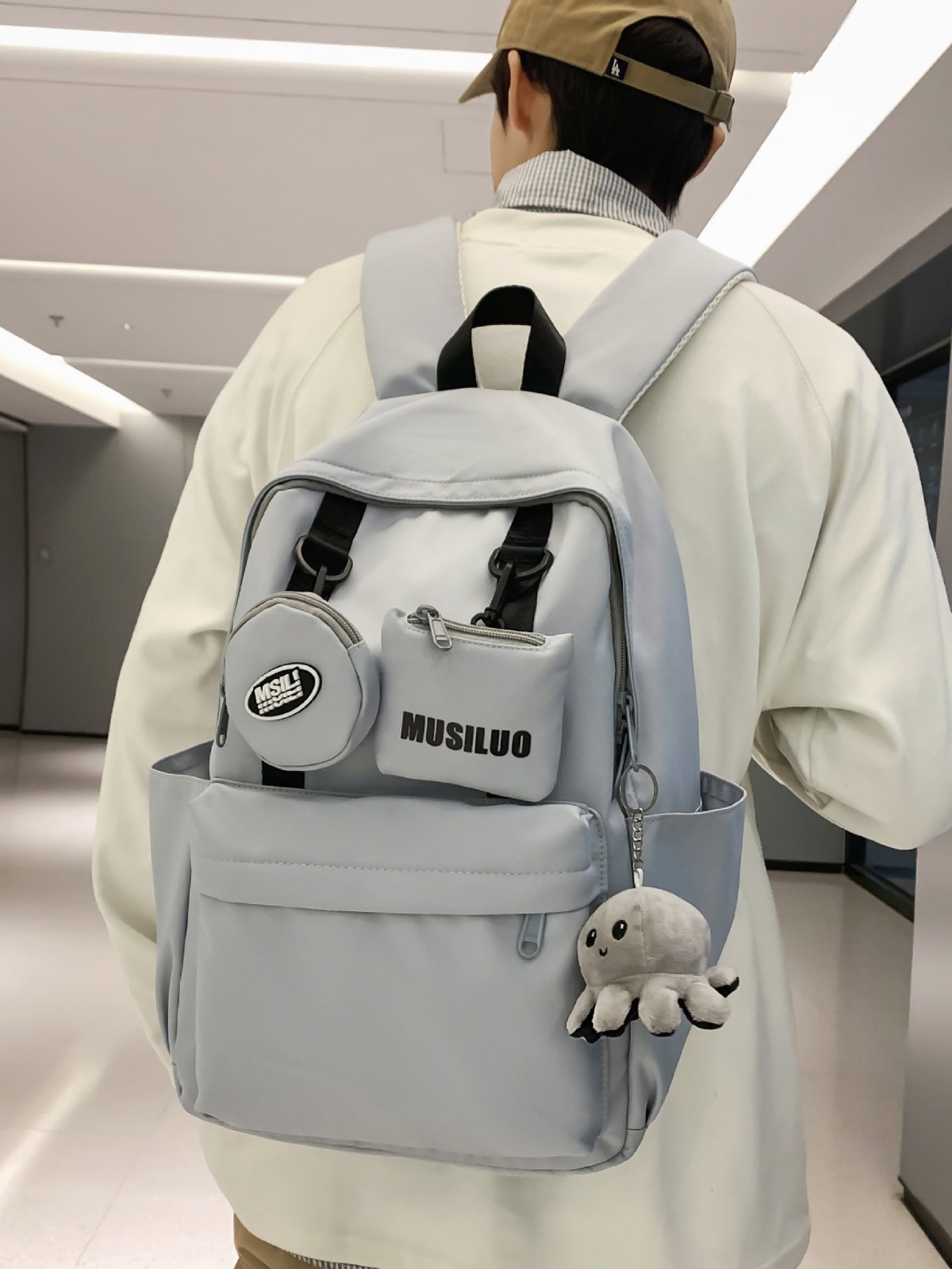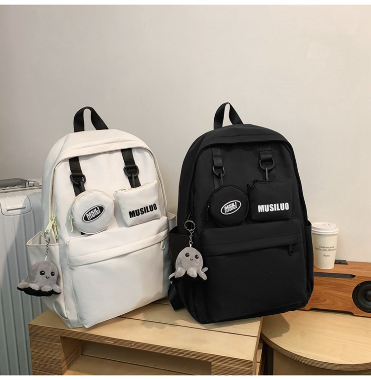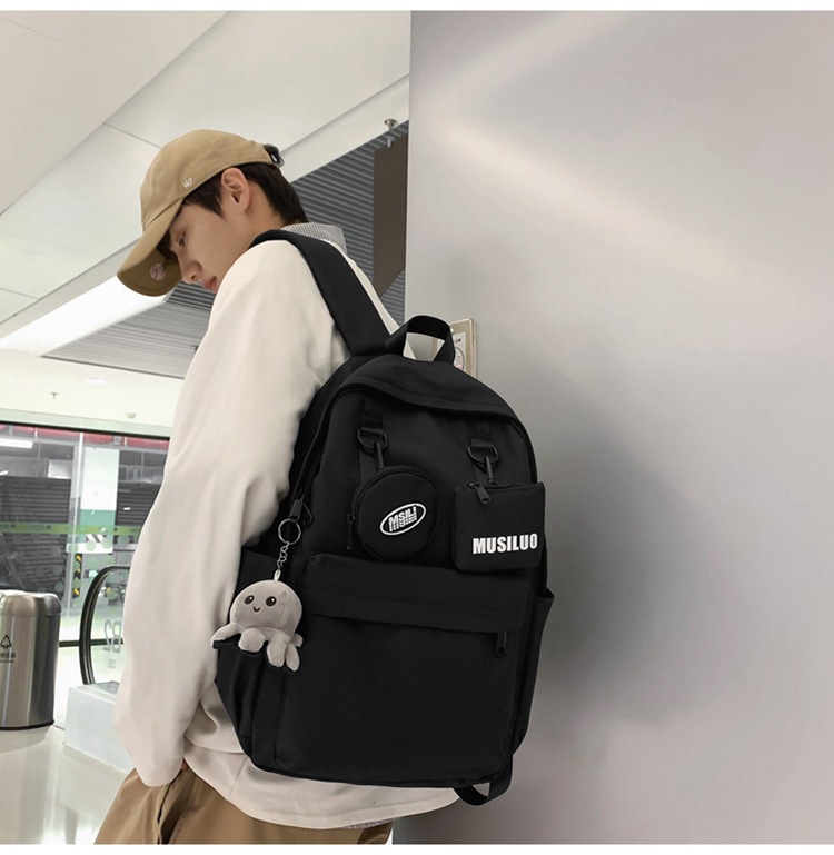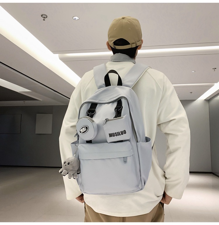 书包女新款ins学院风中学生双肩包纯色学生双肩包
