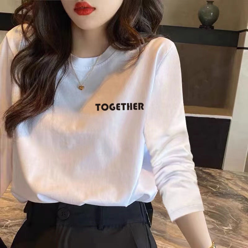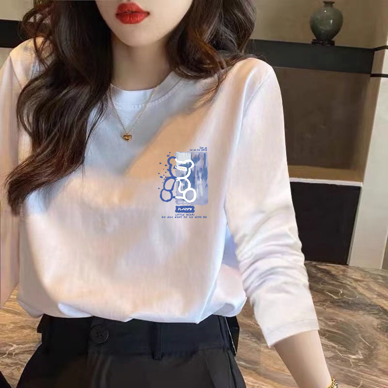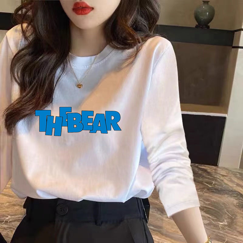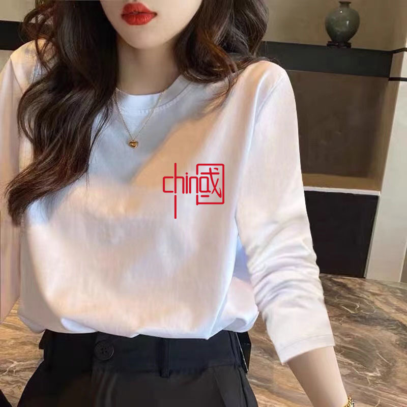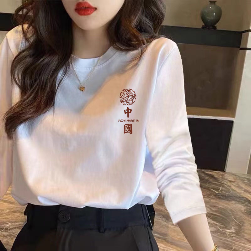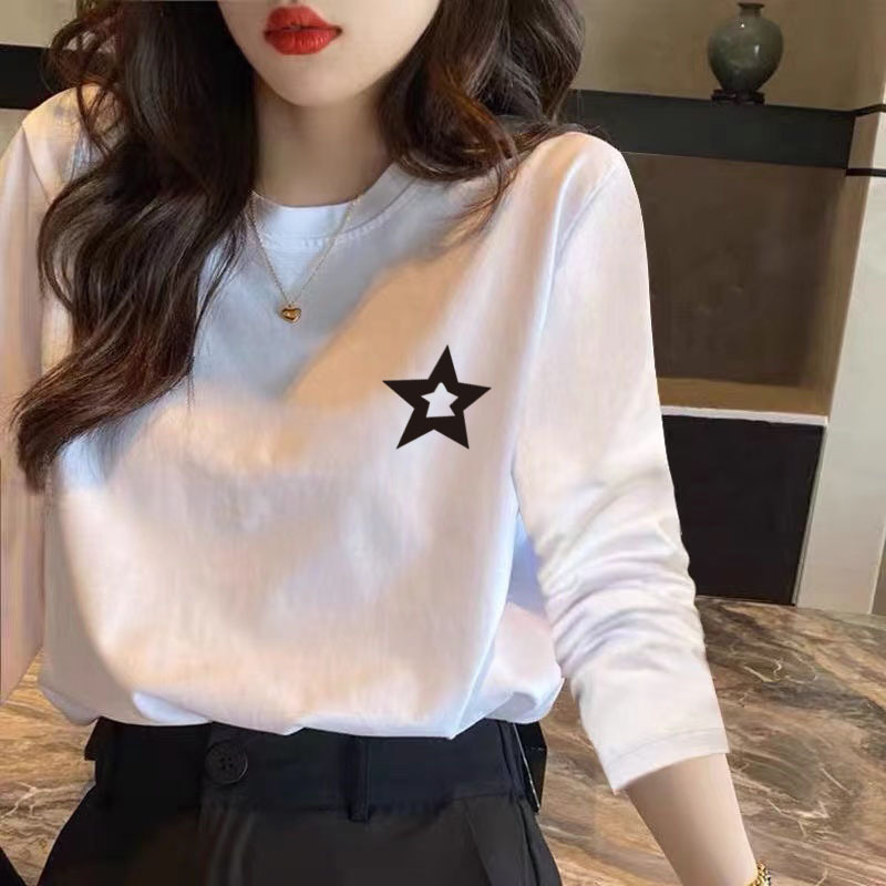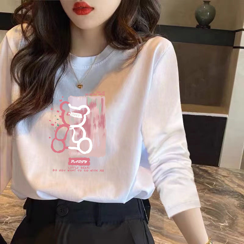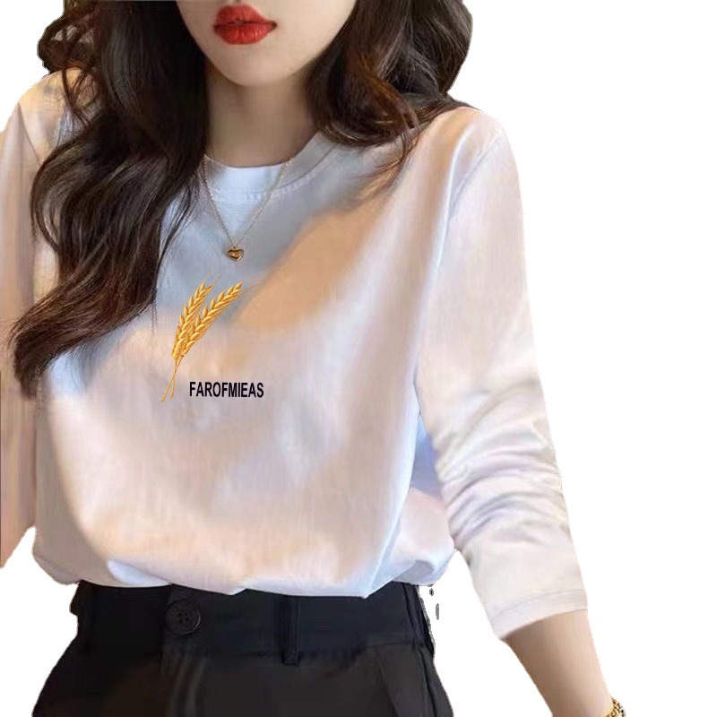2024春夏韩系慵懒风女装新款纯棉宽松圆领长袖t恤女地摊外贸