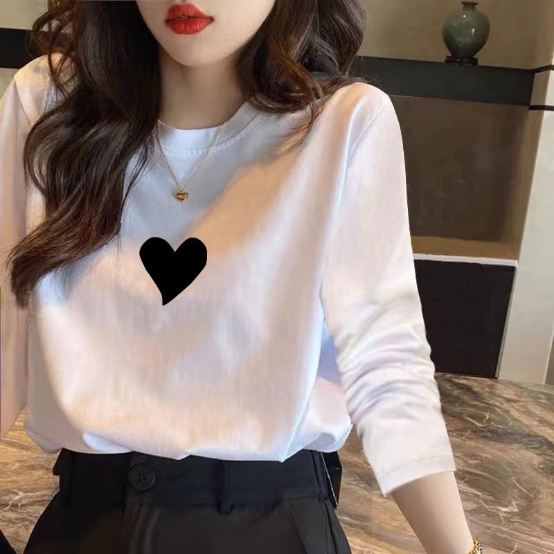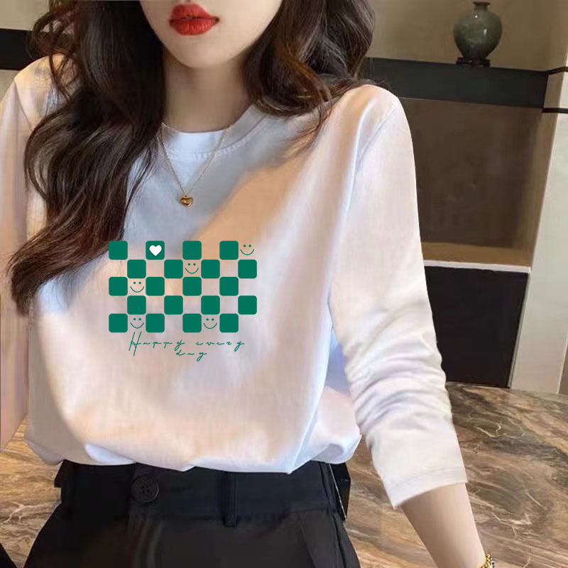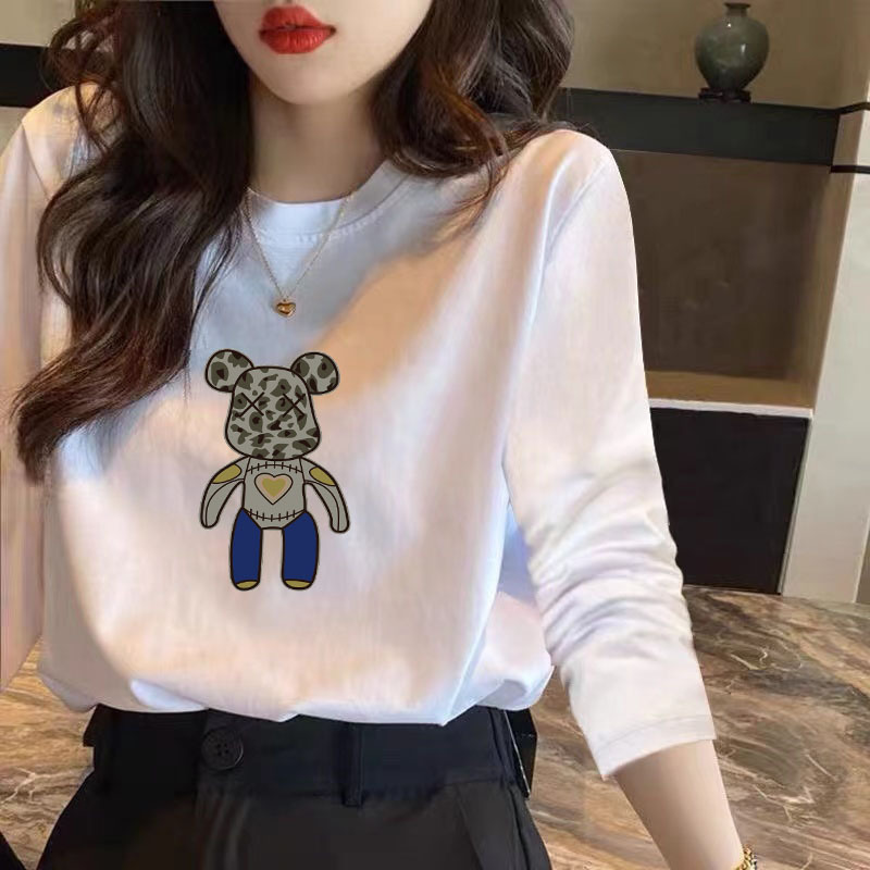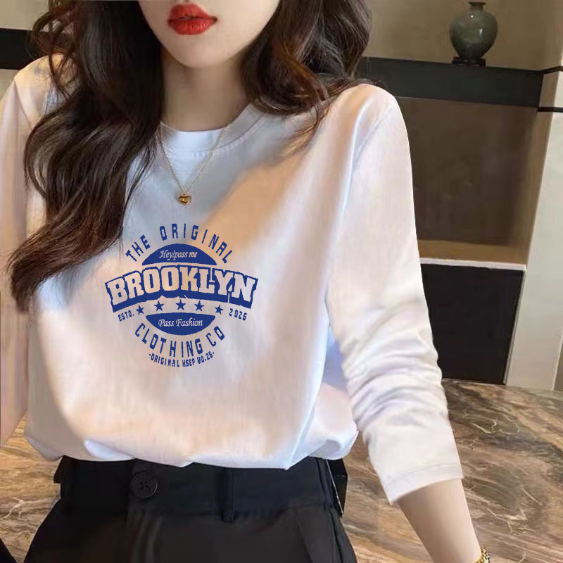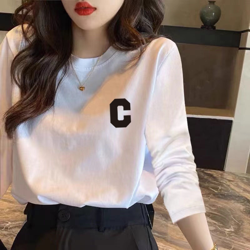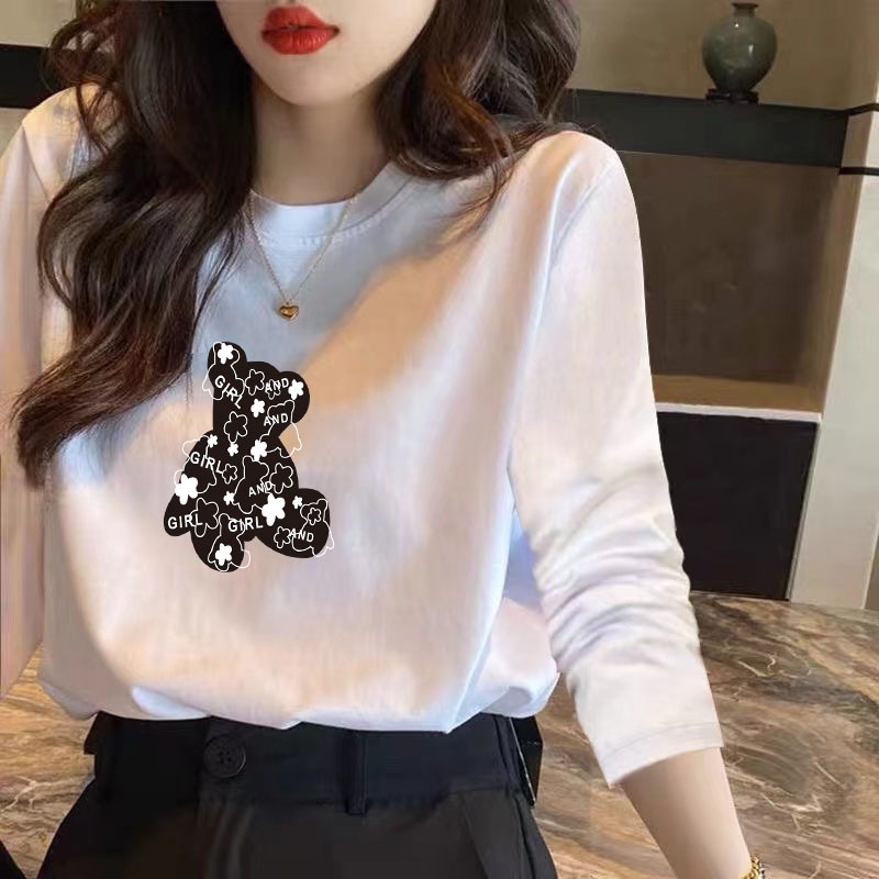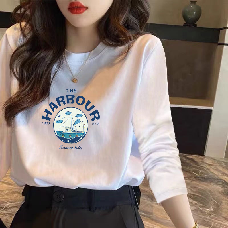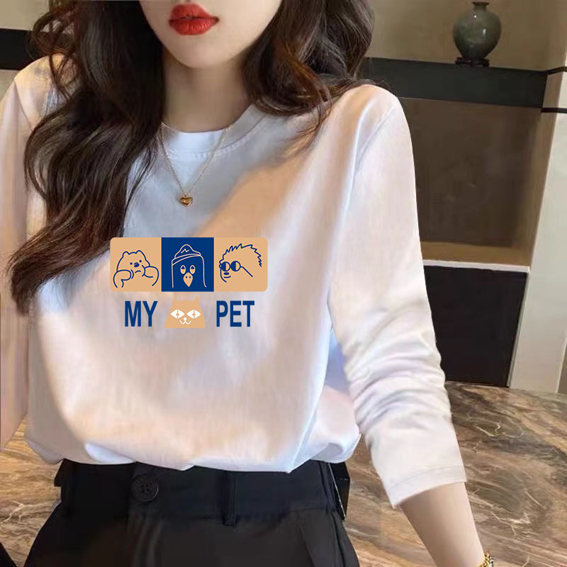 2024春夏韩系慵懒风女装新款纯棉宽松圆领长袖t恤女地摊外贸