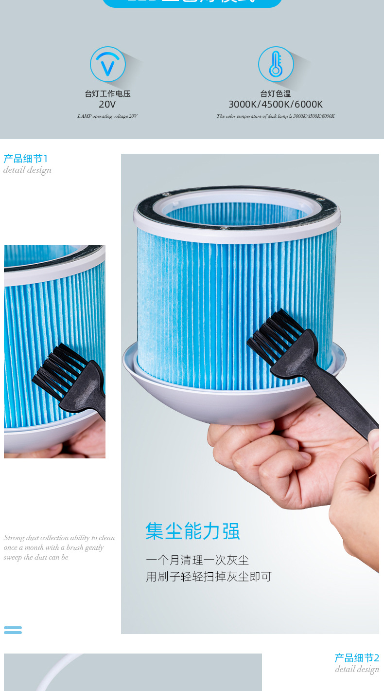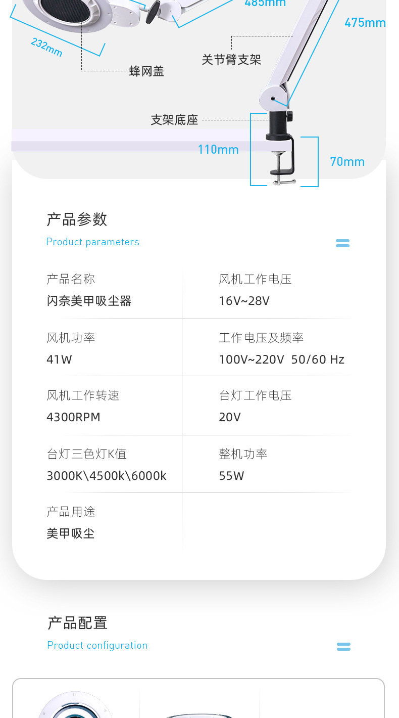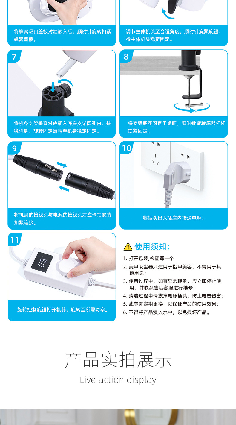 新款高端美甲吸尘器照明顶吸吸力强4BLANC德国风机