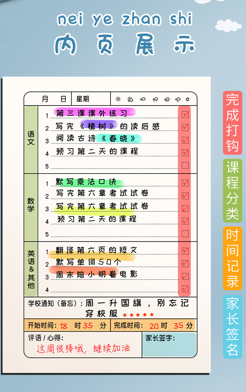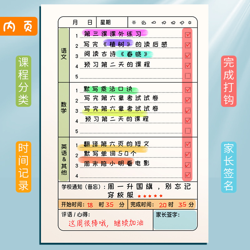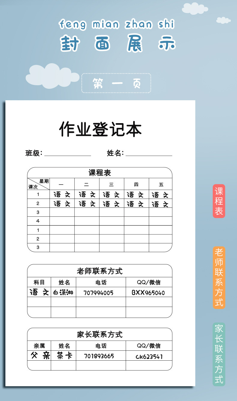 小学生卡通课堂学习用练习本作业登记本学校儿童作业本抄写笔记本