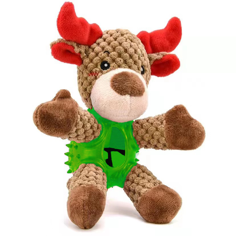 圣诞节日麋鹿等狗发声橡胶毛绒漏食清洁牙齿洁齿互动玩具
