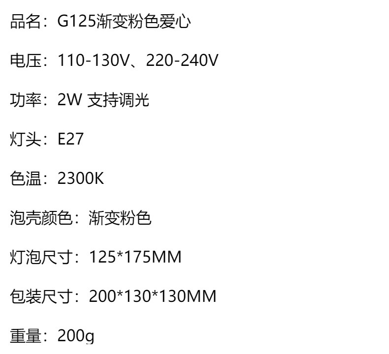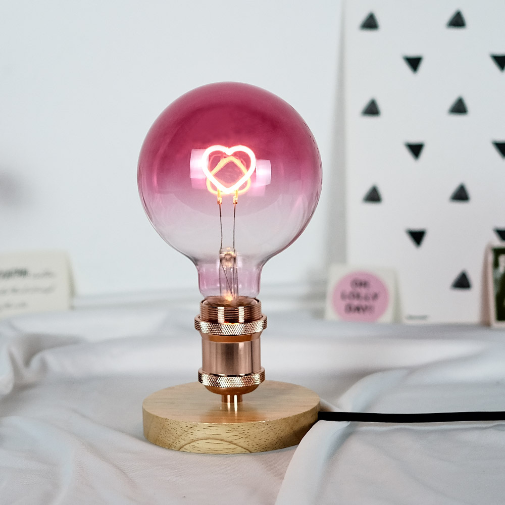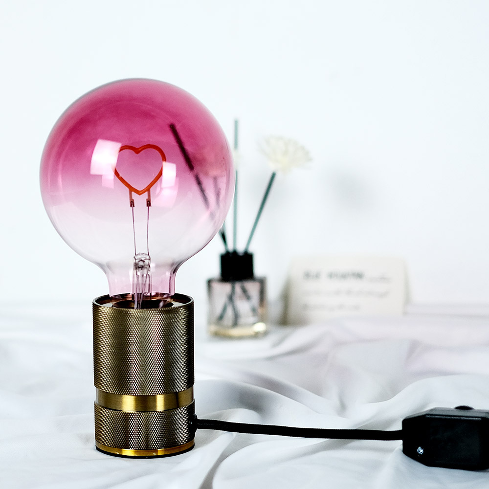 外贸专供G125渐变粉色爱心灯泡支持调光LED暖光灯爱迪生灯泡粉灯