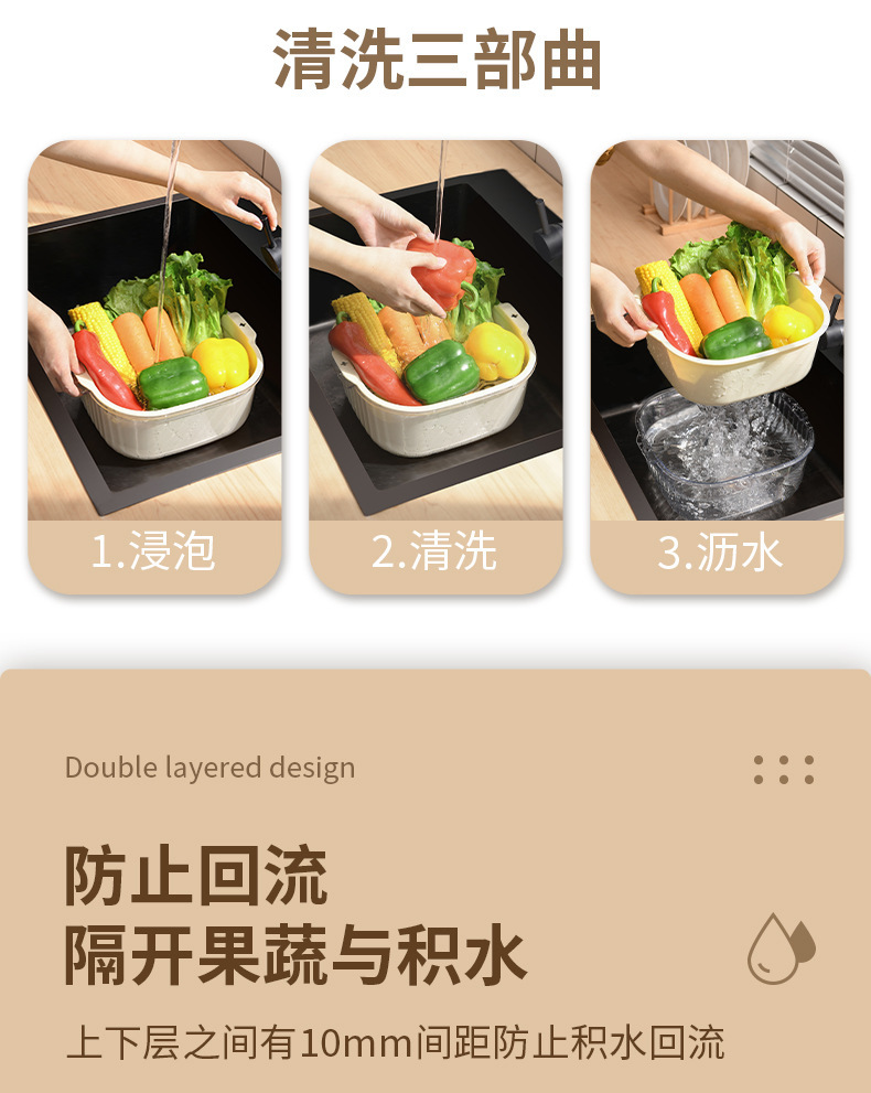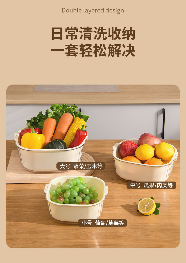 洗菜盆沥水篮客厅茶几水果盘厨房双层洗菜篮家用洗水果淘菜盆