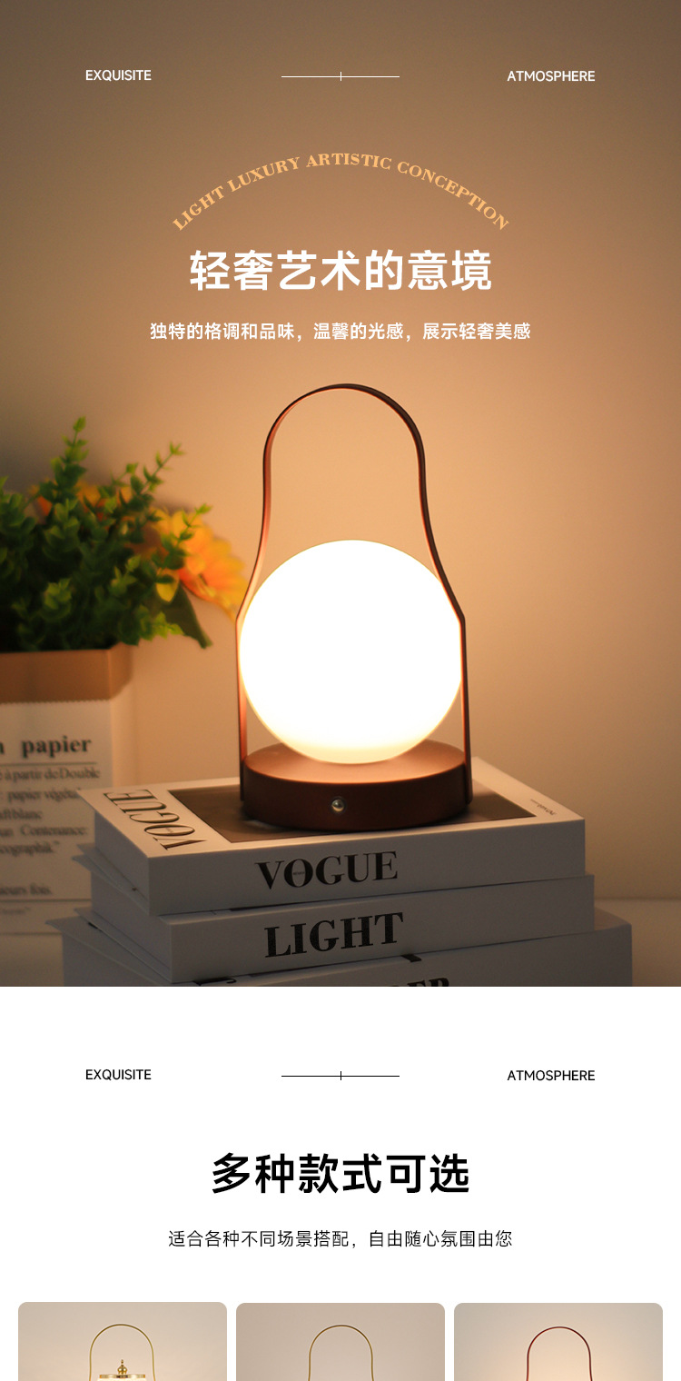 外贸专供LED手提简约台灯小夜灯月球充电壁挂灯多功能球形手提灯