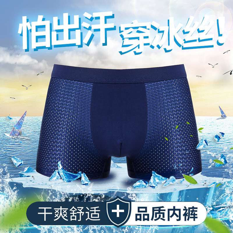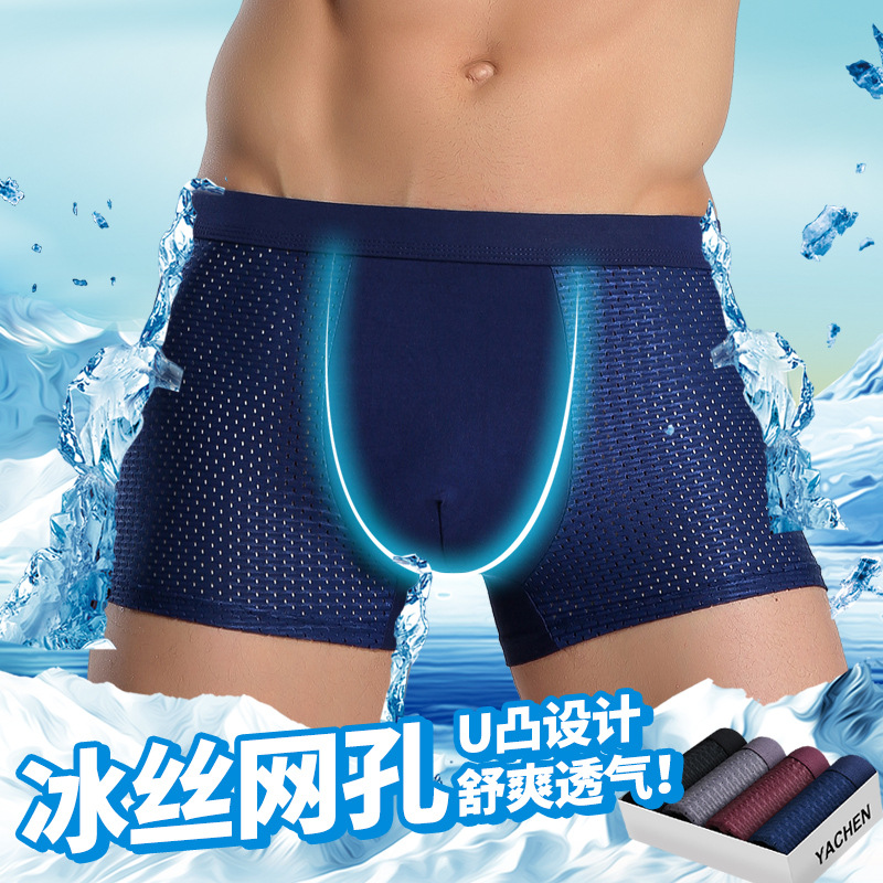男士内裤冰丝男平角裤网眼夏季四角内裤厂家批发