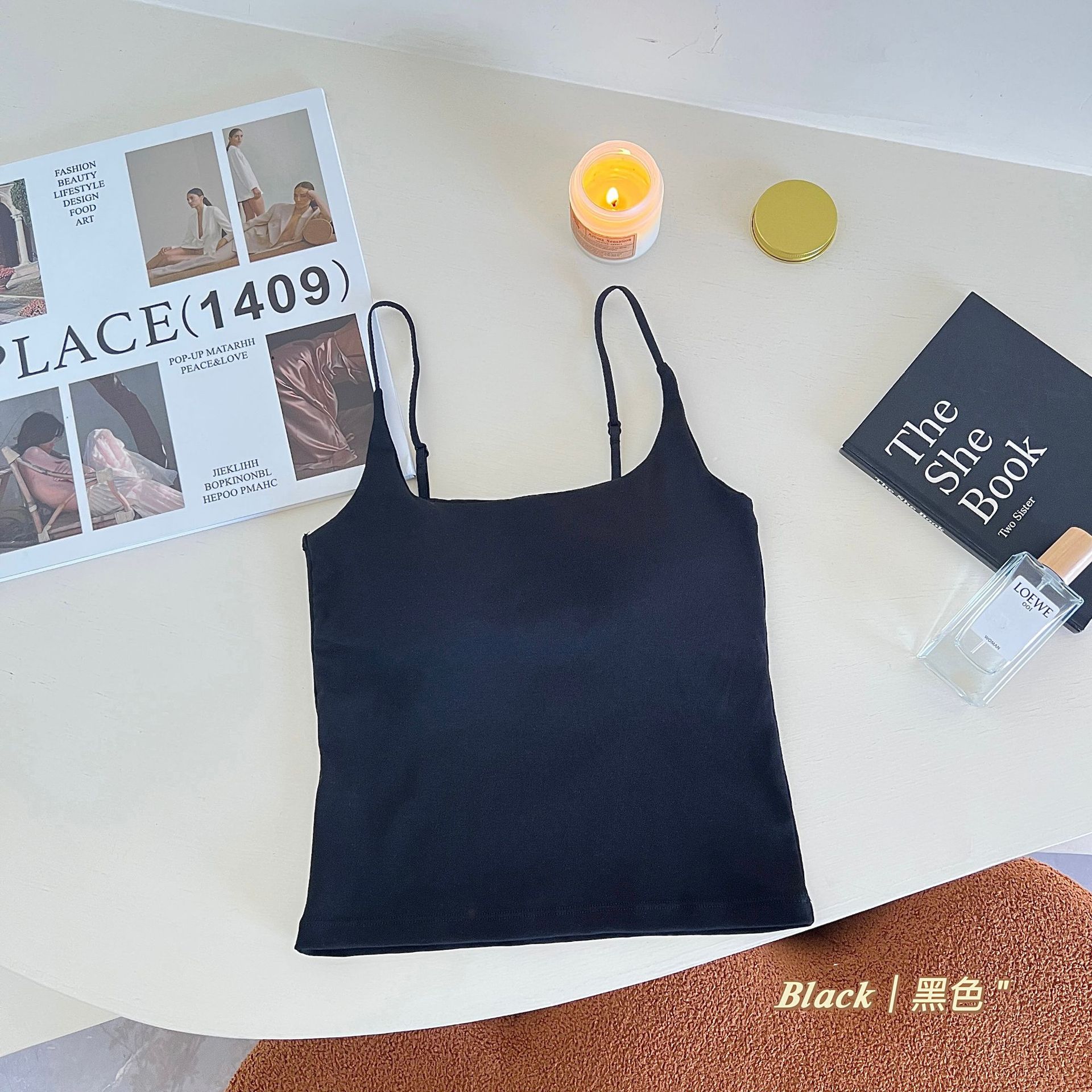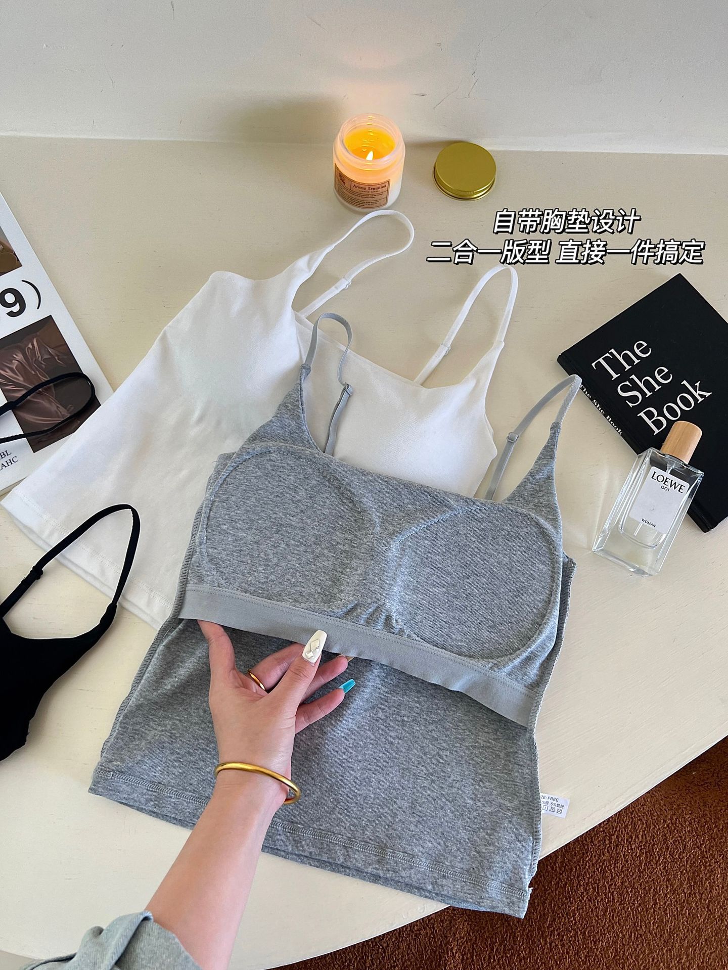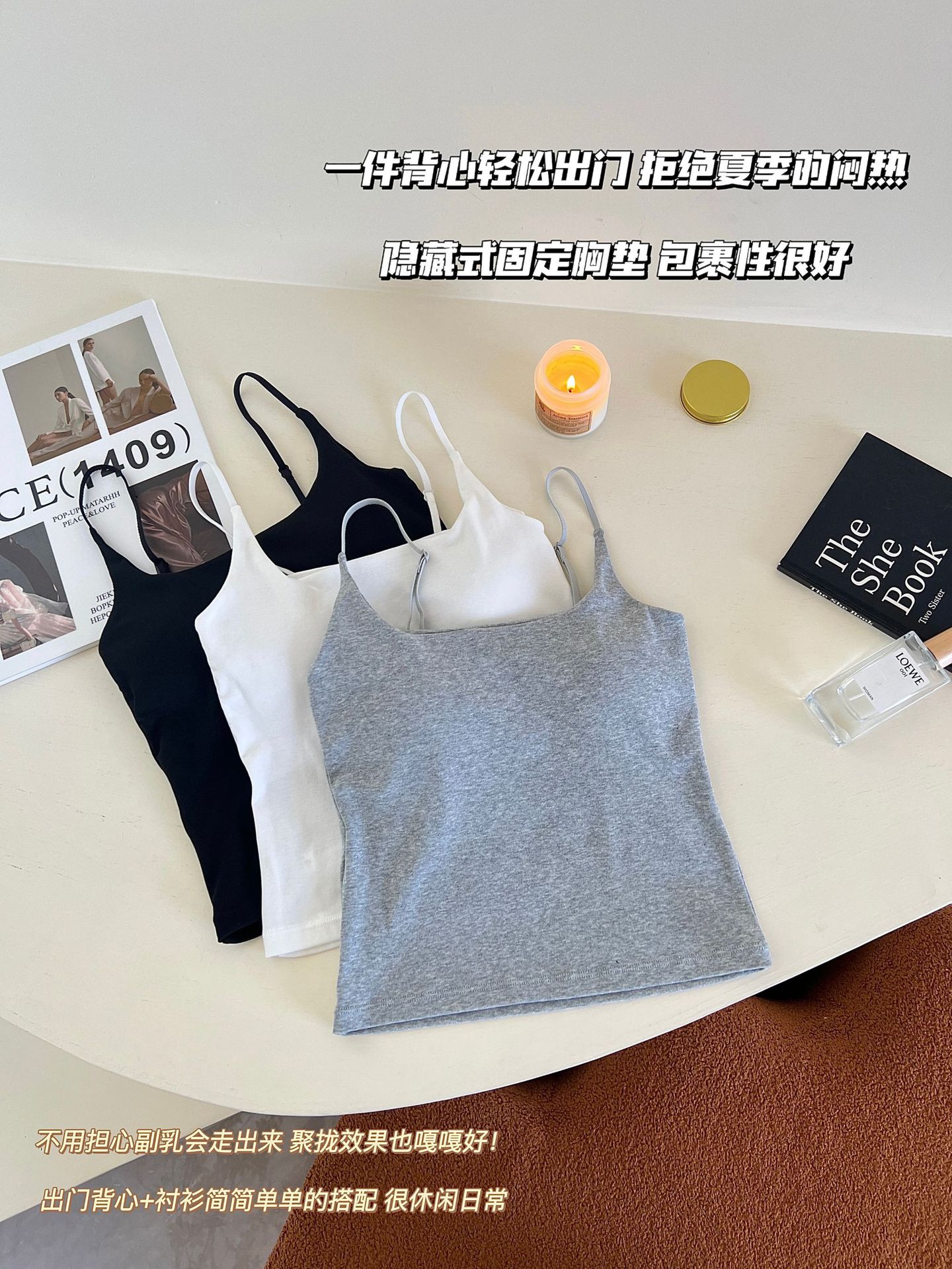 春夏女士美背纯棉吊带背心内外穿搭辣妹纯欲风带固定胸垫打底内衣
