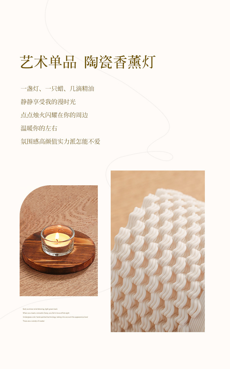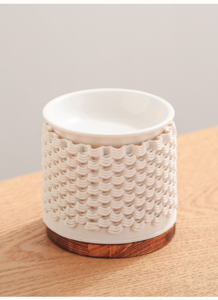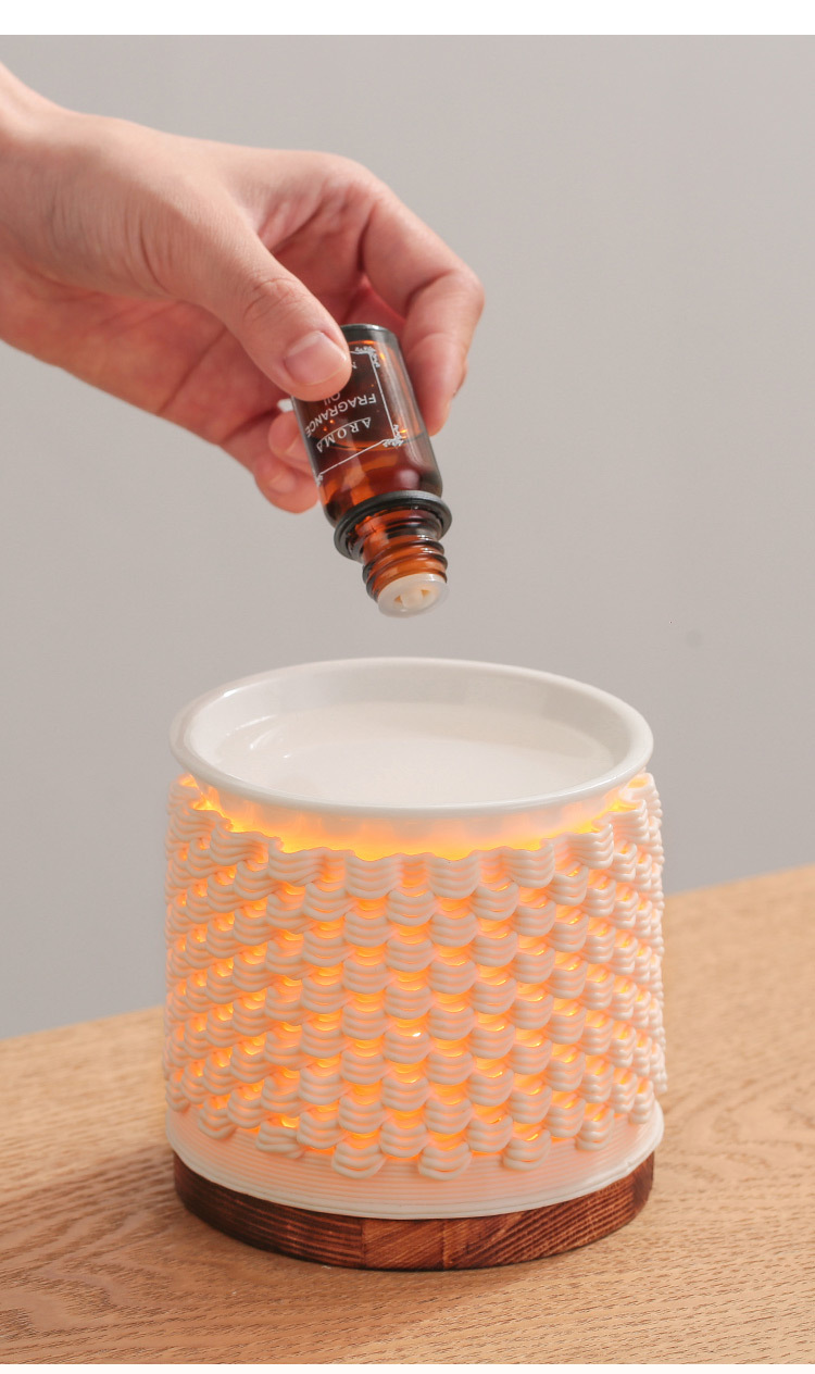 外贸专供3D打印陶瓷木底绵绵炉 香薰灯香薰炉精油蜡烛灯炉 熏香