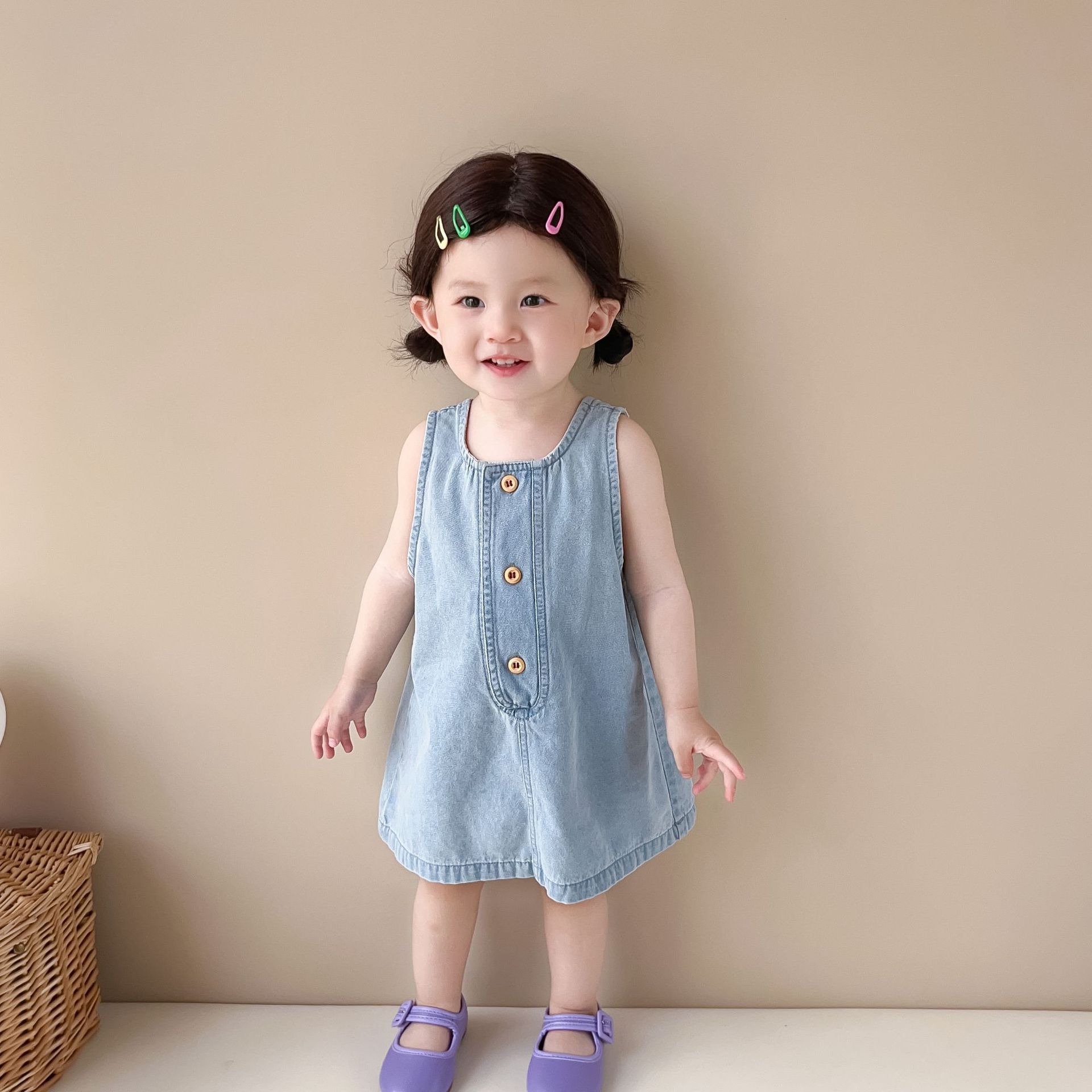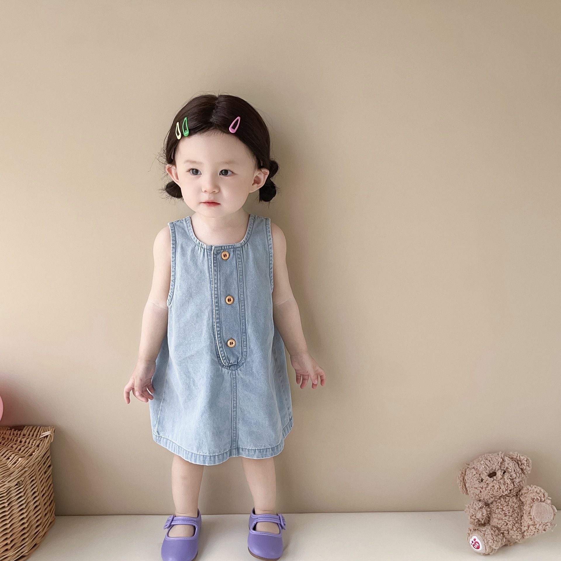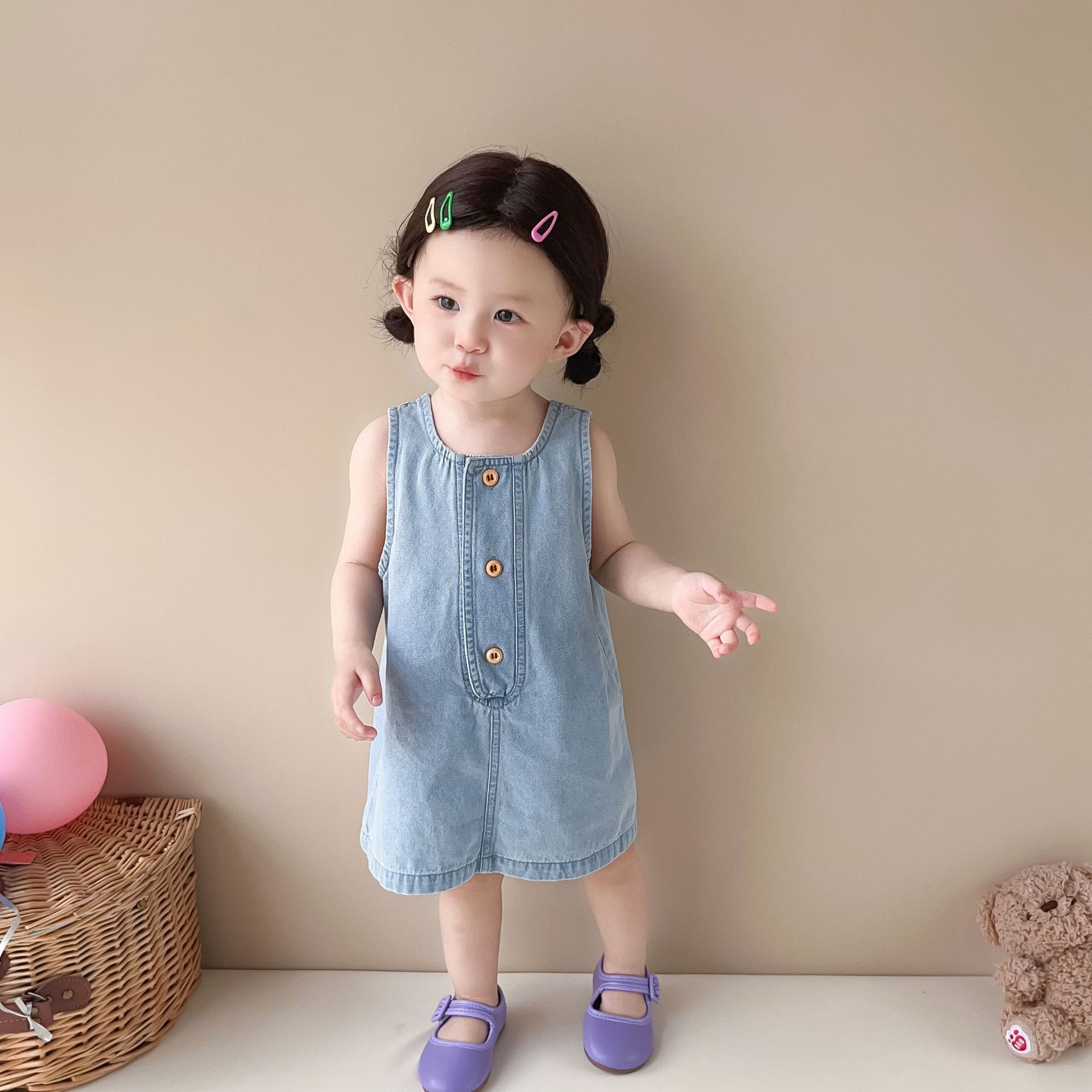 女童牛仔背心裙夏季薄款婴幼儿韩版洋气无袖背心裙薄款吊带连衣裙