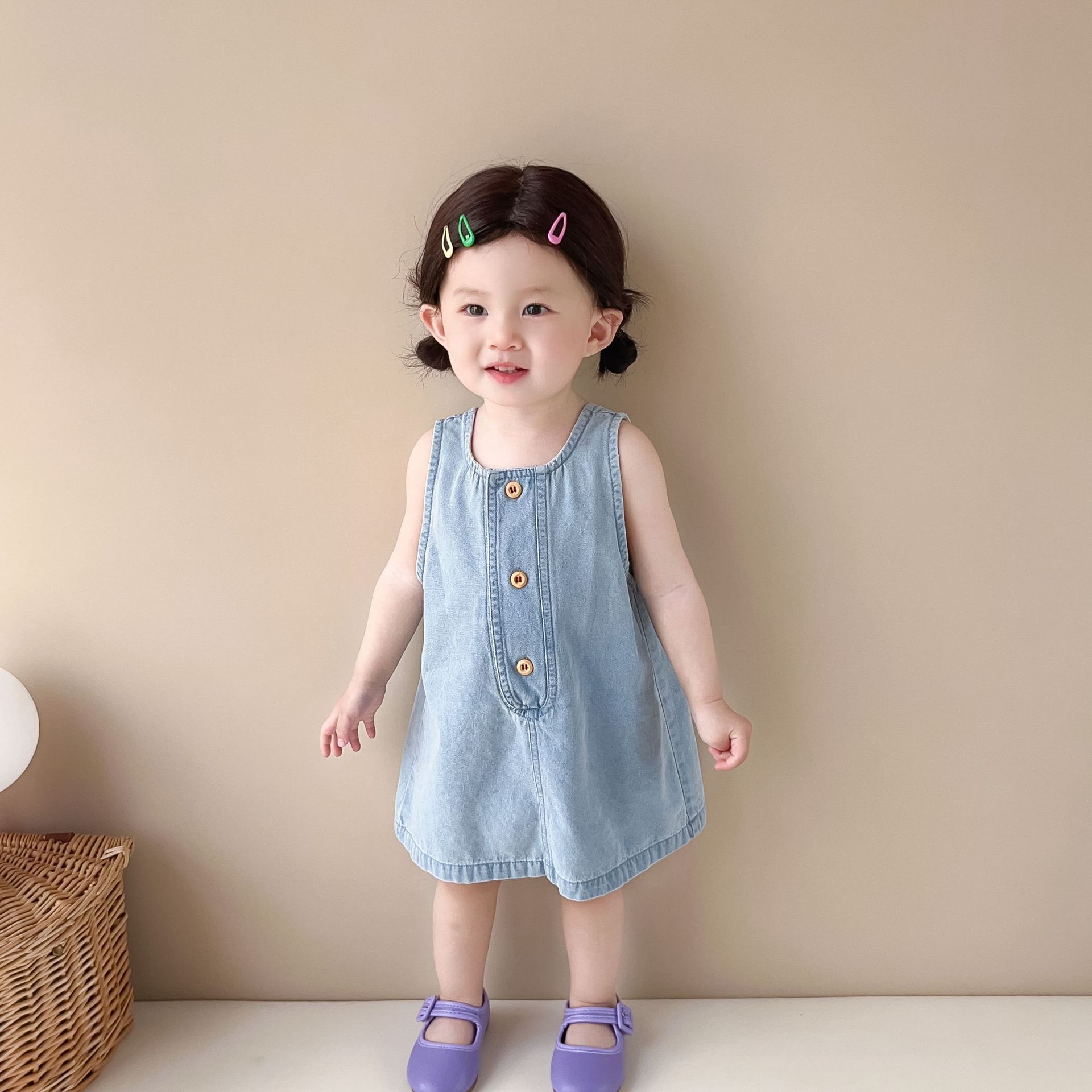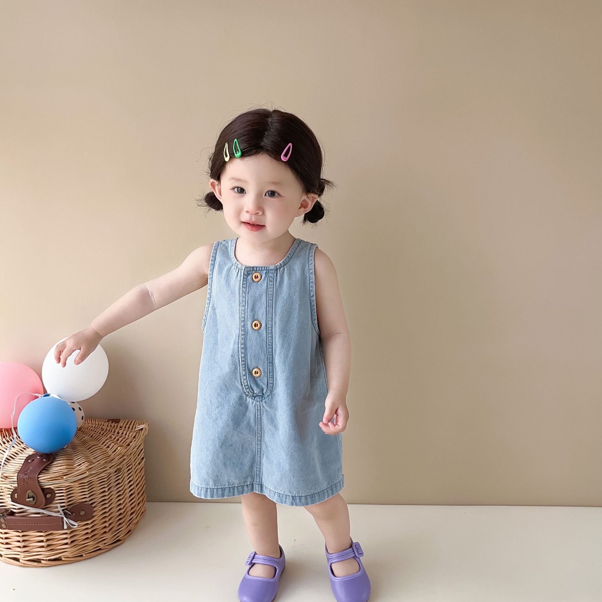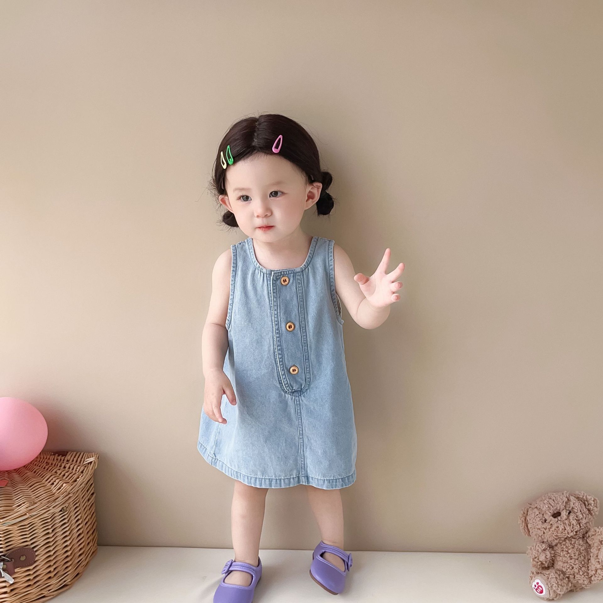 女童牛仔背心裙夏季薄款婴幼儿韩版洋气无袖背心裙薄款吊带连衣裙