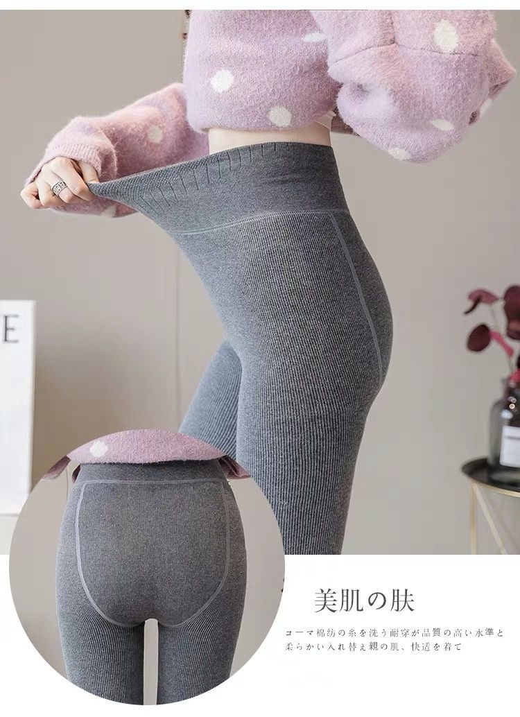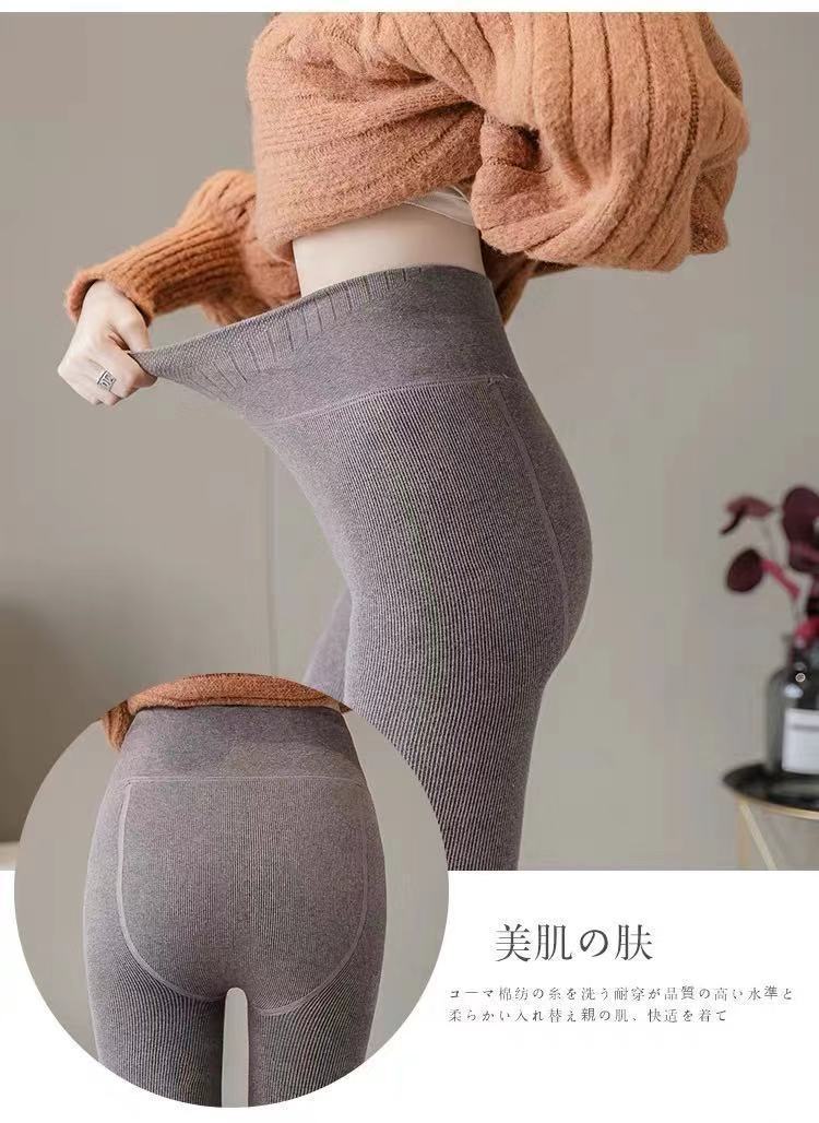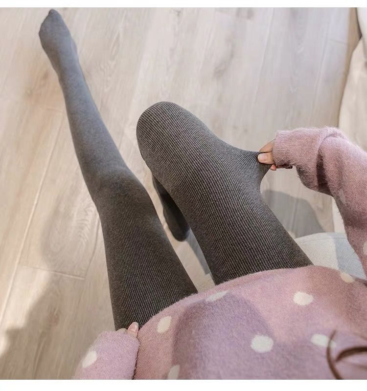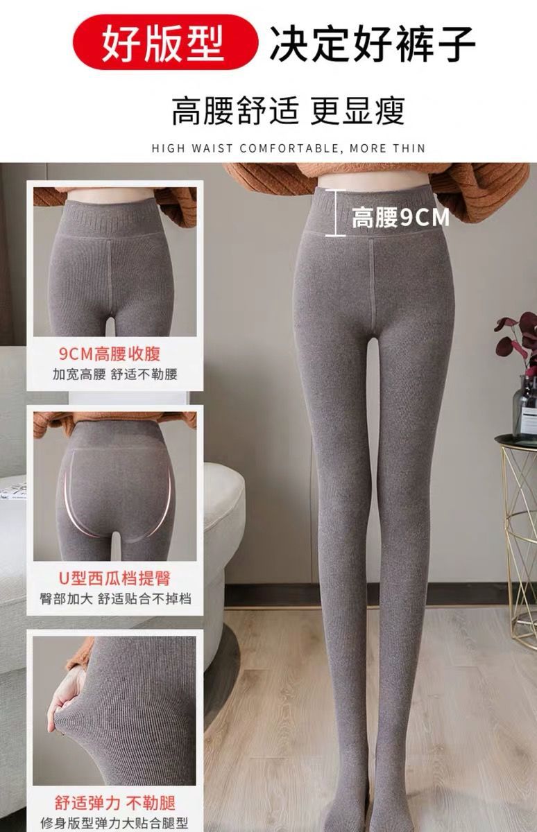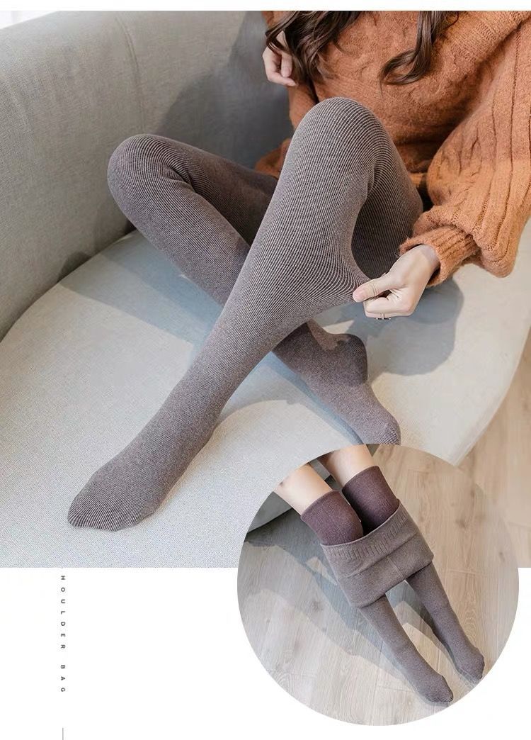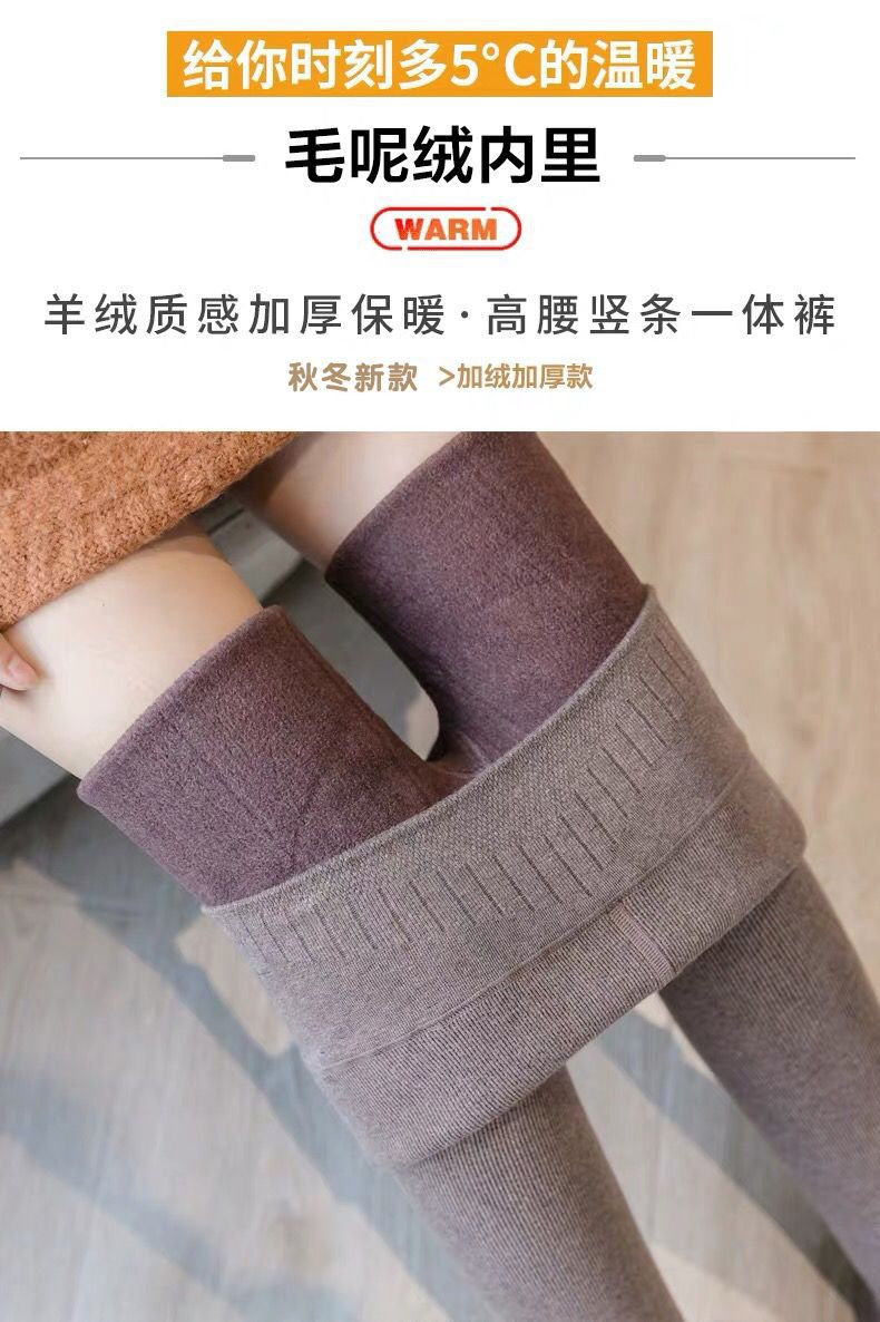 仿羊绒螺纹打底裤女外穿2023秋冬加绒加厚一体裤大码保暖连袜棉裤