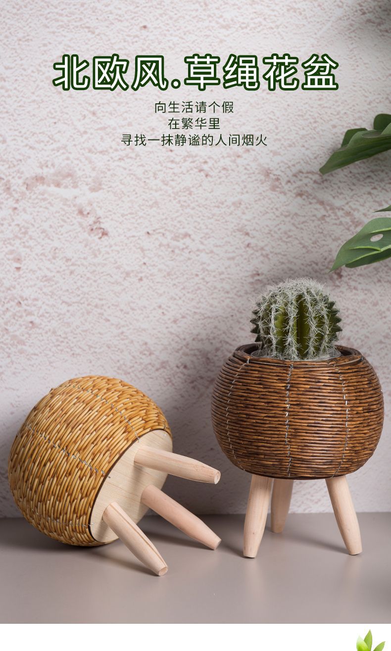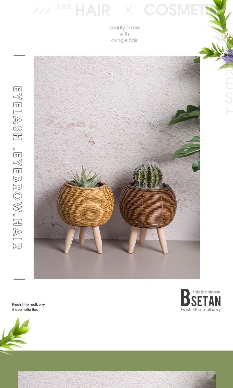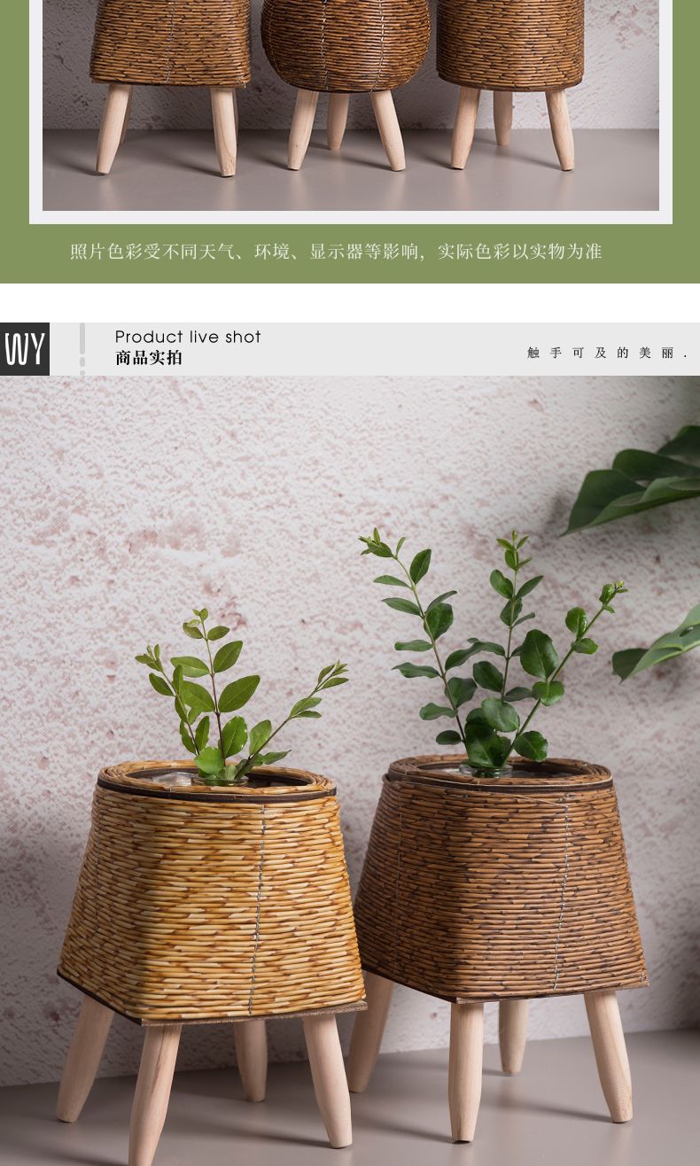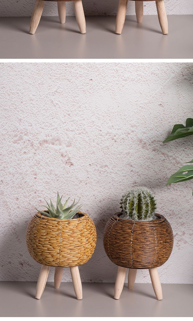 爆款藤编花架三角支架花盆桌面创意多肉收纳容器植物架草编盆批发