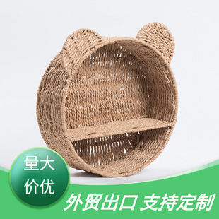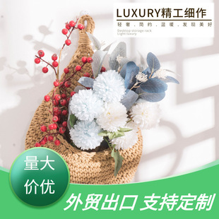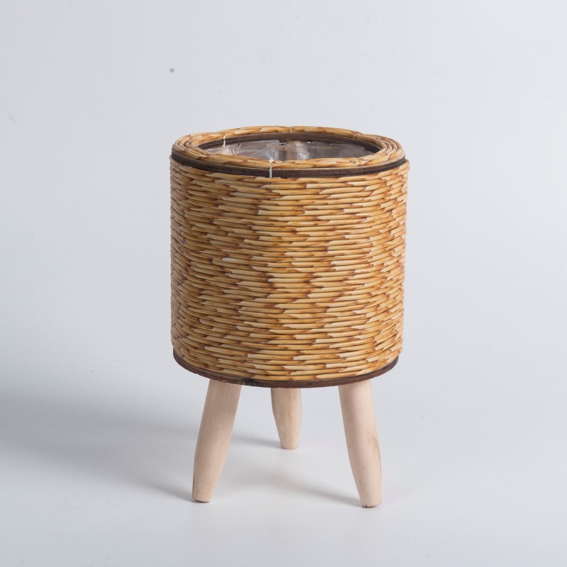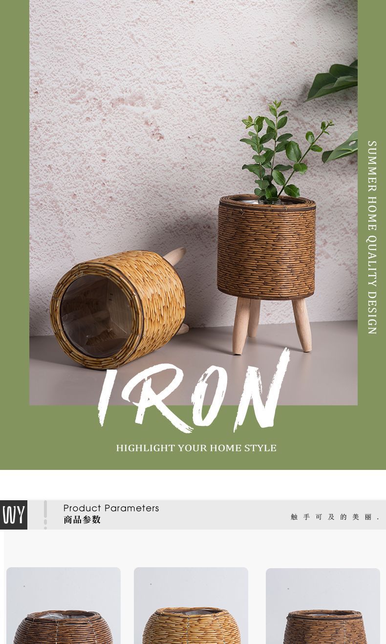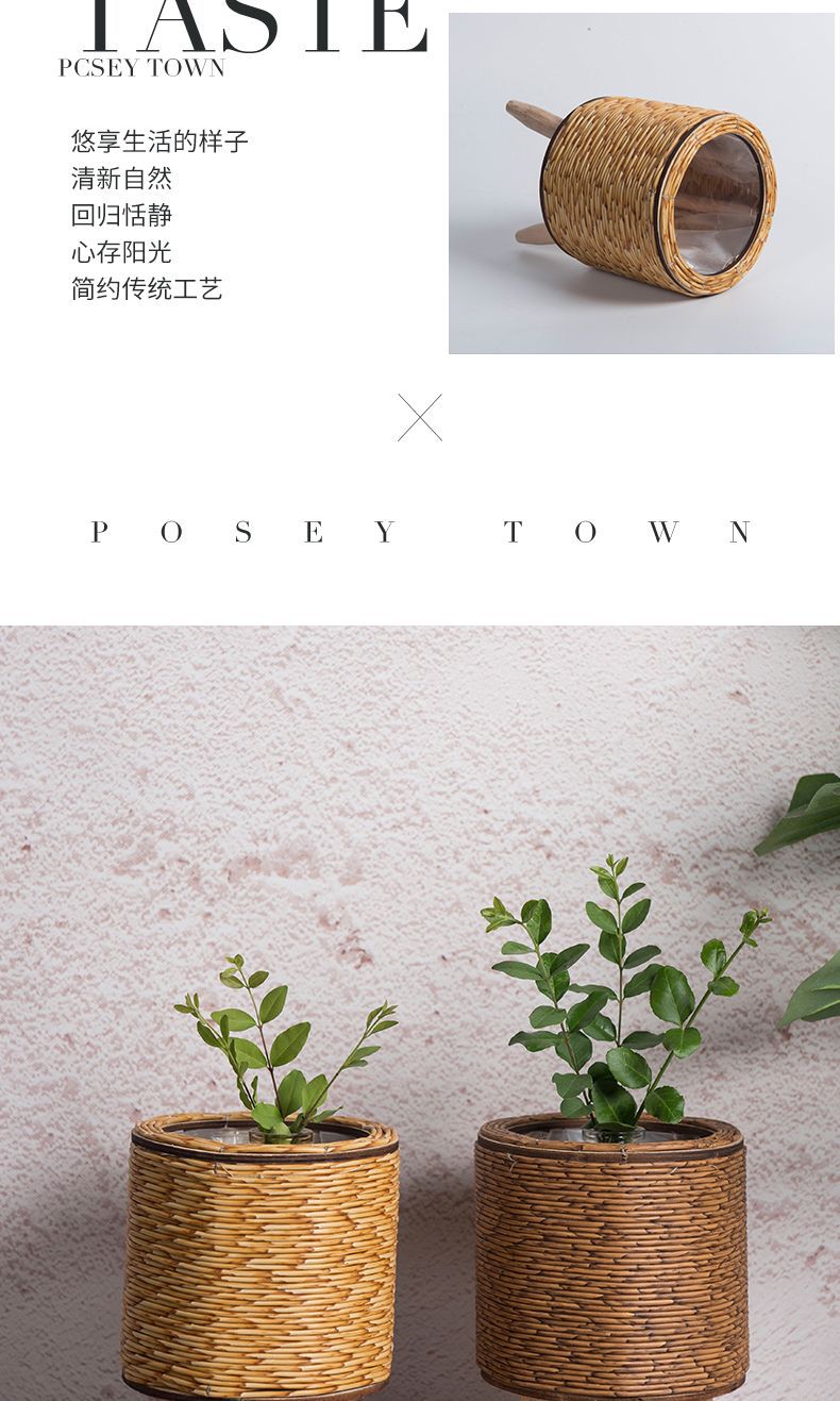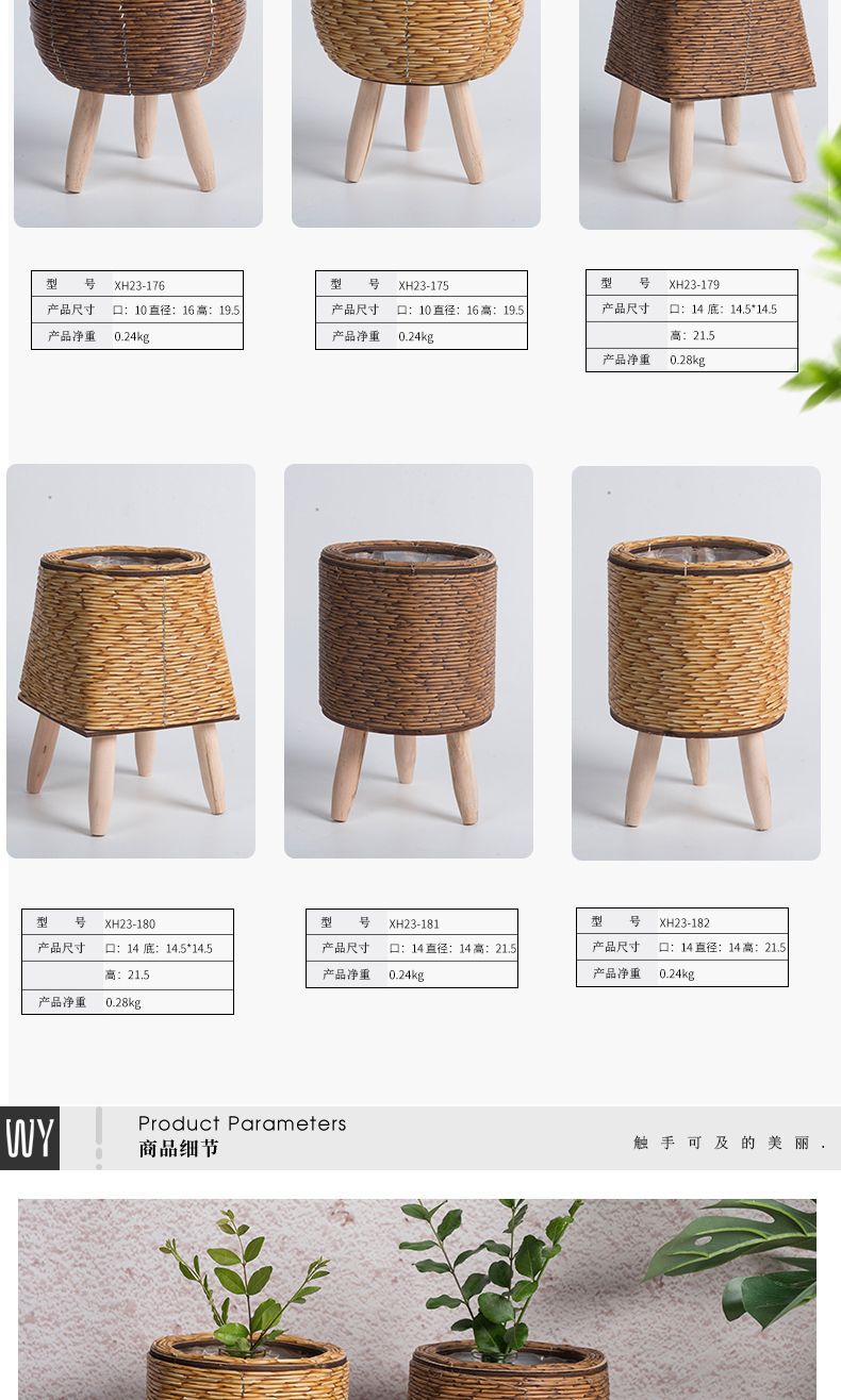 爆款藤编花架三角支架花盆桌面创意多肉收纳容器植物架草编盆批发