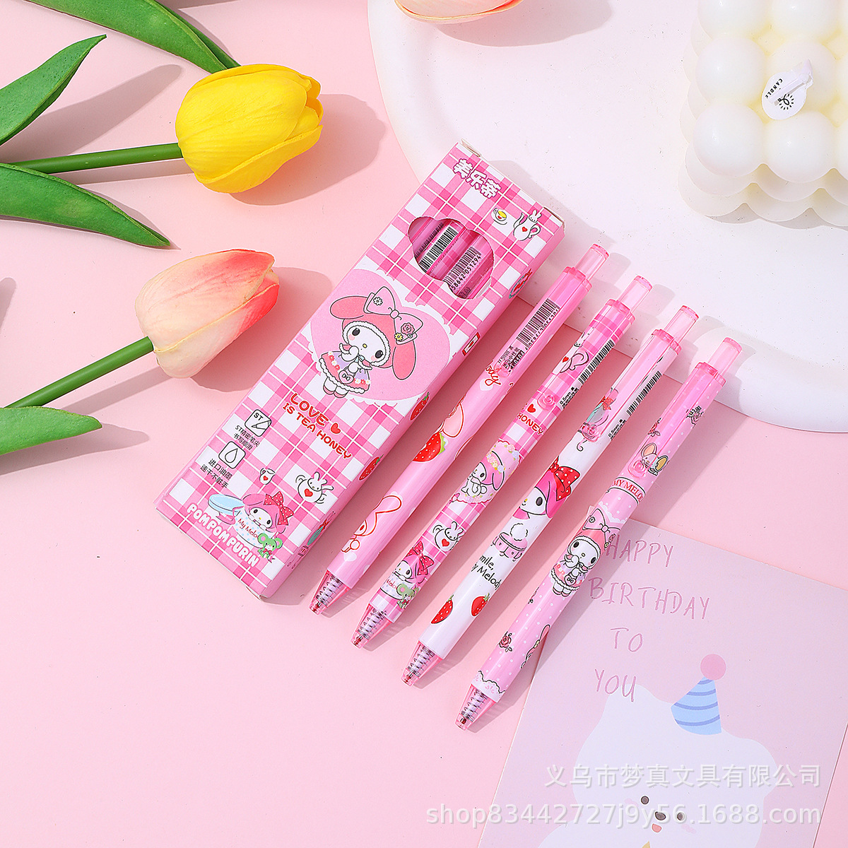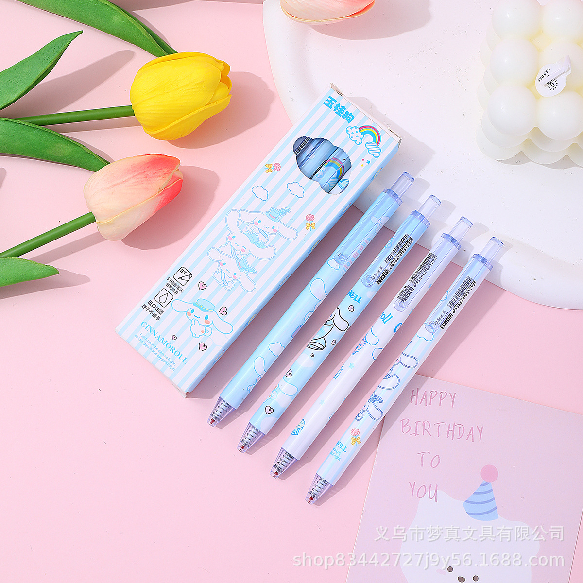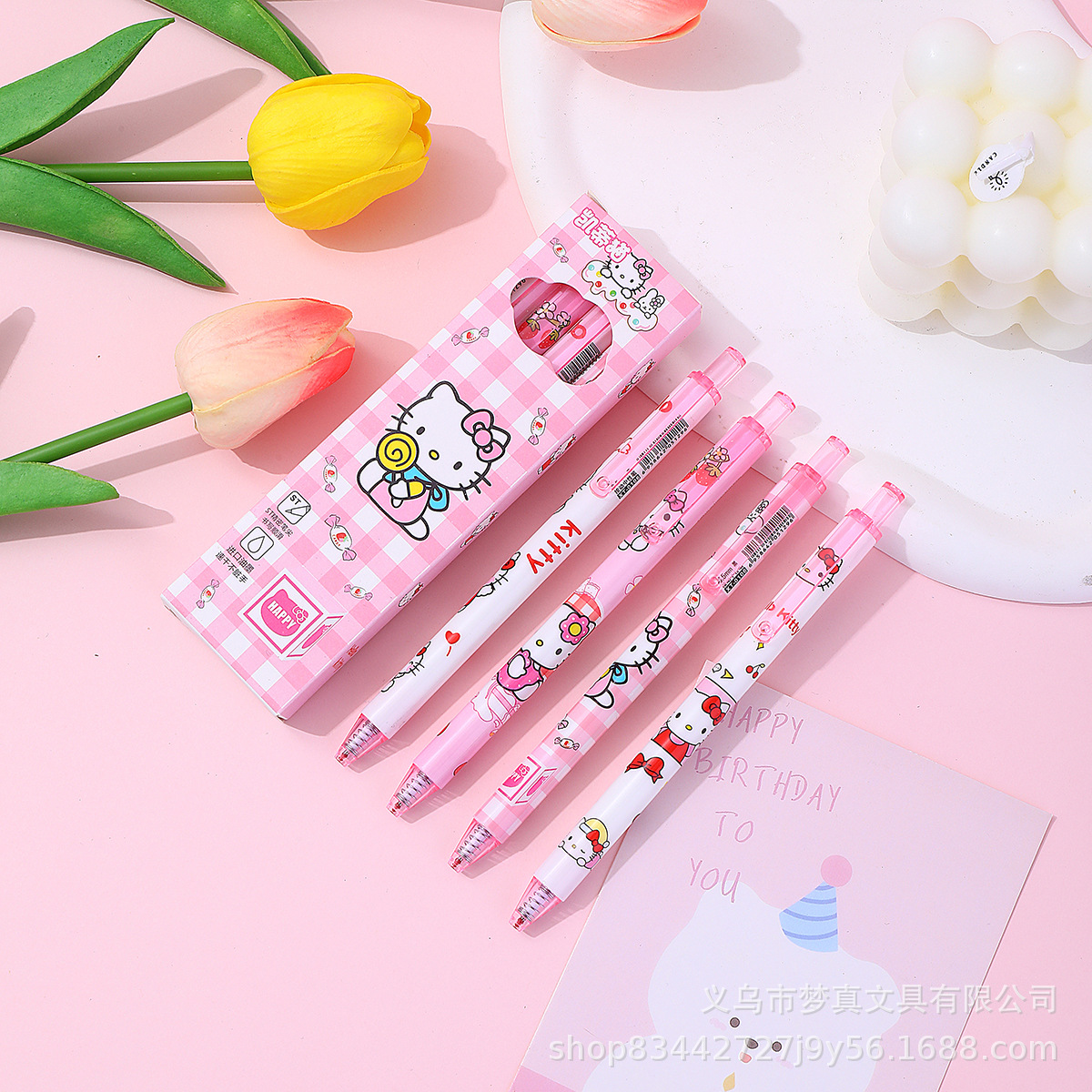 三丽鸥刷题笔4支盒装速干ST高颜值卡通中性笔-学生考试黑笔按动笔