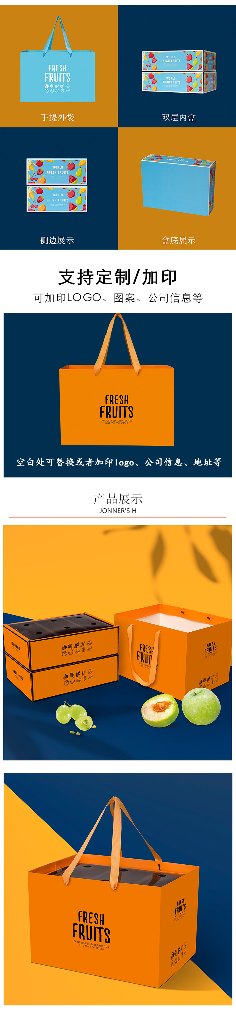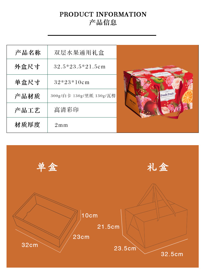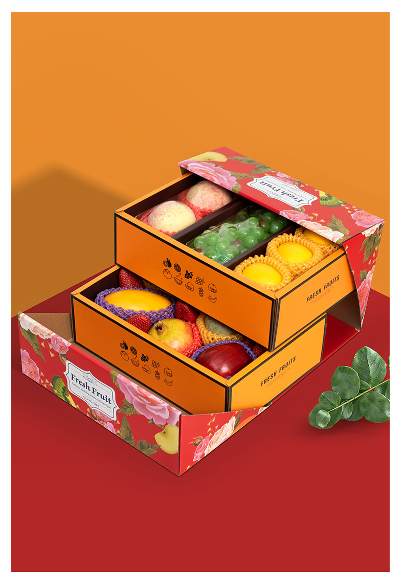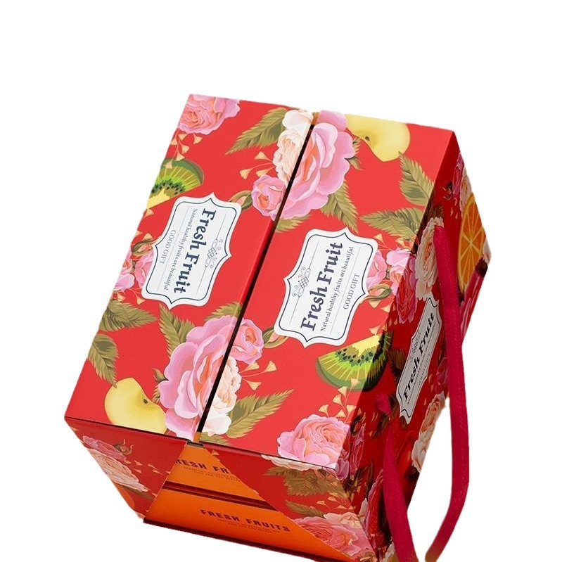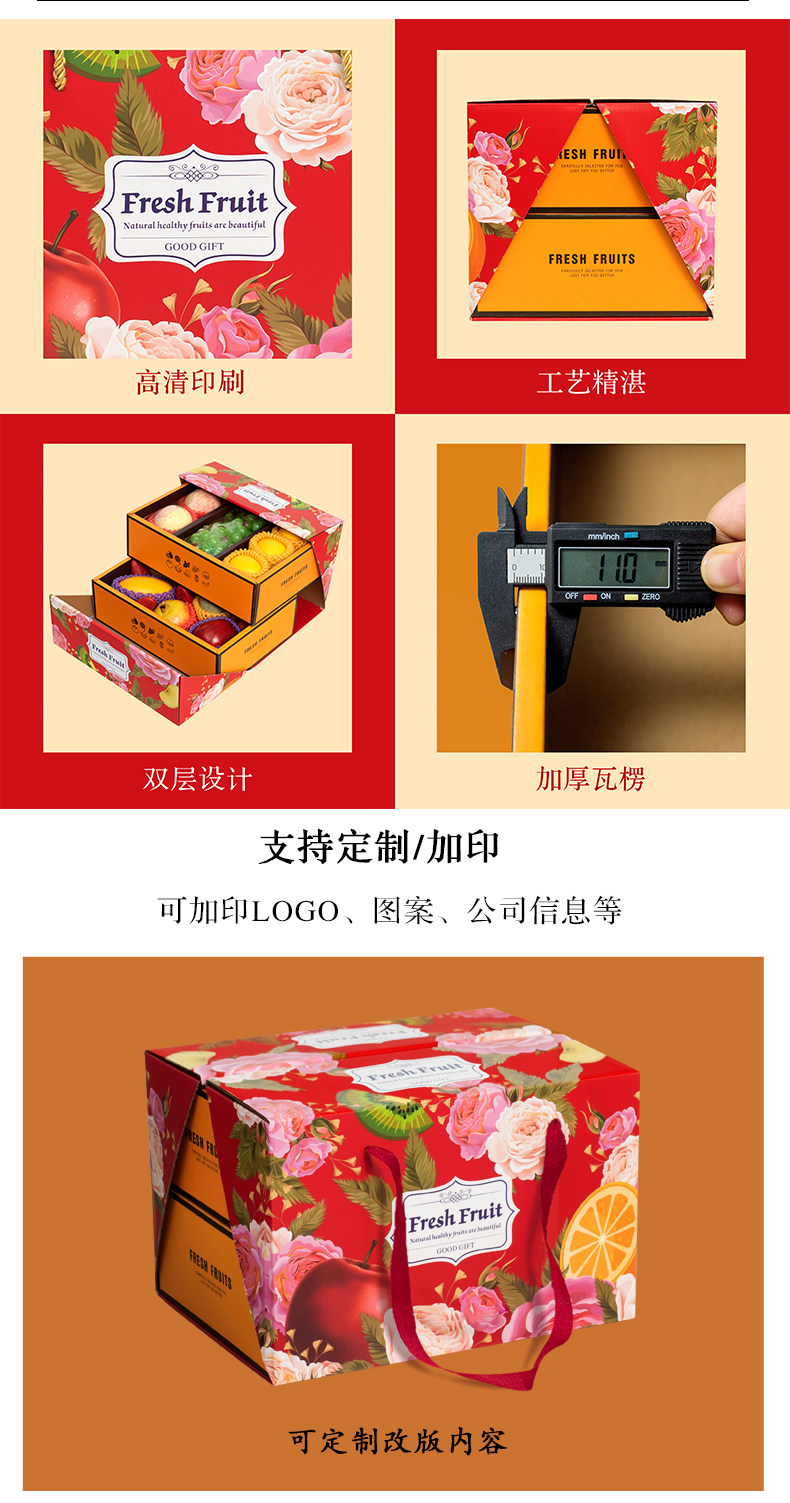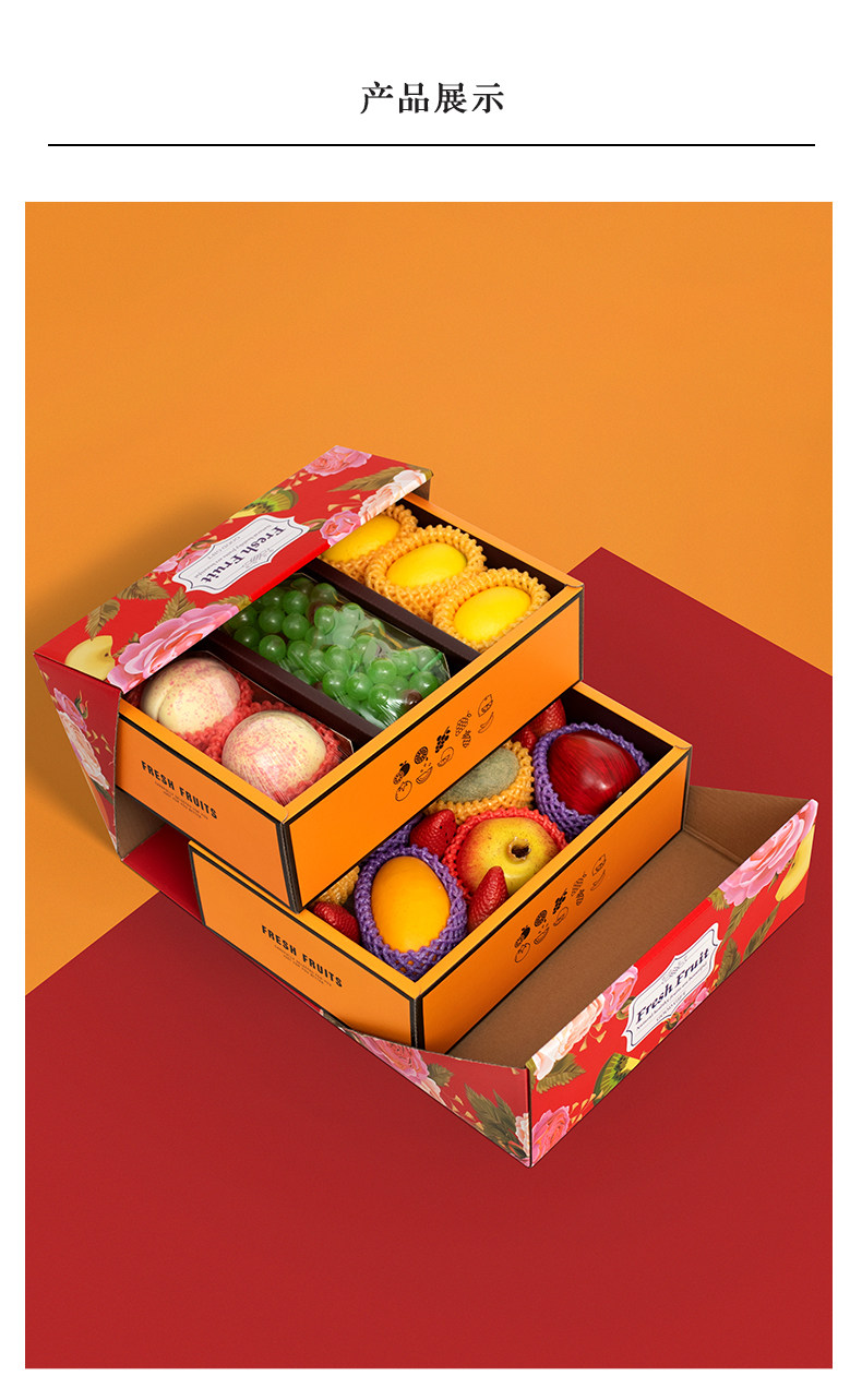 高档双层水果礼盒空盒子包装盒节日送礼混装苹果葡萄石榴礼品盒