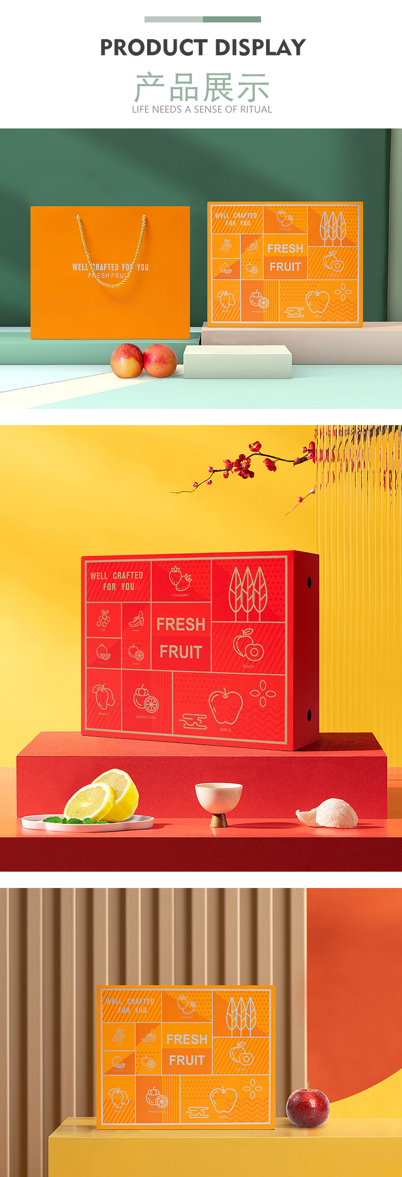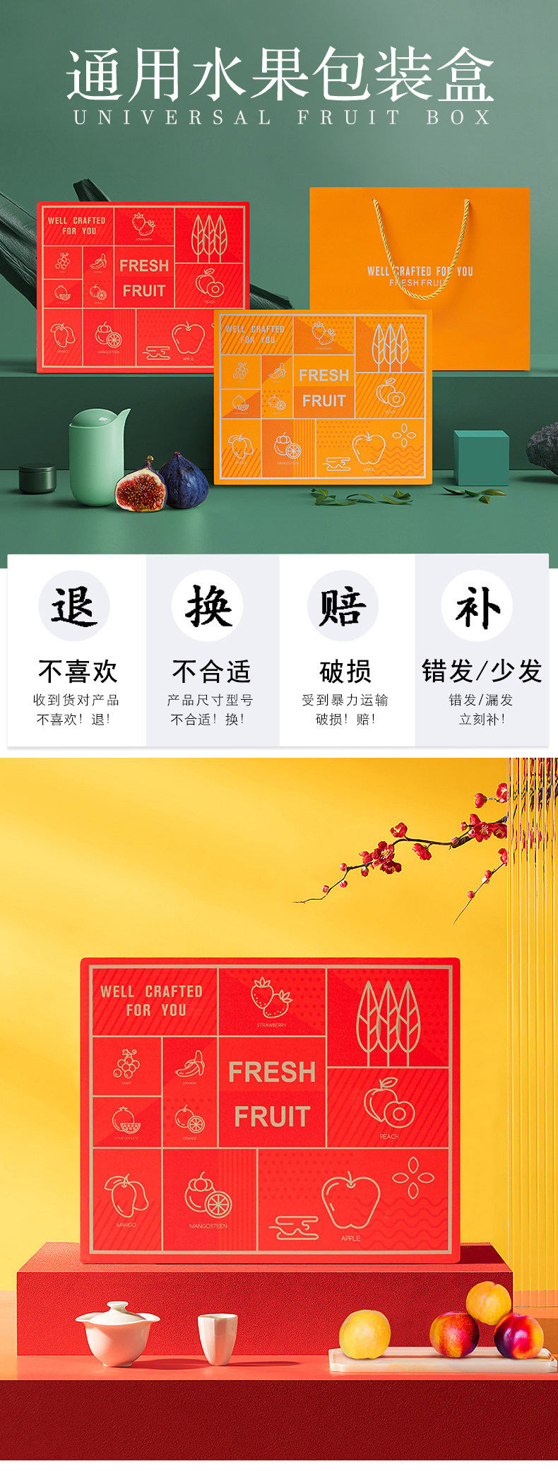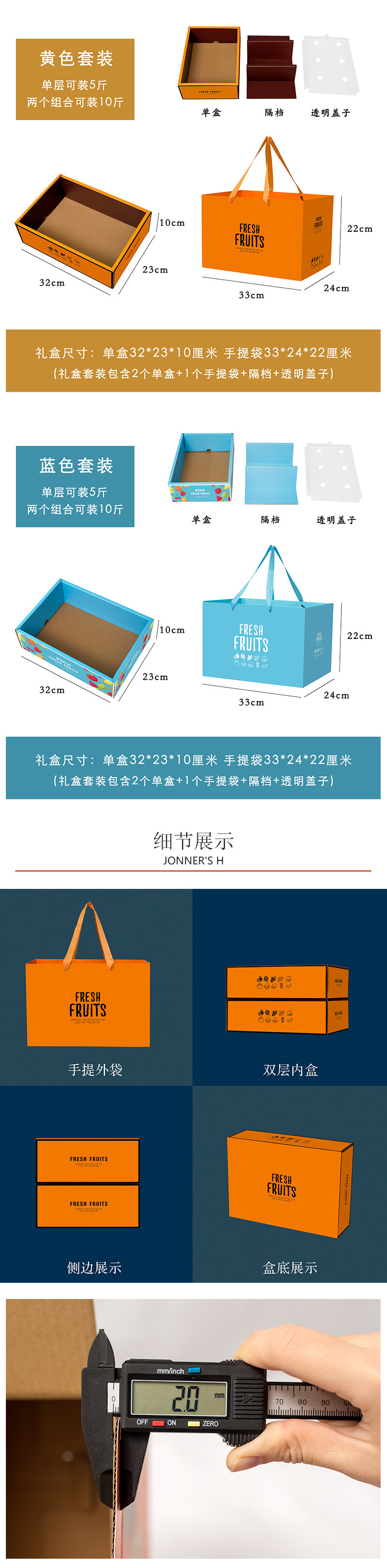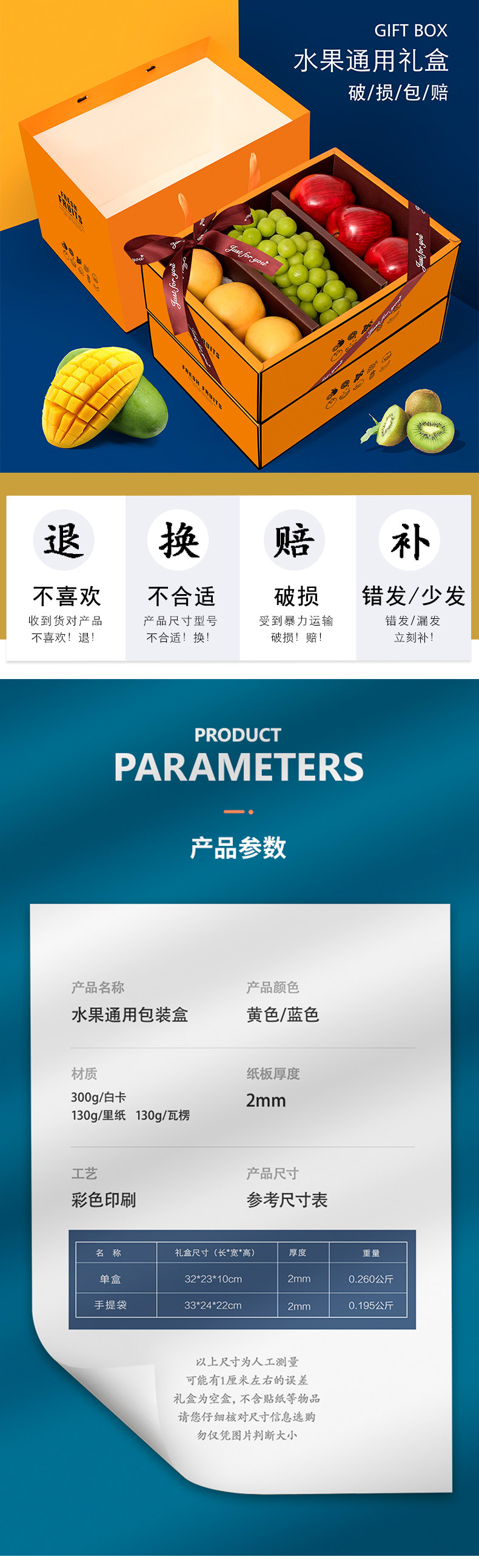 高档双层水果礼盒空盒子包装盒节日送礼混装苹果葡萄石榴礼品盒