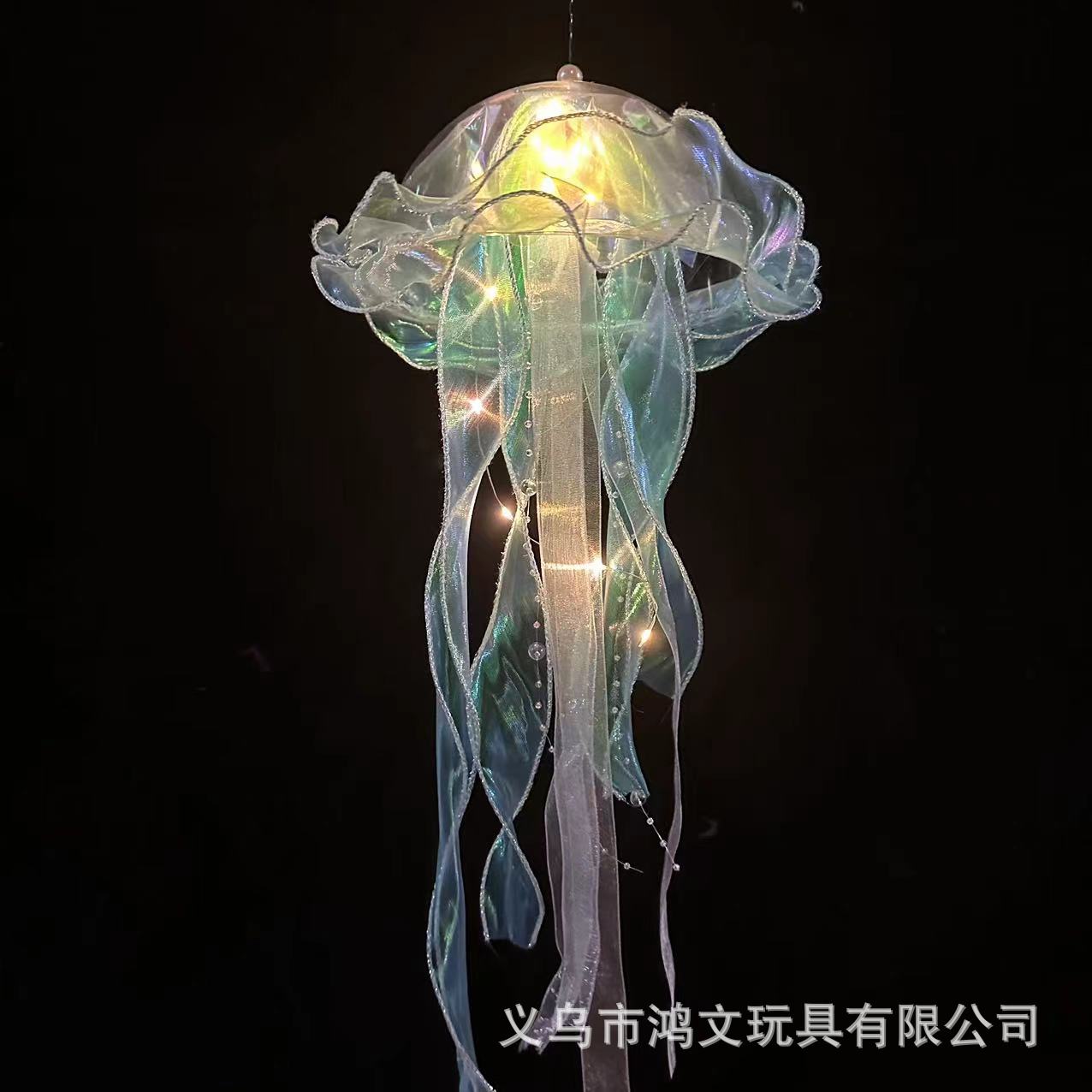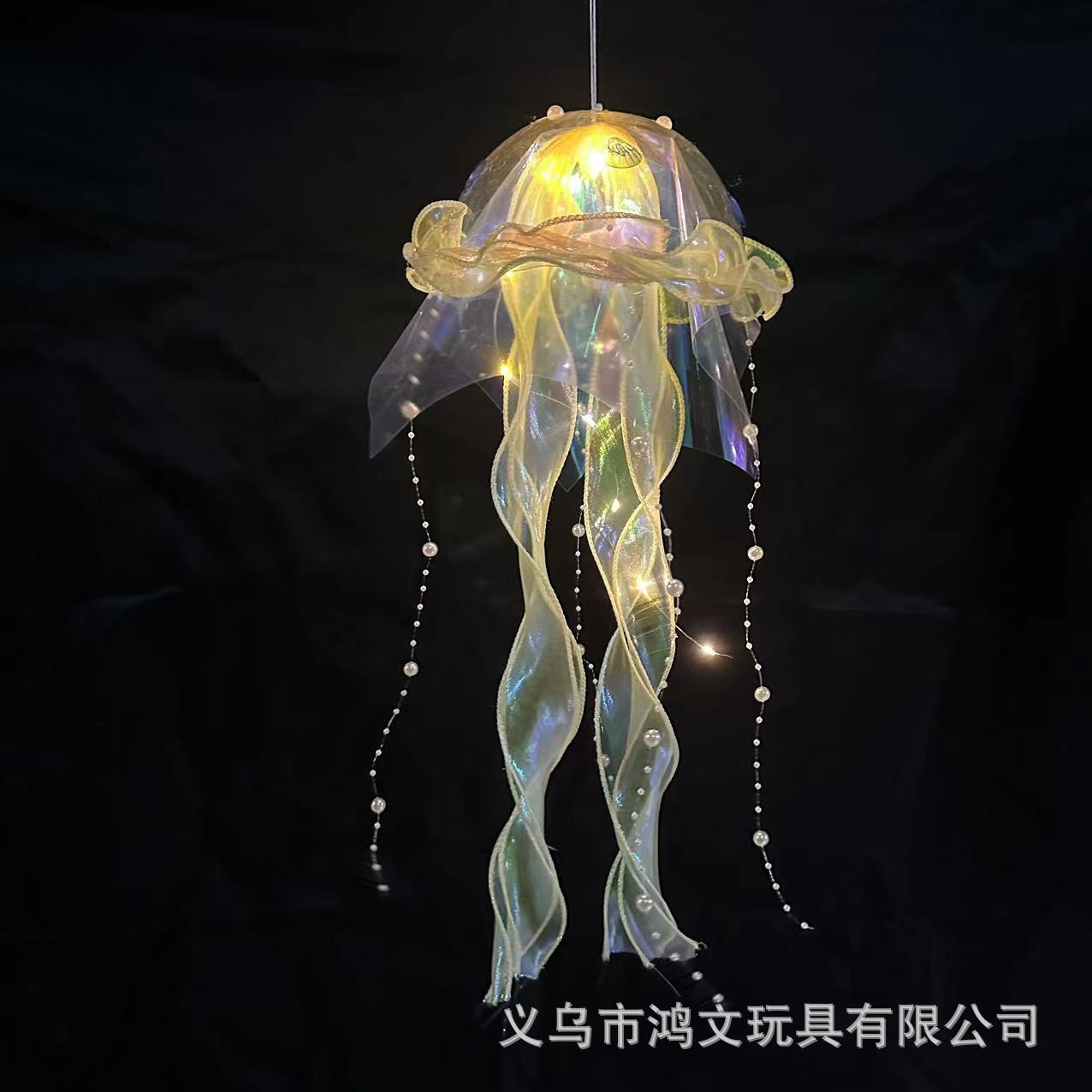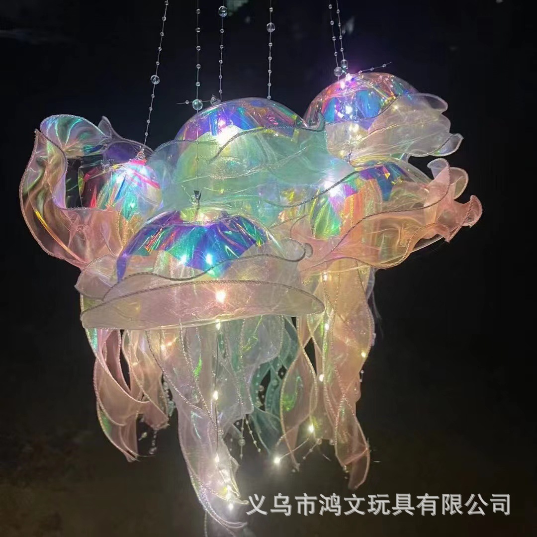 新款大号手提发光水母灯笼七彩飘带小夜灯地摊夜市章鱼水母灯批发