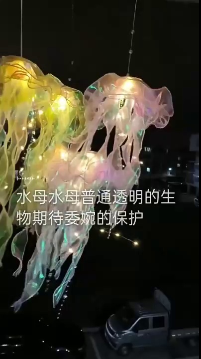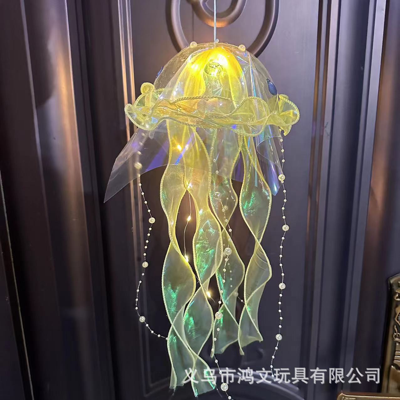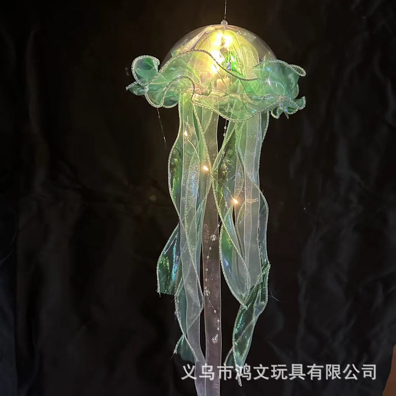 新款大号手提发光水母灯笼七彩飘带小夜灯地摊夜市章鱼水母灯批发