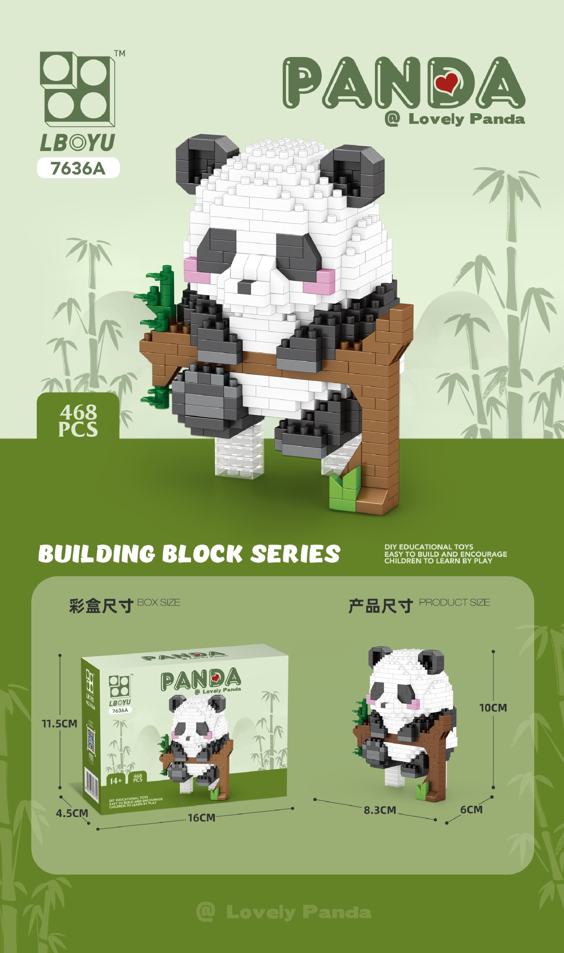 乐柏裕熊猫花花卡通地摊儿童益智拼装玩具兼容乐高微型小颗粒积木