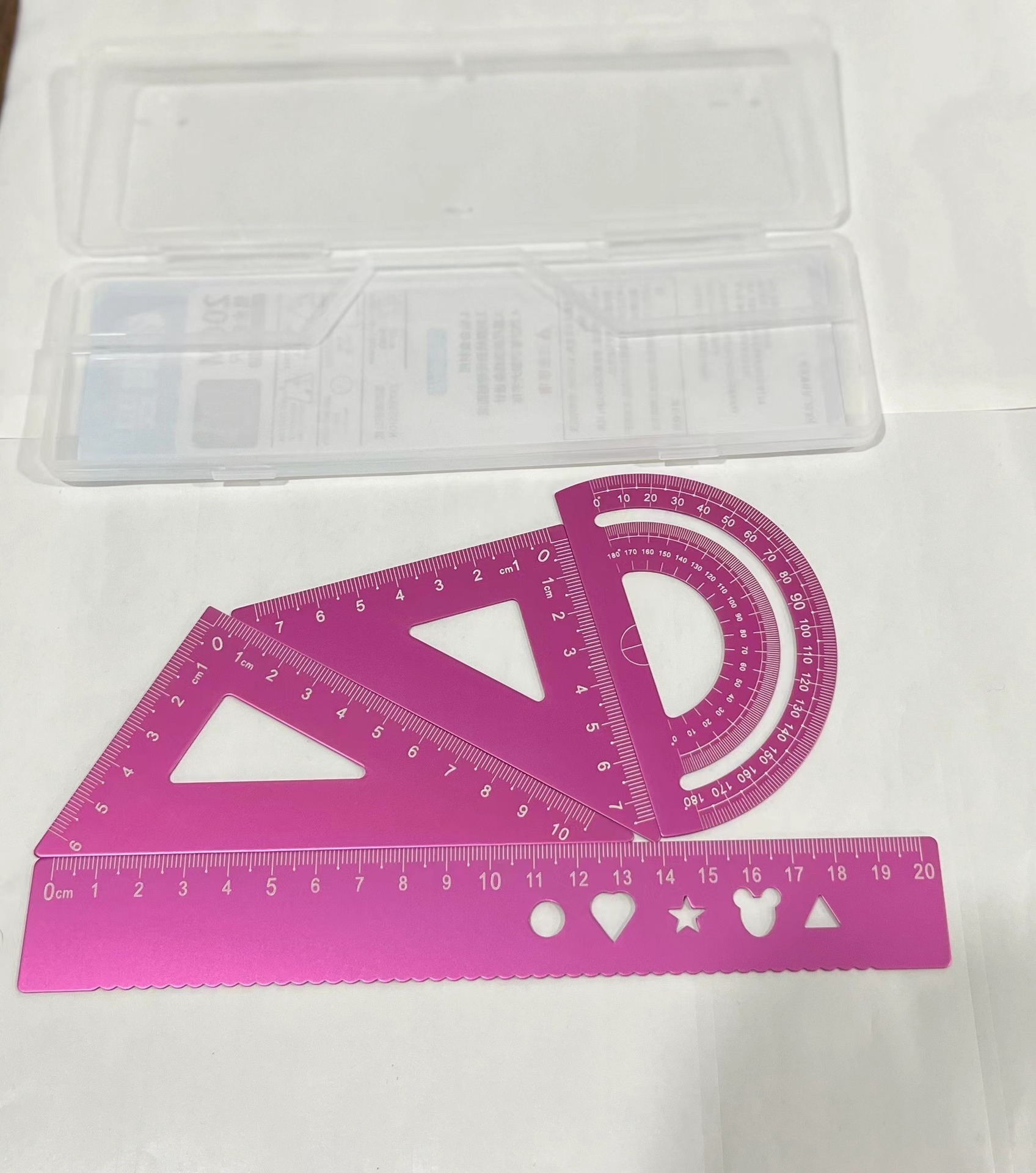 铝合金套尺刻字小学生专用四件套直尺20cm套装高颜值激光尺子批发