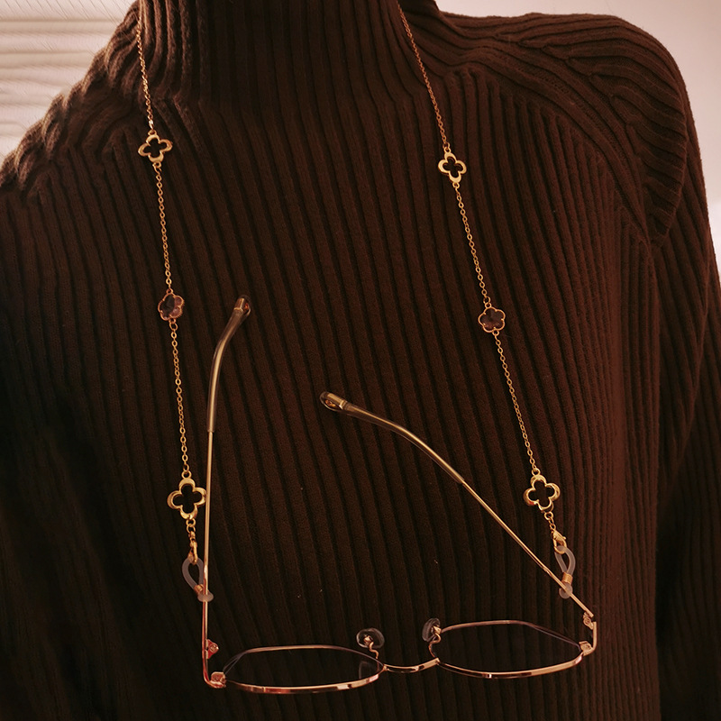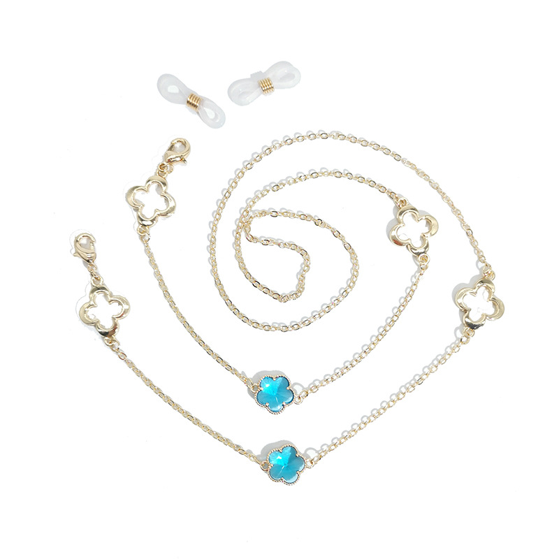 欧美跨境饰品 INS风复古简约太阳花水晶眼镜防丢链 口罩链挂脖链