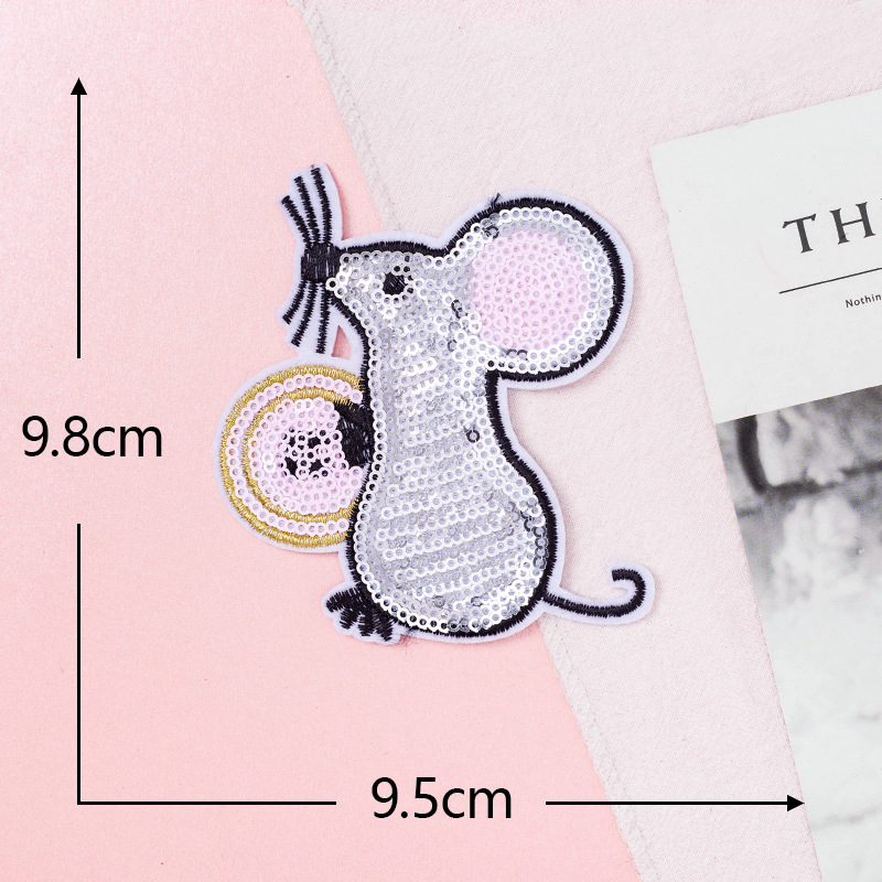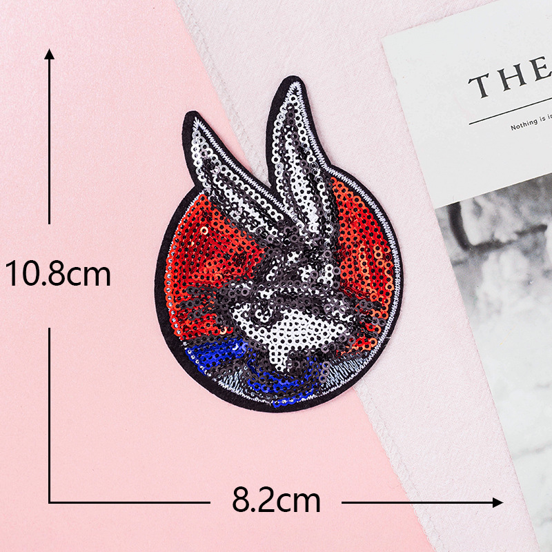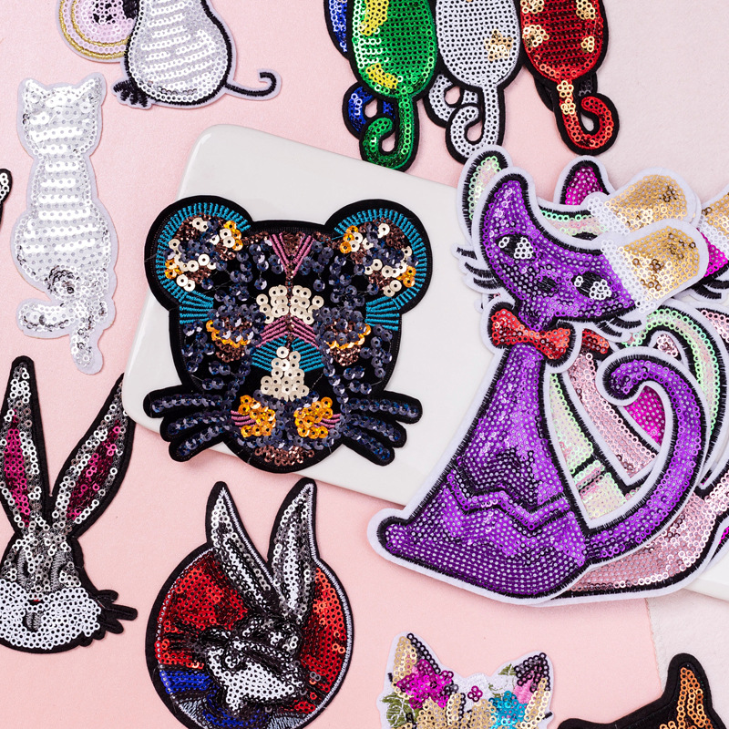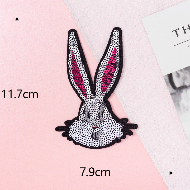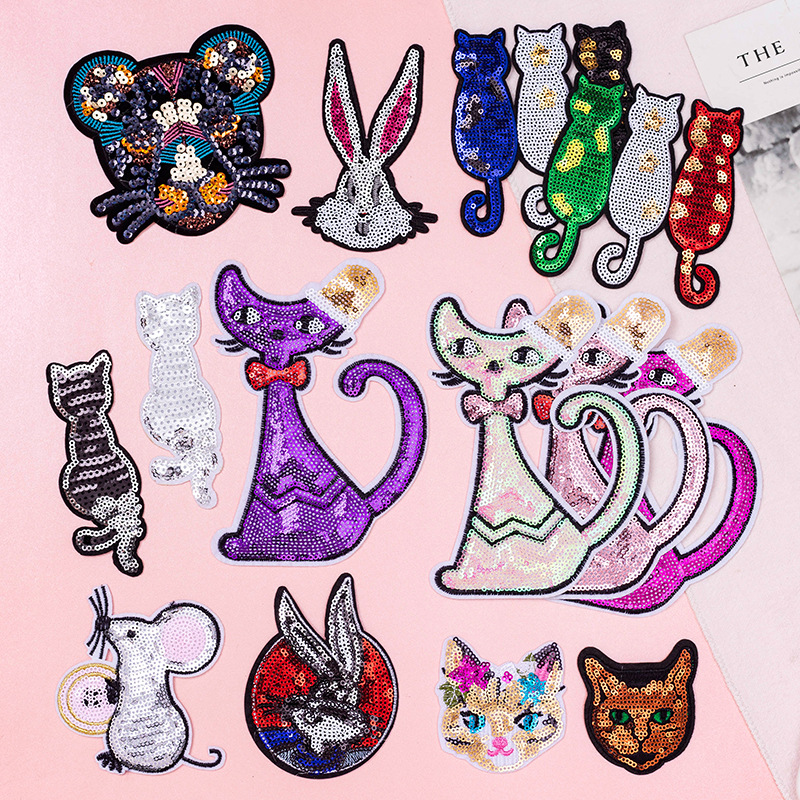 亮片宠物猫刺绣布贴卡通图案大白兔潮流鼠头云朵电脑绣花章仔装饰