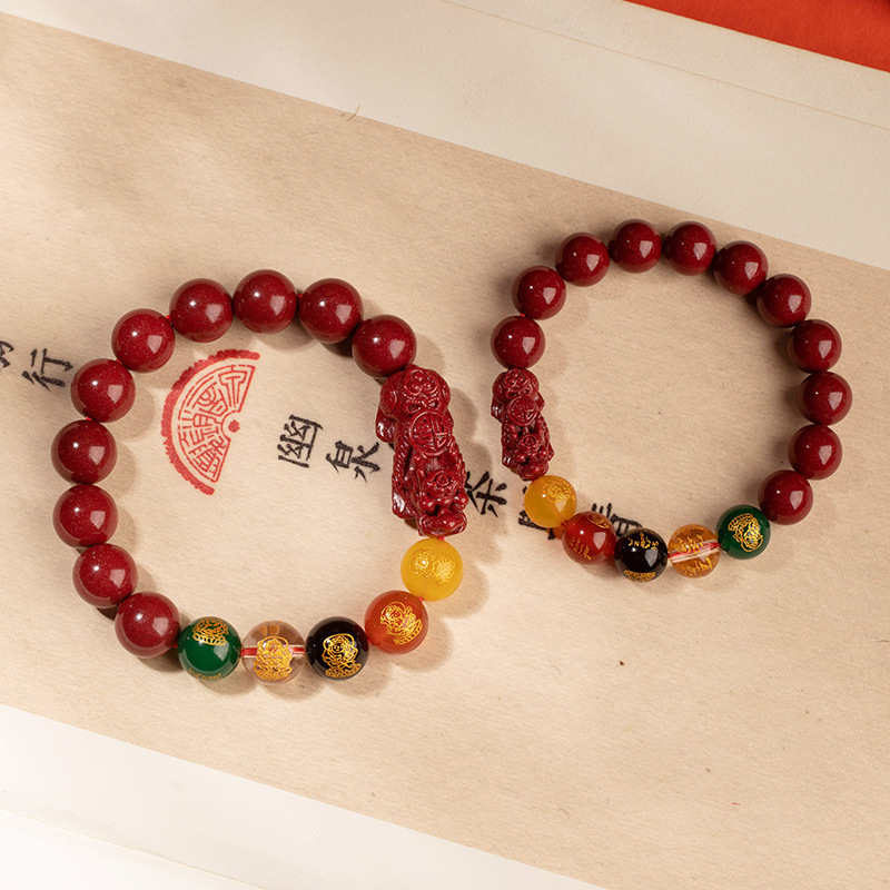 朱砂貔貅朱砂手串男款五路财神男士本命年礼物朱砂手链手串紫金砂