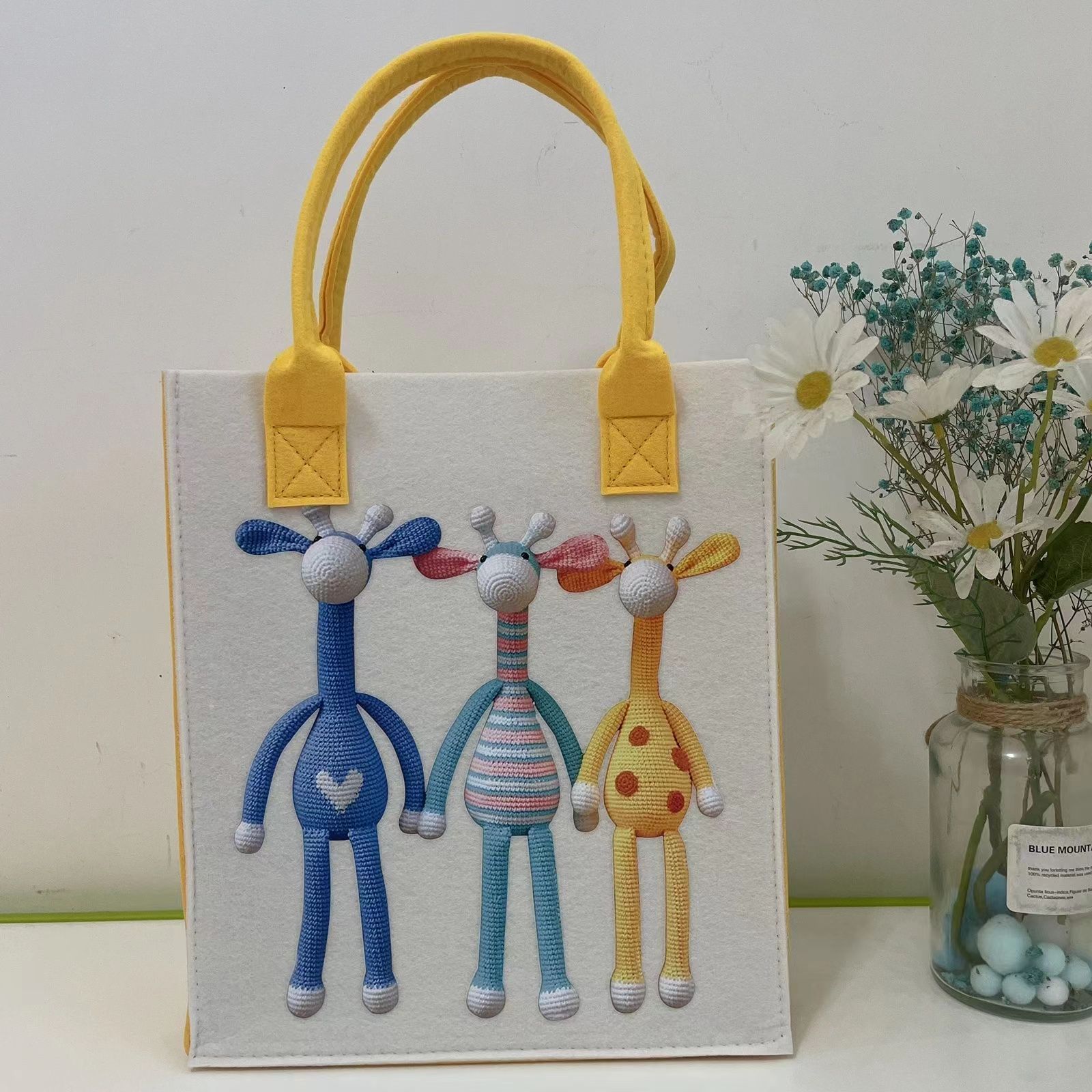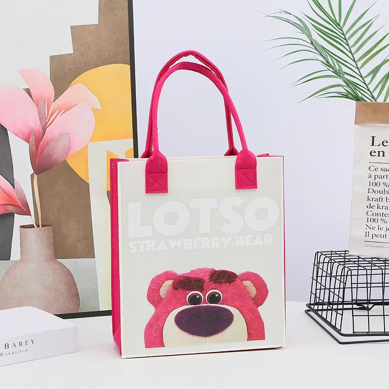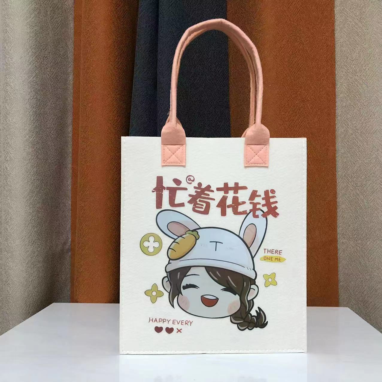 网红卡通毛毡包动漫手提袋大容量上班族印花毛毡手提袋