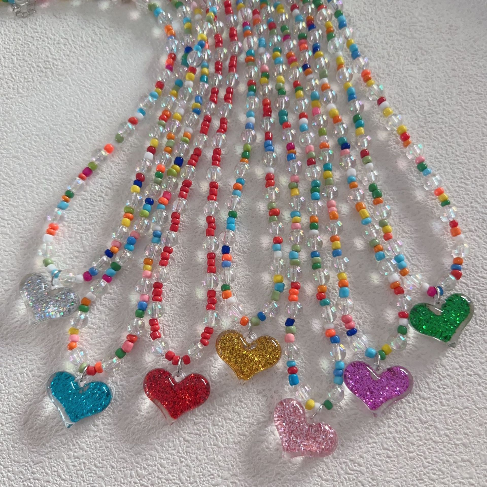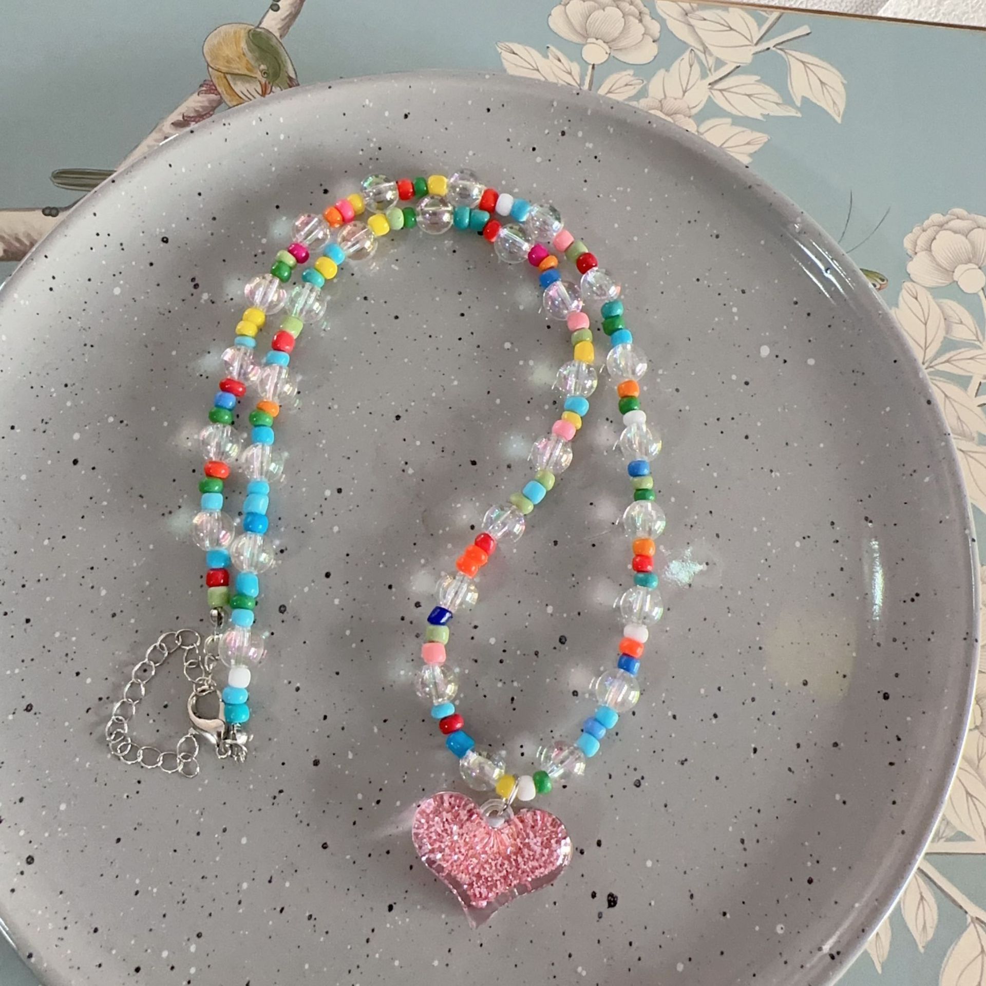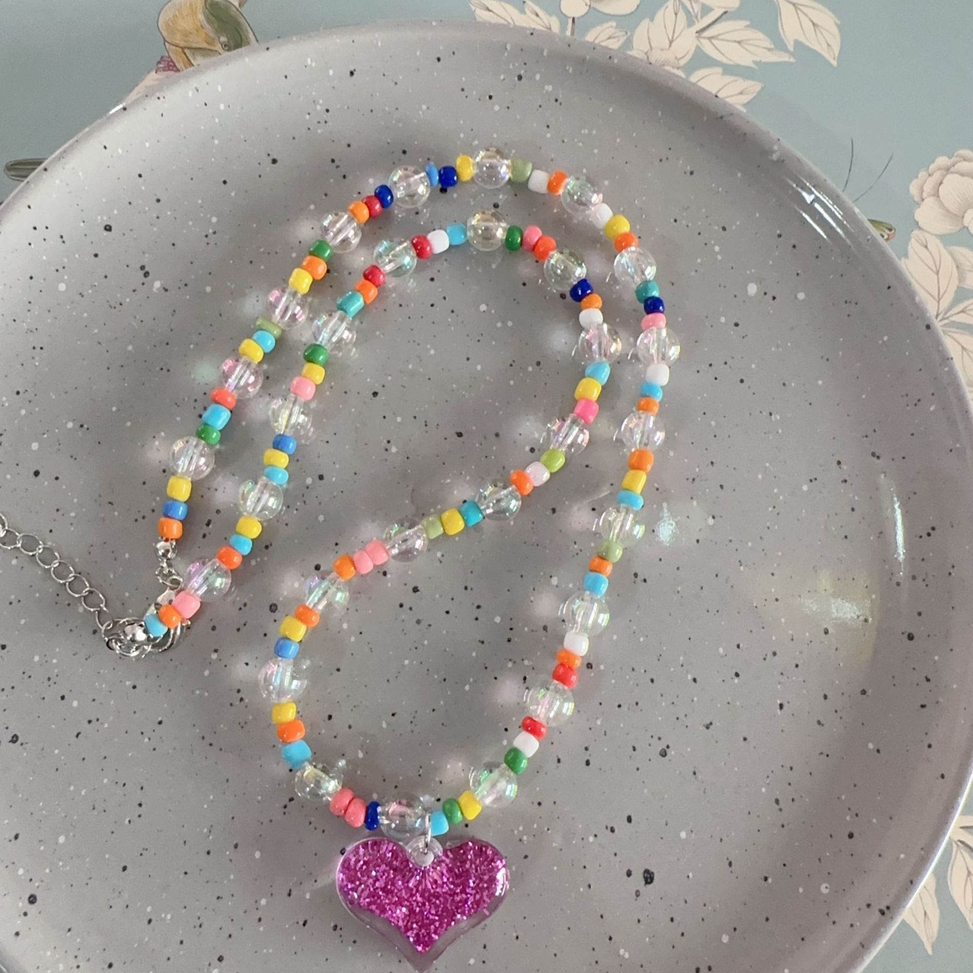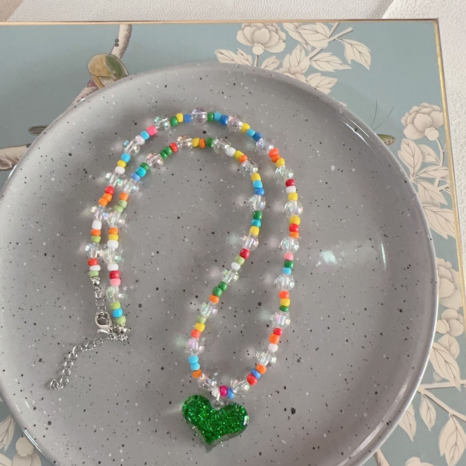 创意彩色串珠爱心吊坠项链女ins小众设计配饰个性甜酷毛衣链配饰