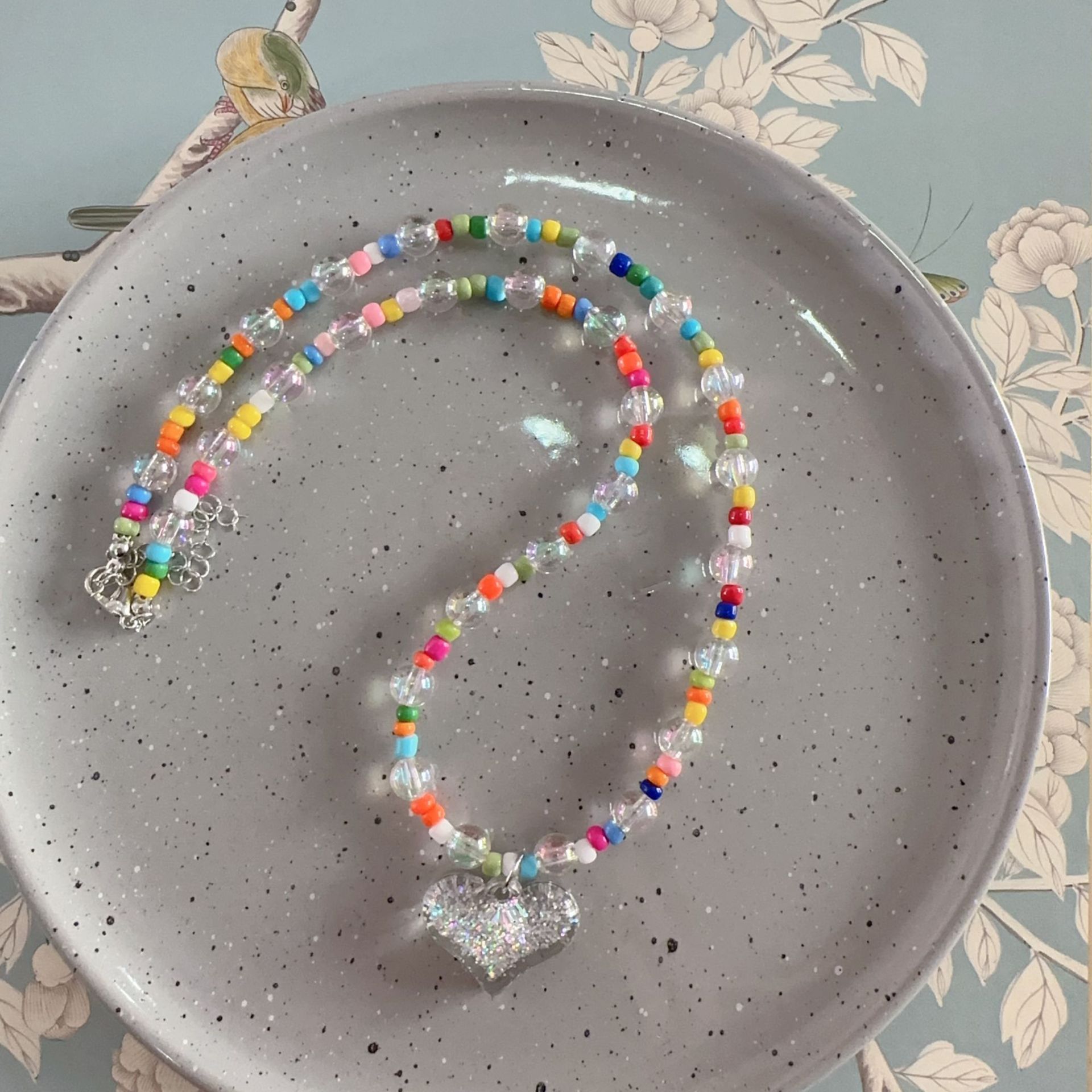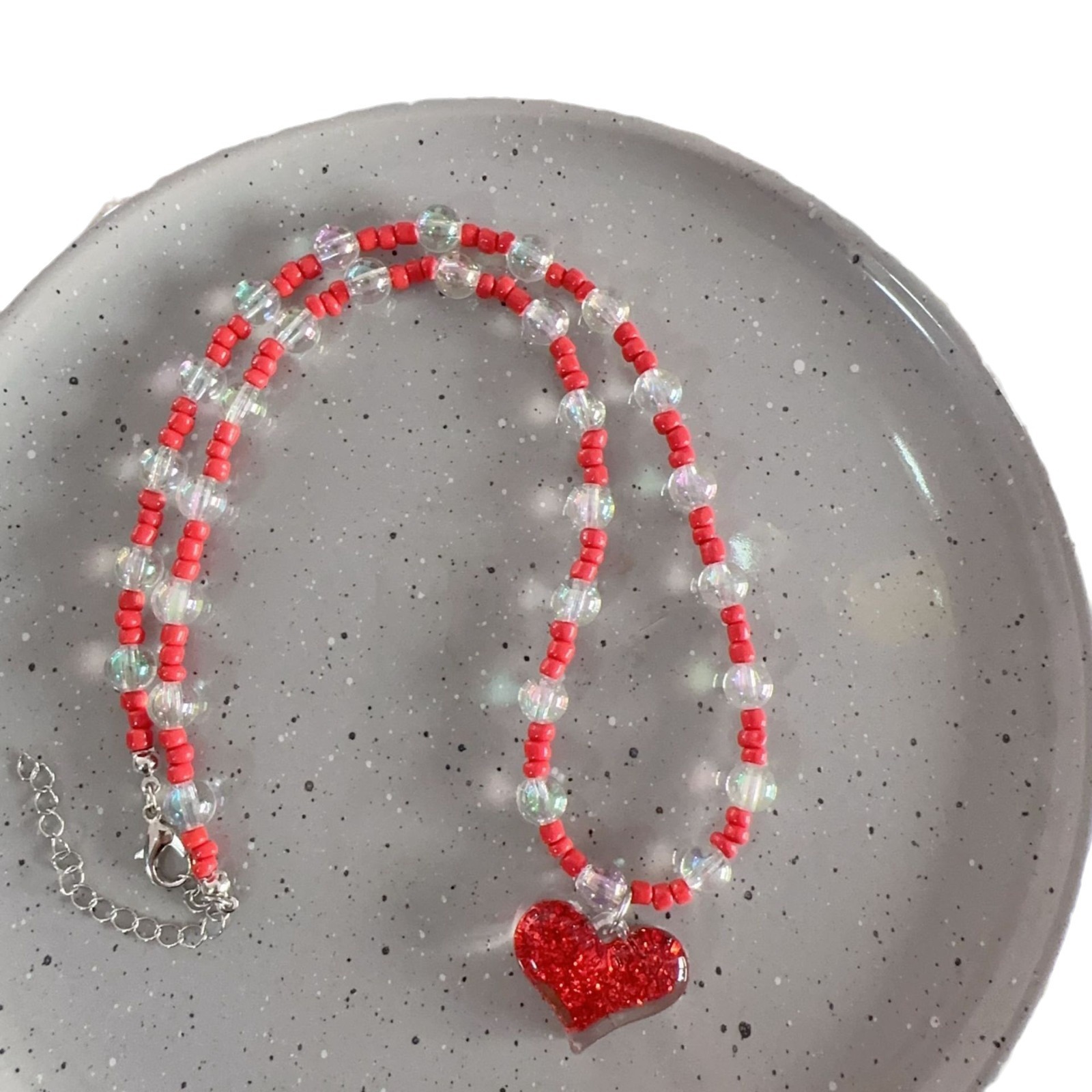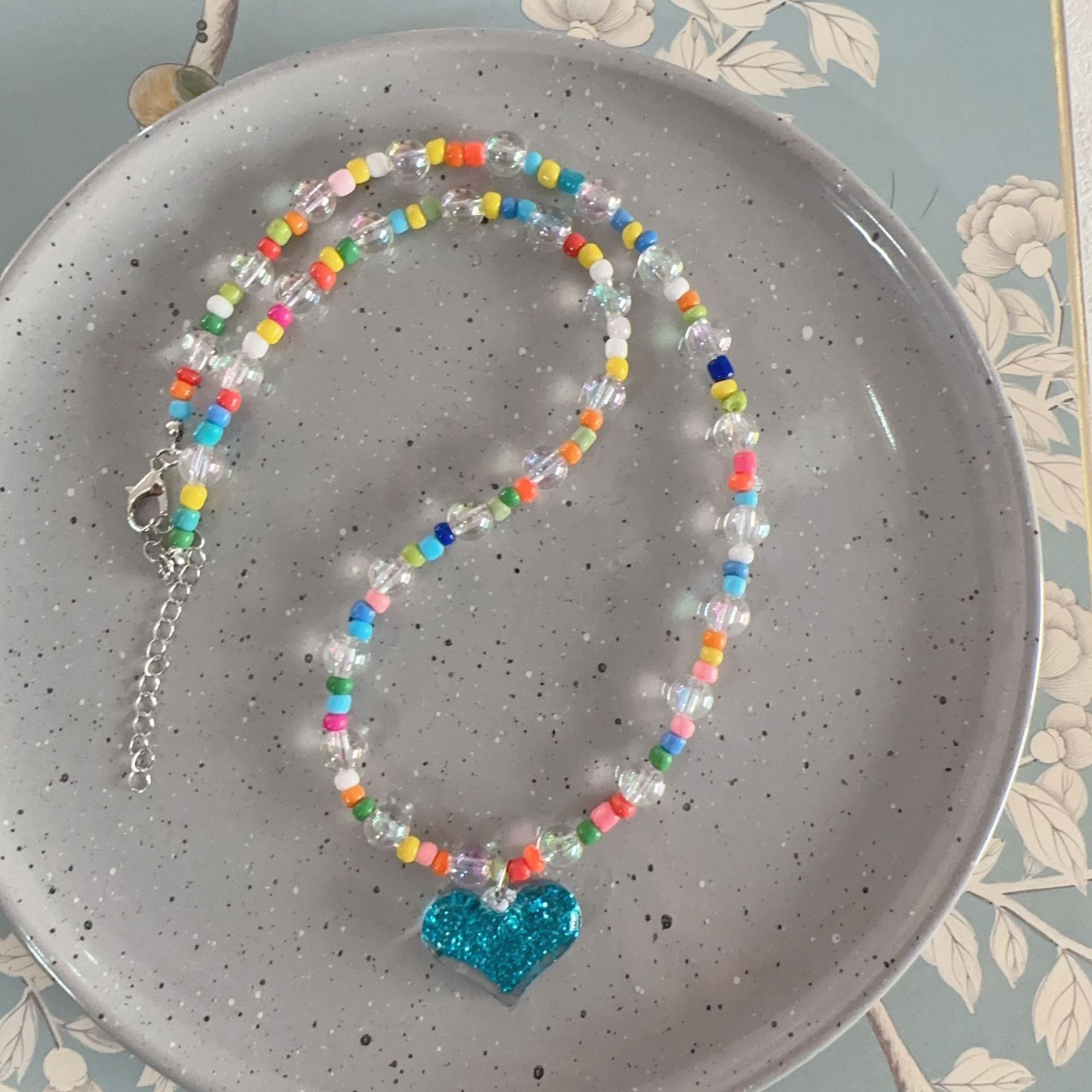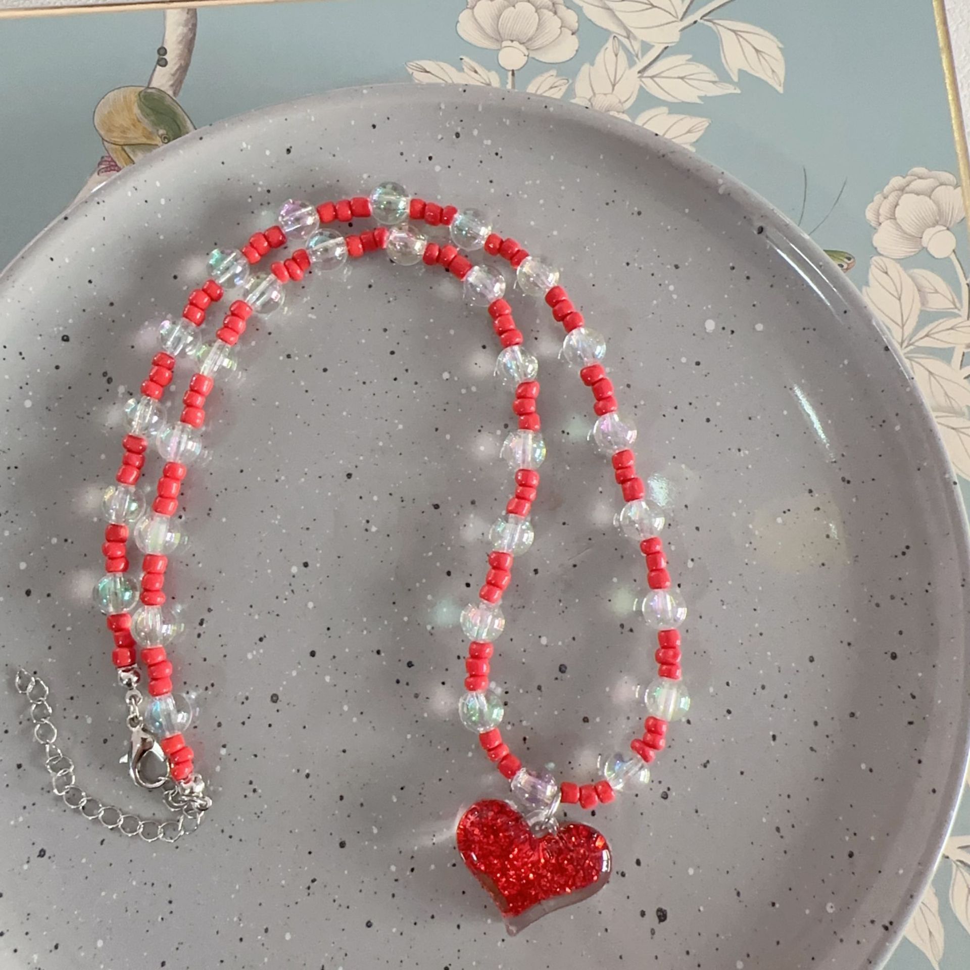 创意彩色串珠爱心吊坠项链女ins小众设计配饰个性甜酷毛衣链配饰