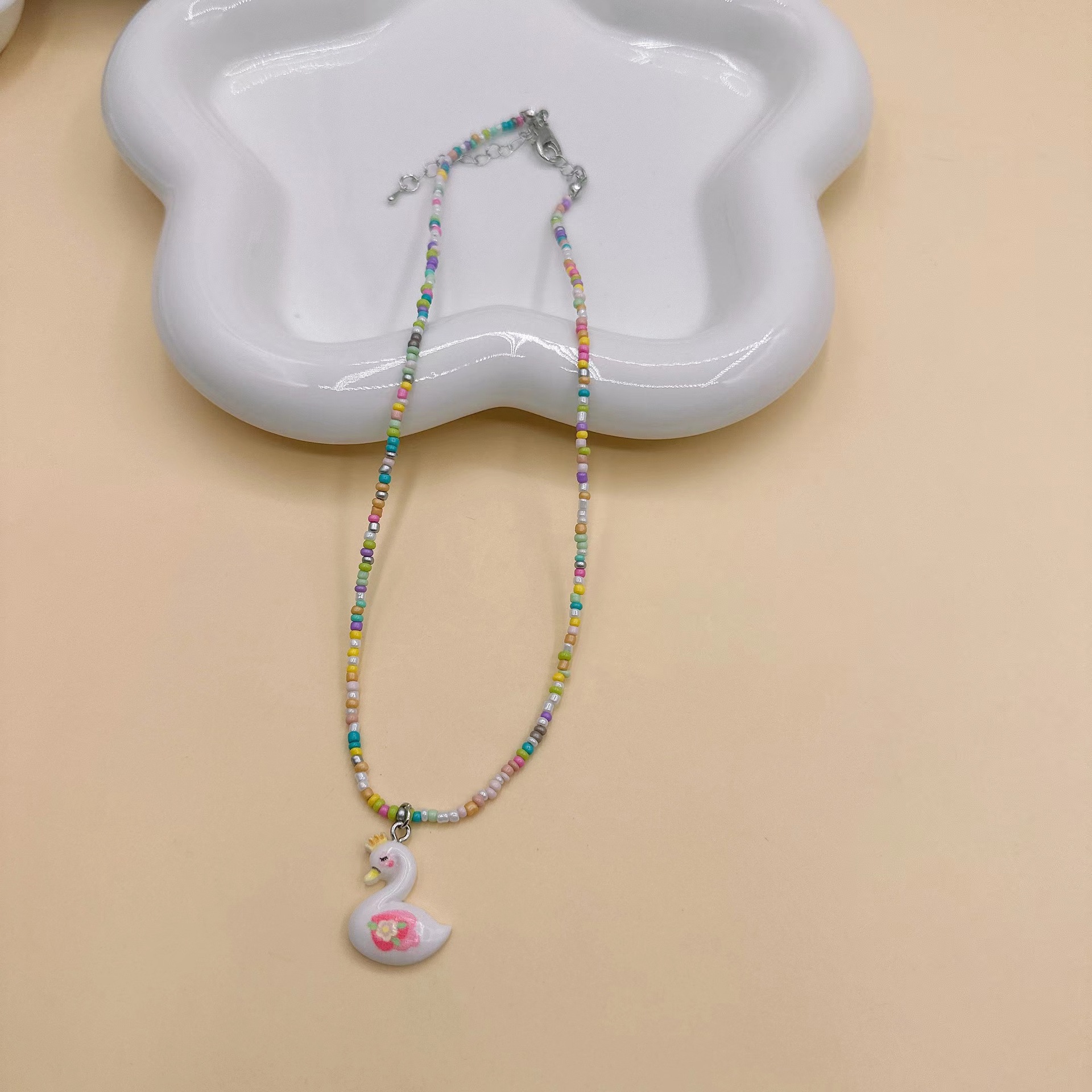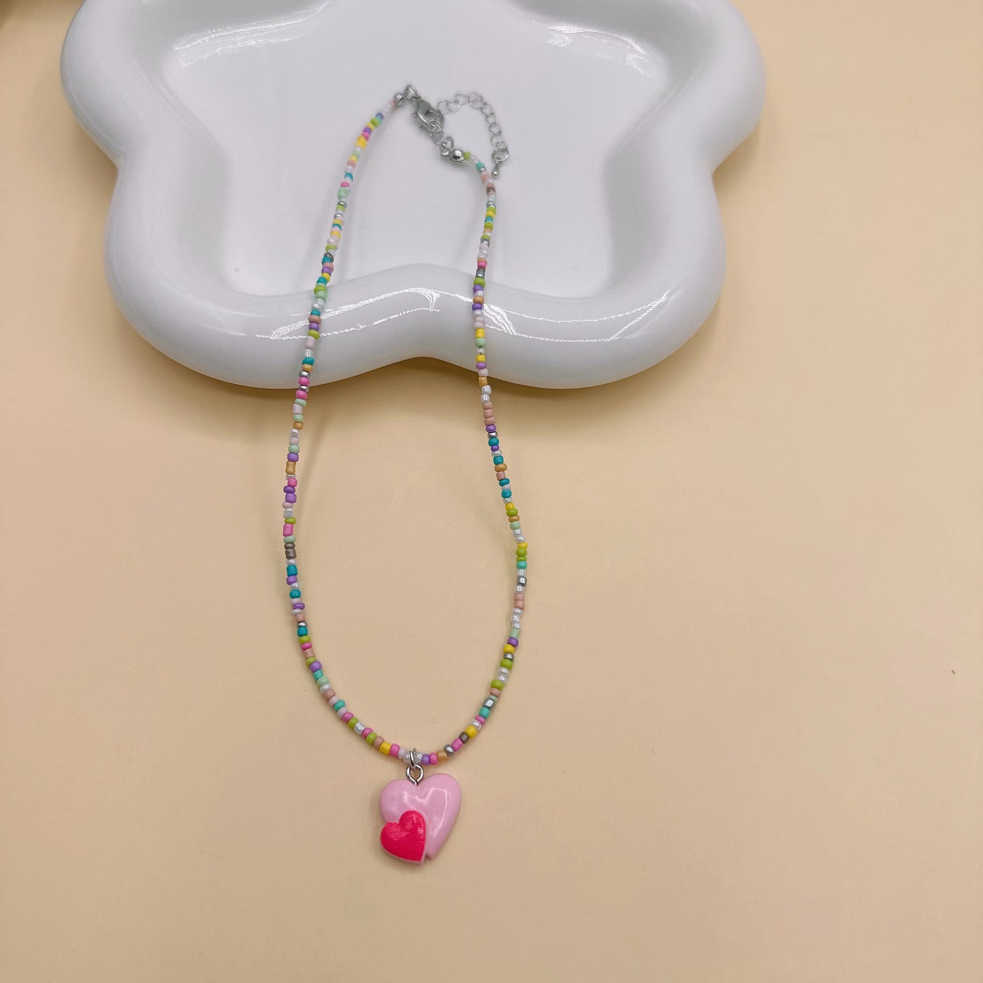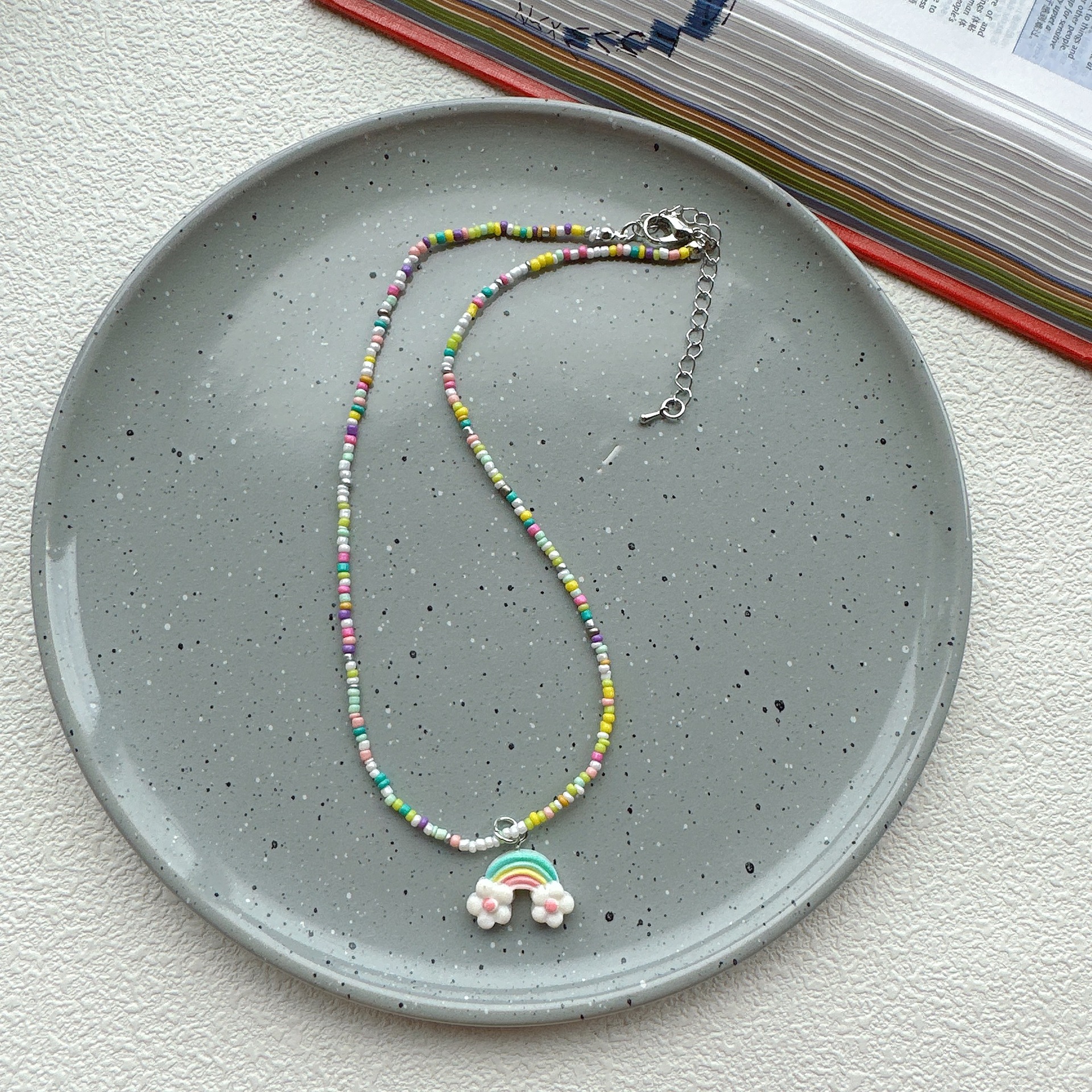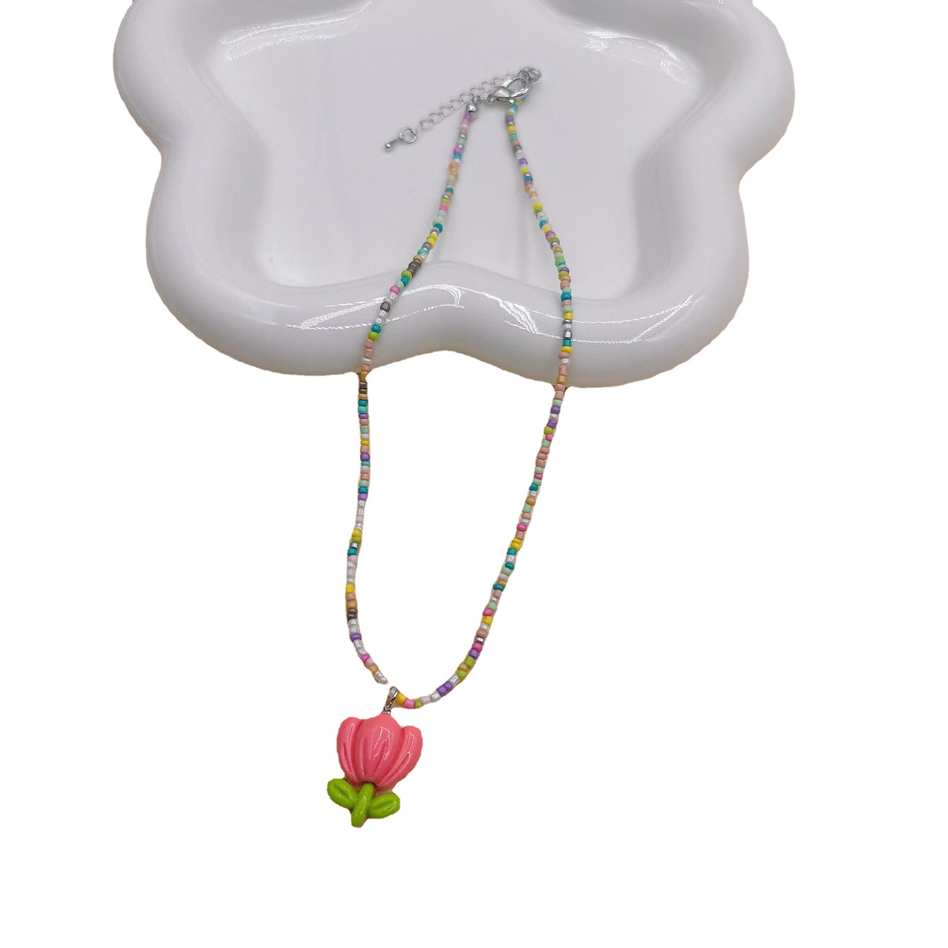 韩国彩色蝴蝶花朵项链颈链 ins风串珠米珠项链少女风昭和风项饰