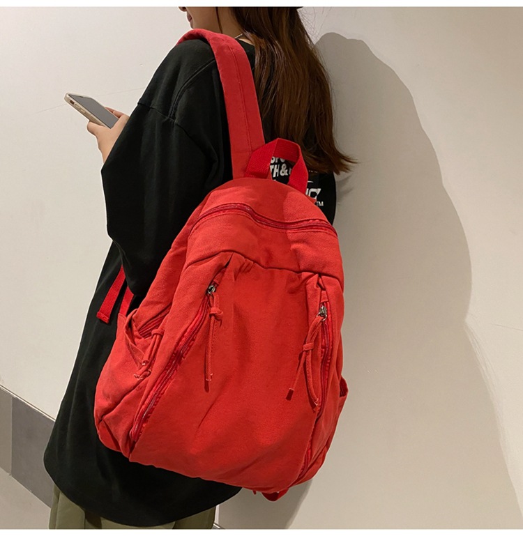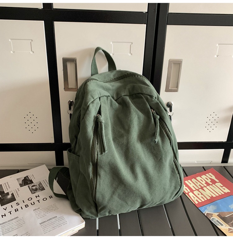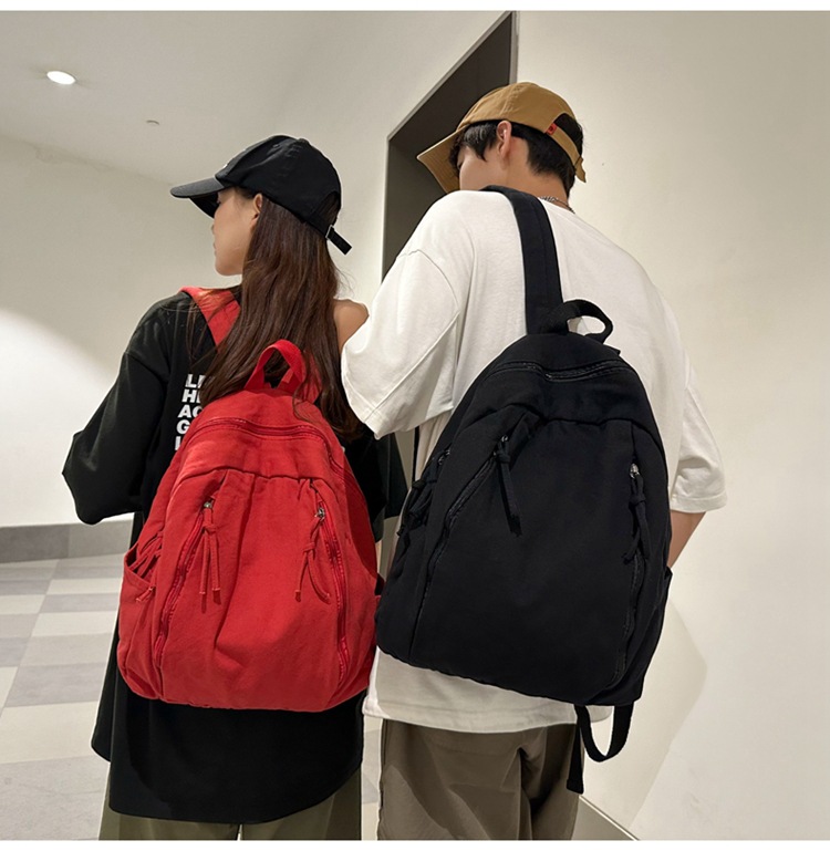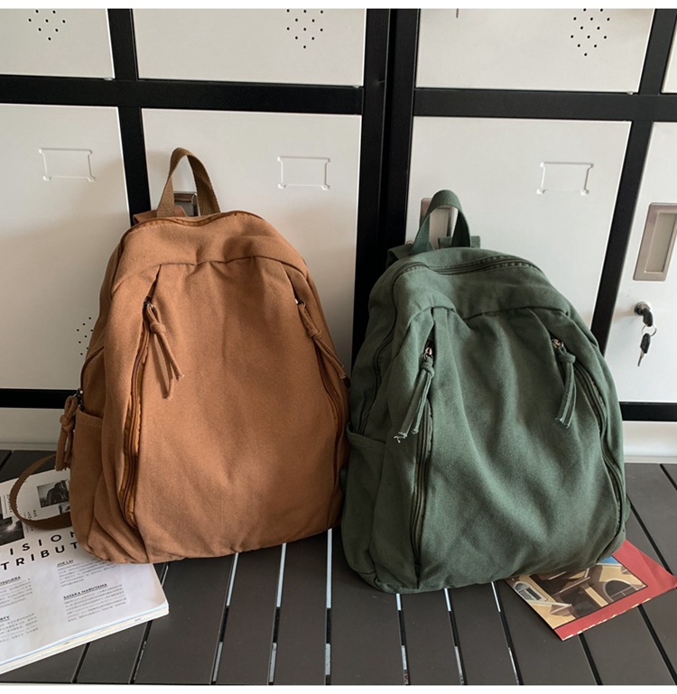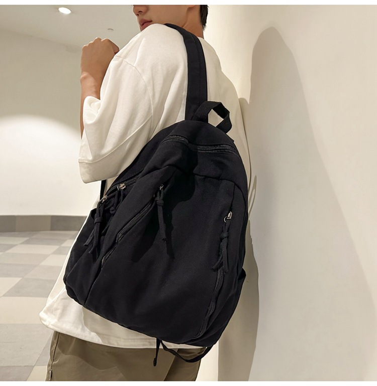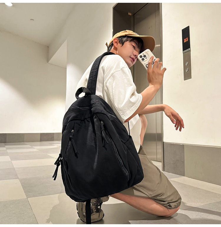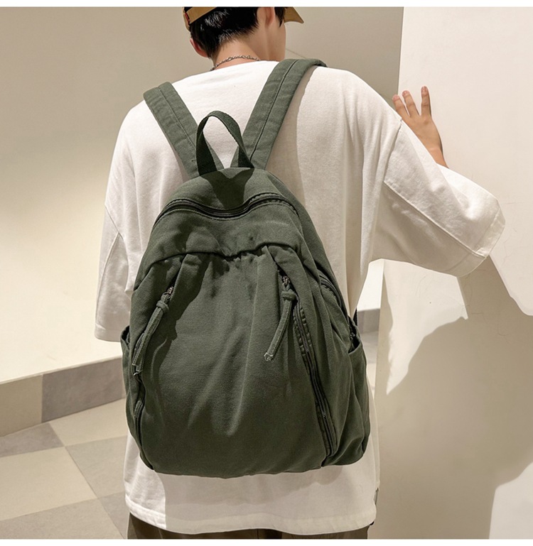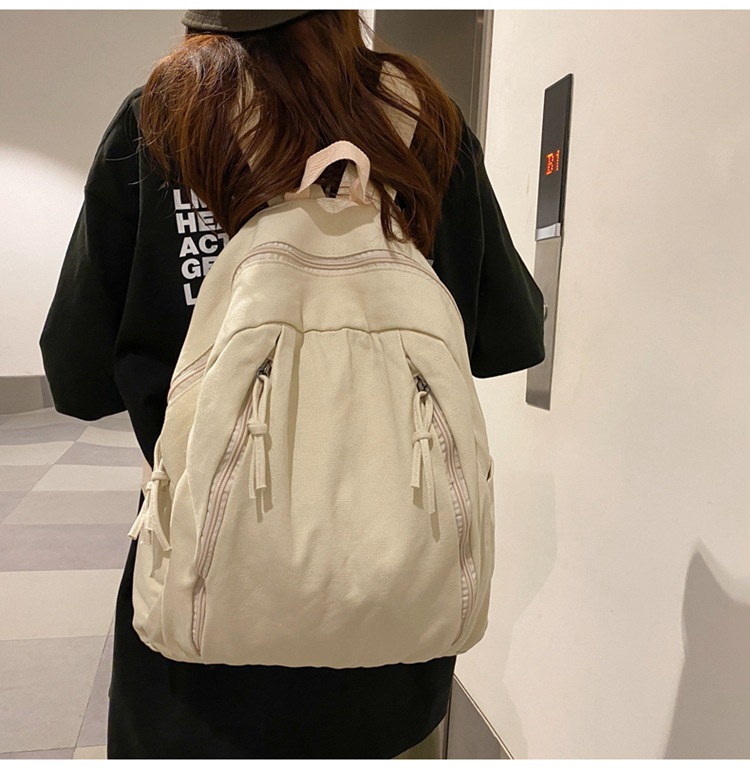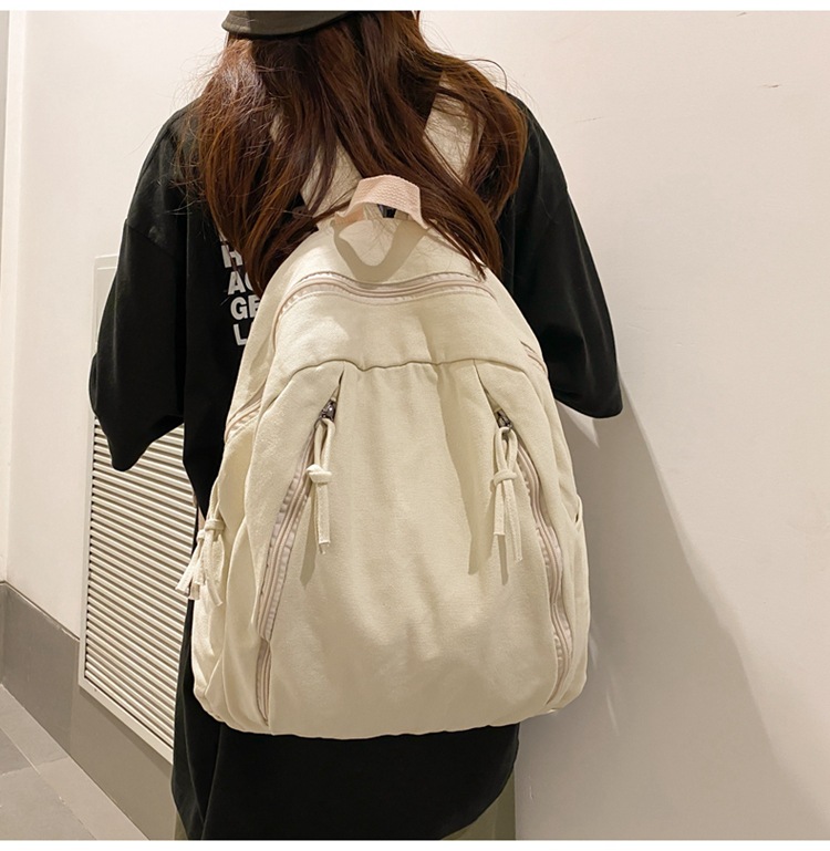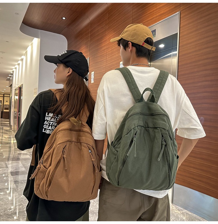 水洗帆布包女大容量简约纯色双肩包2024新款大学生书包旅行背包男