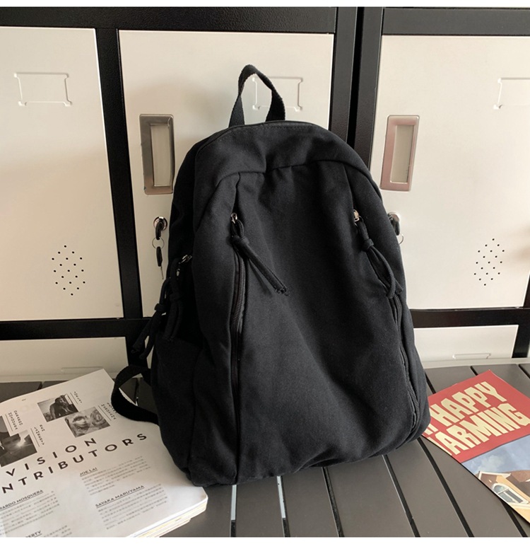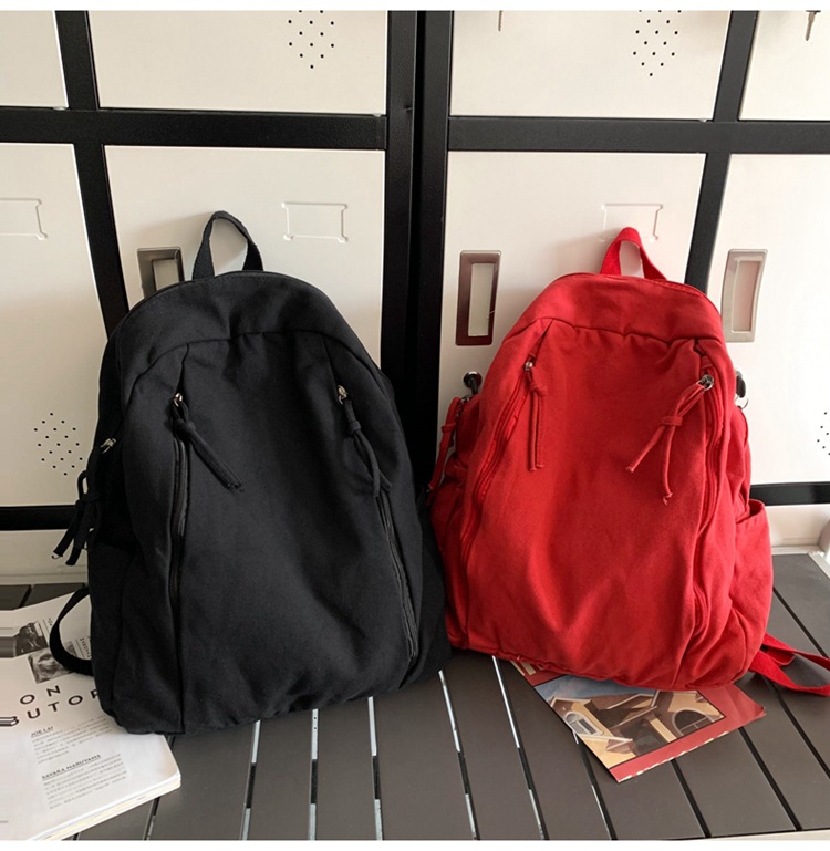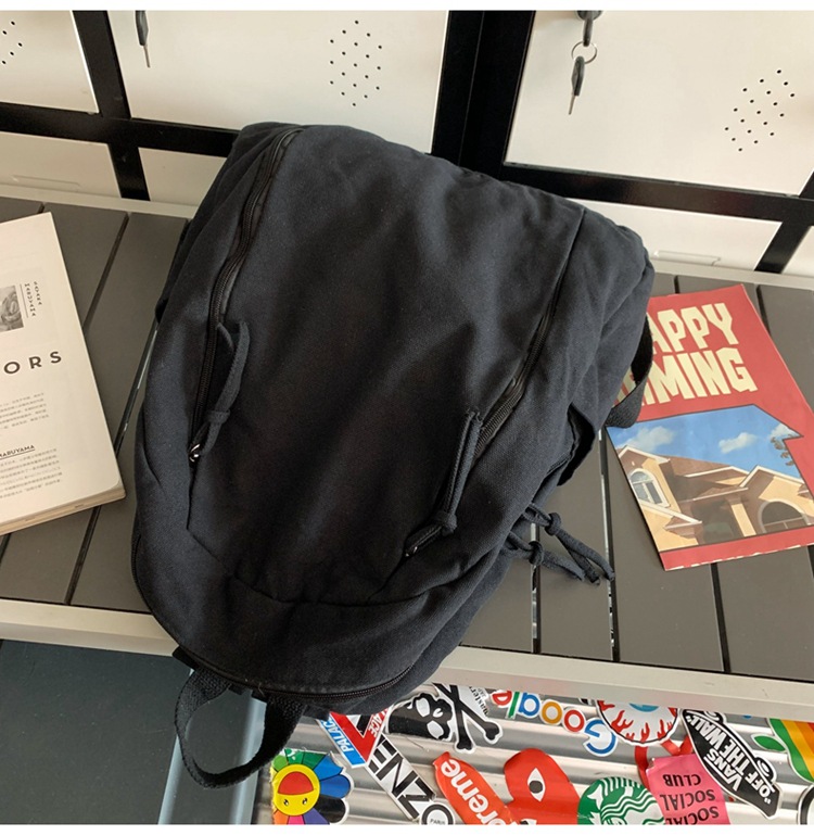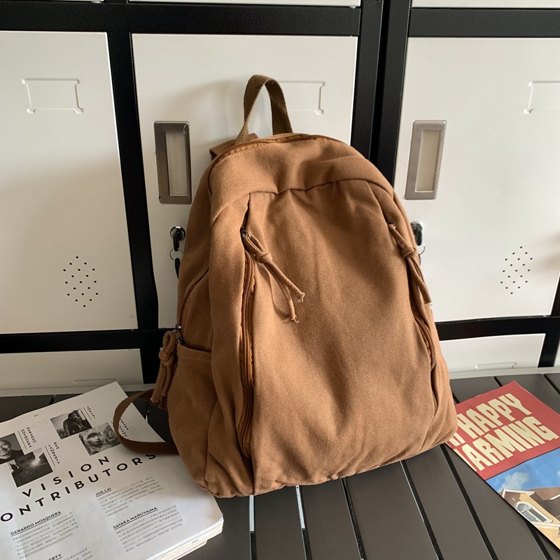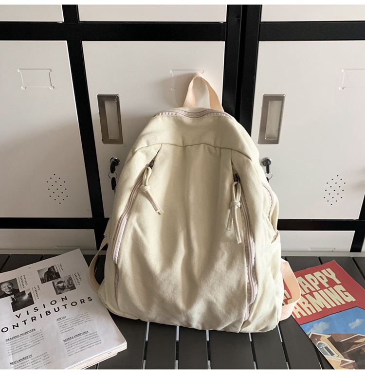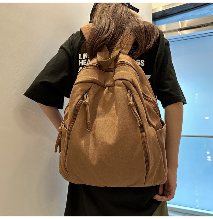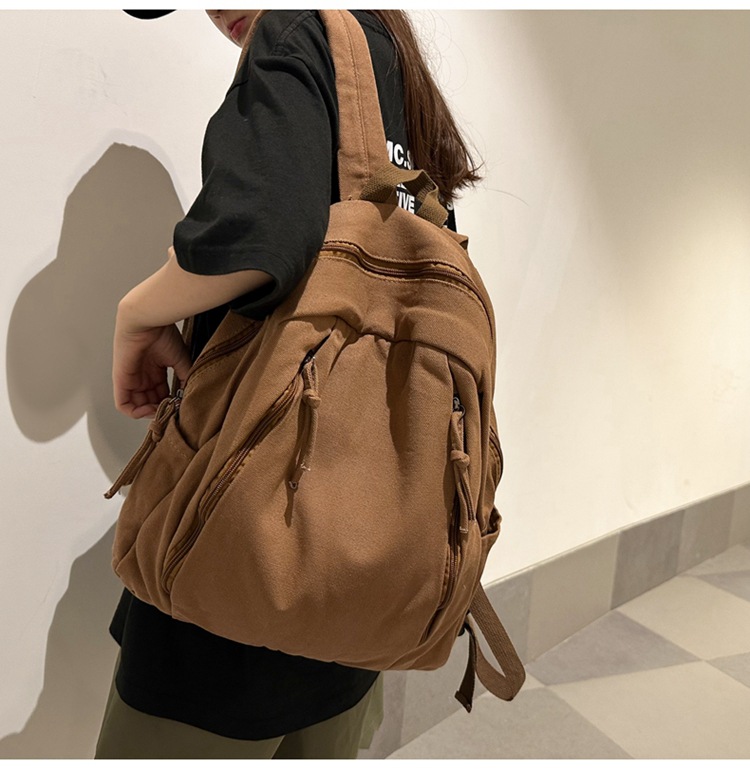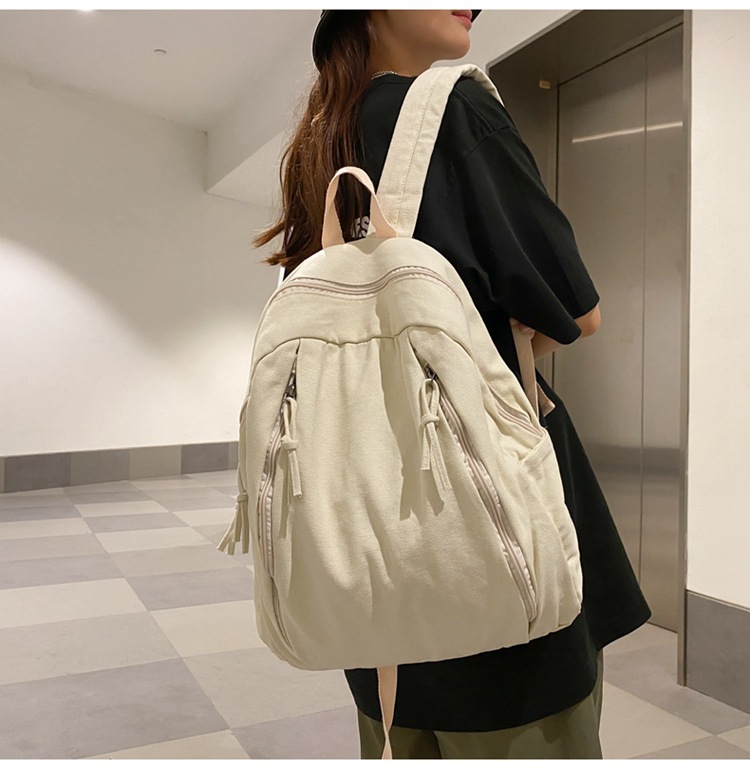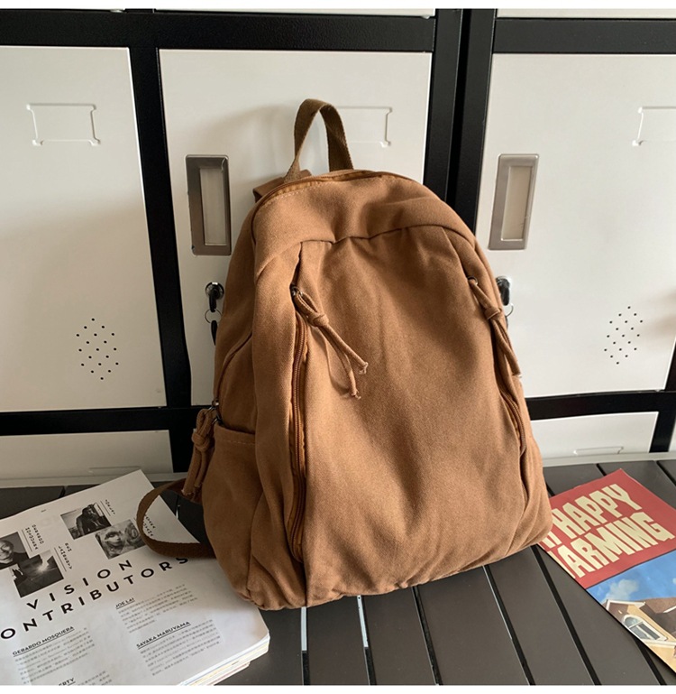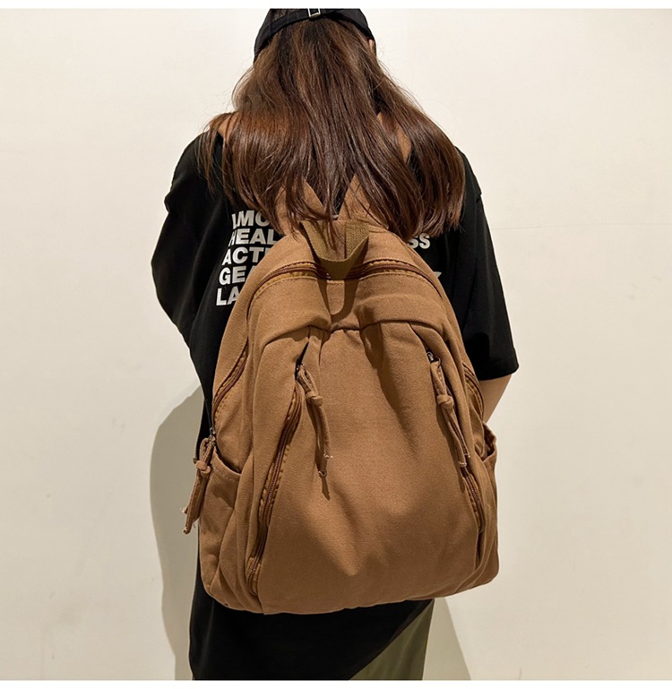 水洗帆布包女大容量简约纯色双肩包2024新款大学生书包旅行背包男