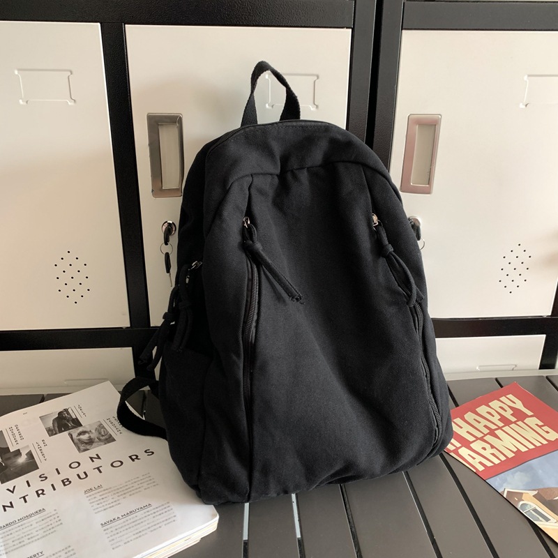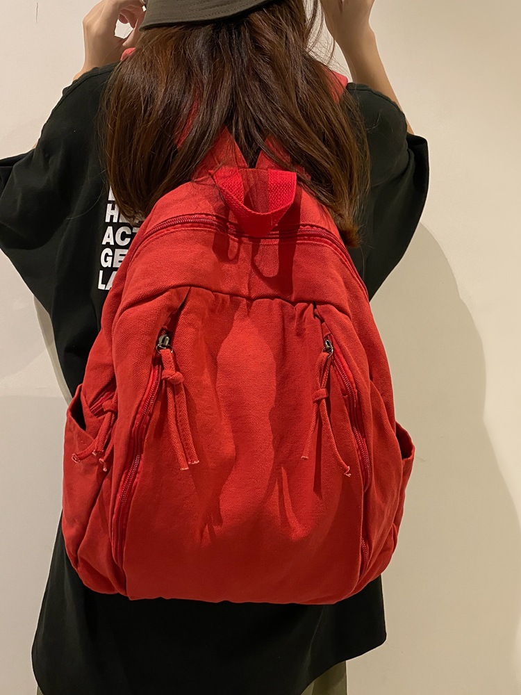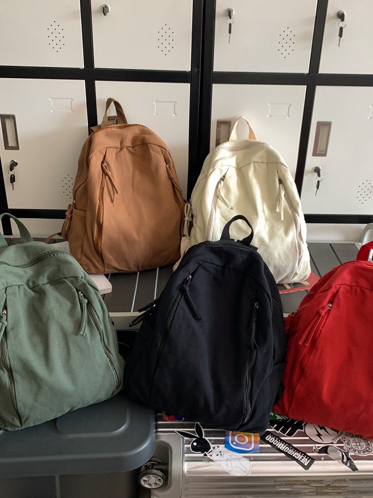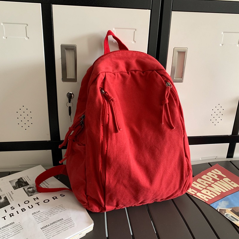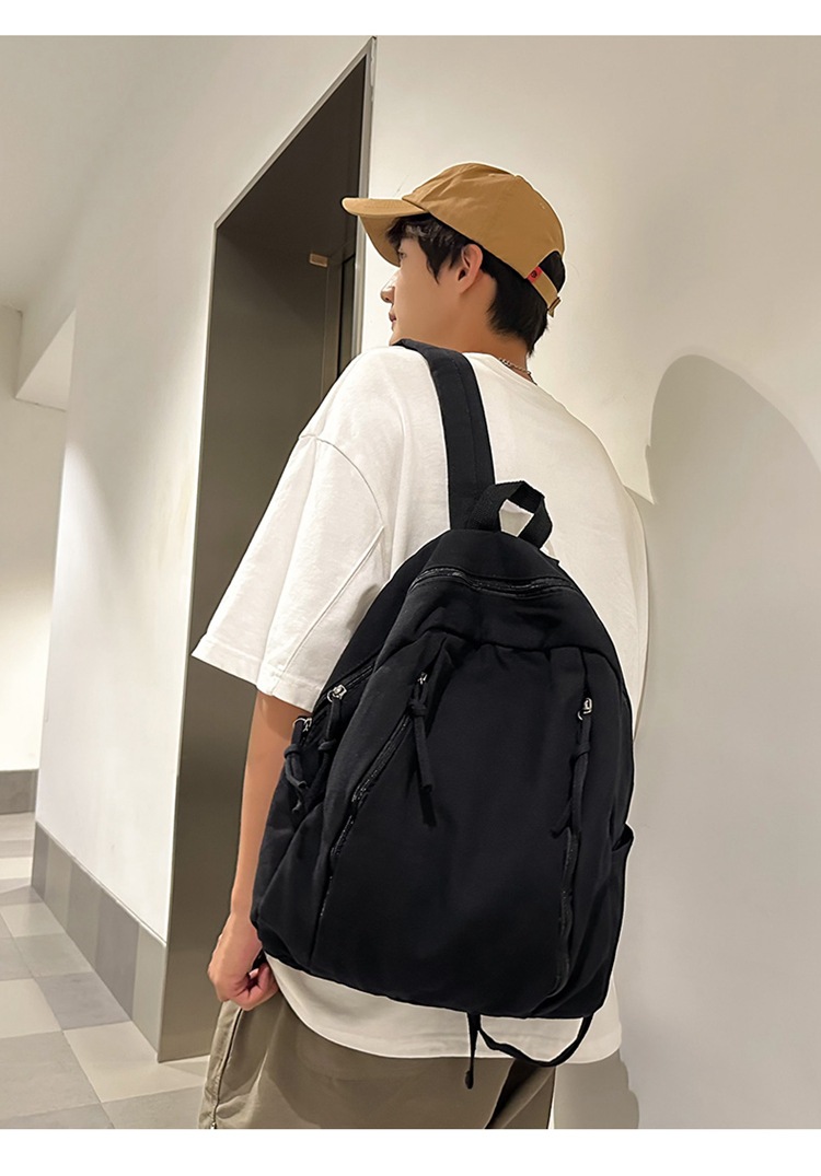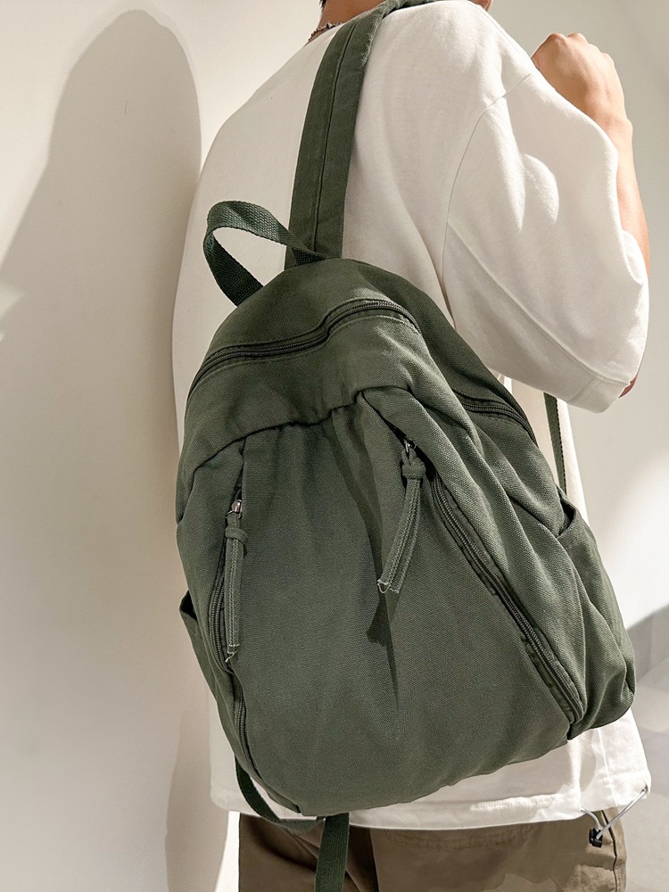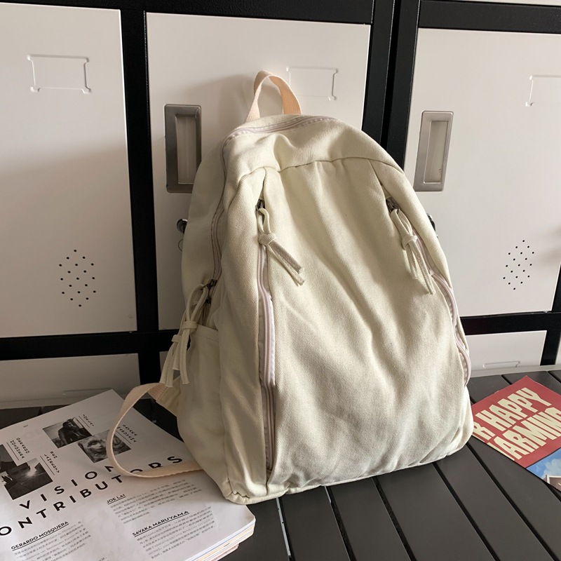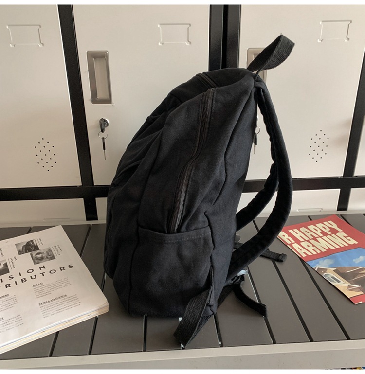 水洗帆布包女大容量简约纯色双肩包2024新款大学生书包旅行背包男