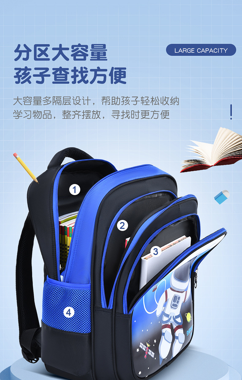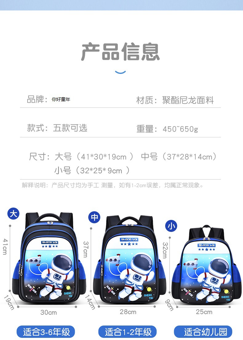 太空人书包小学生男孩儿童书包1-6年级减负护脊防水轻便双肩书包