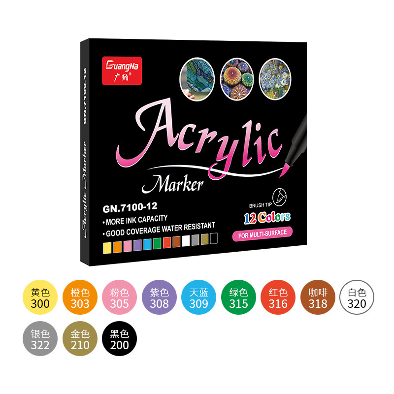 广纳7100软头丙烯水性油漆笔马克笔手绘涂鸦手账绘画记号笔60色批