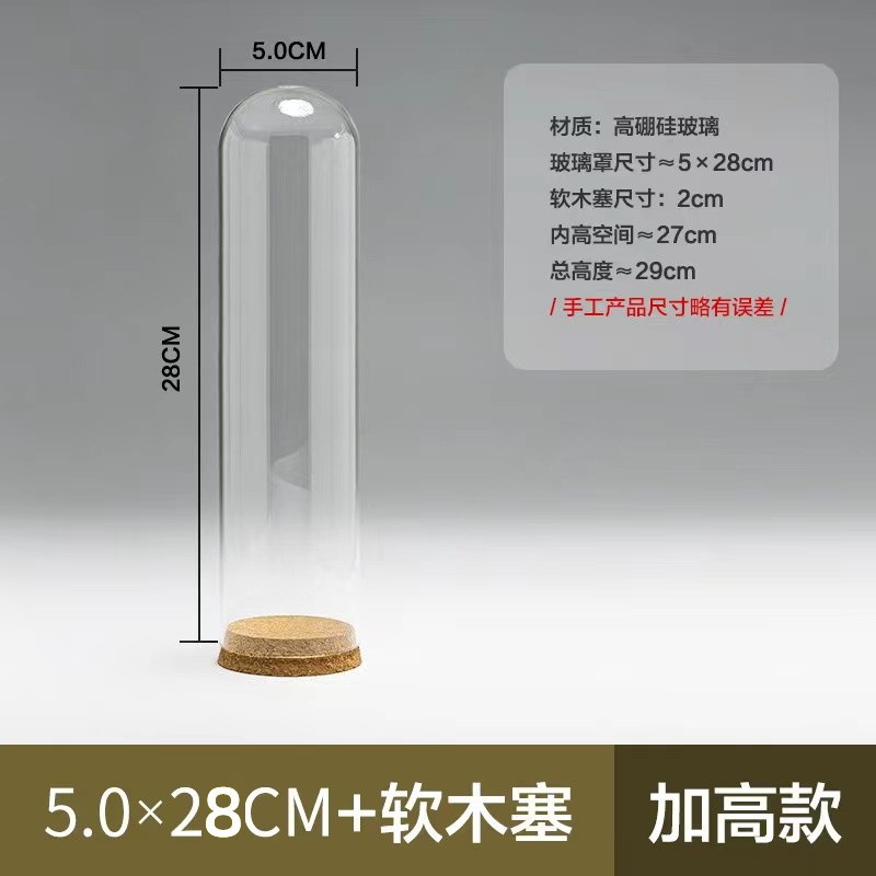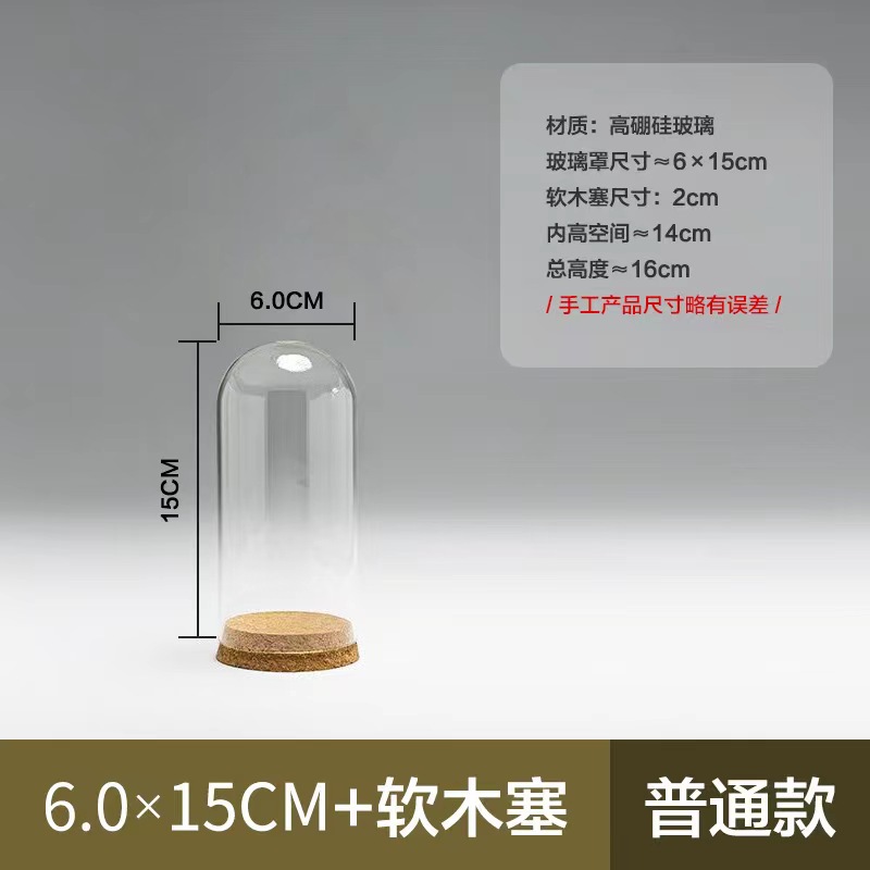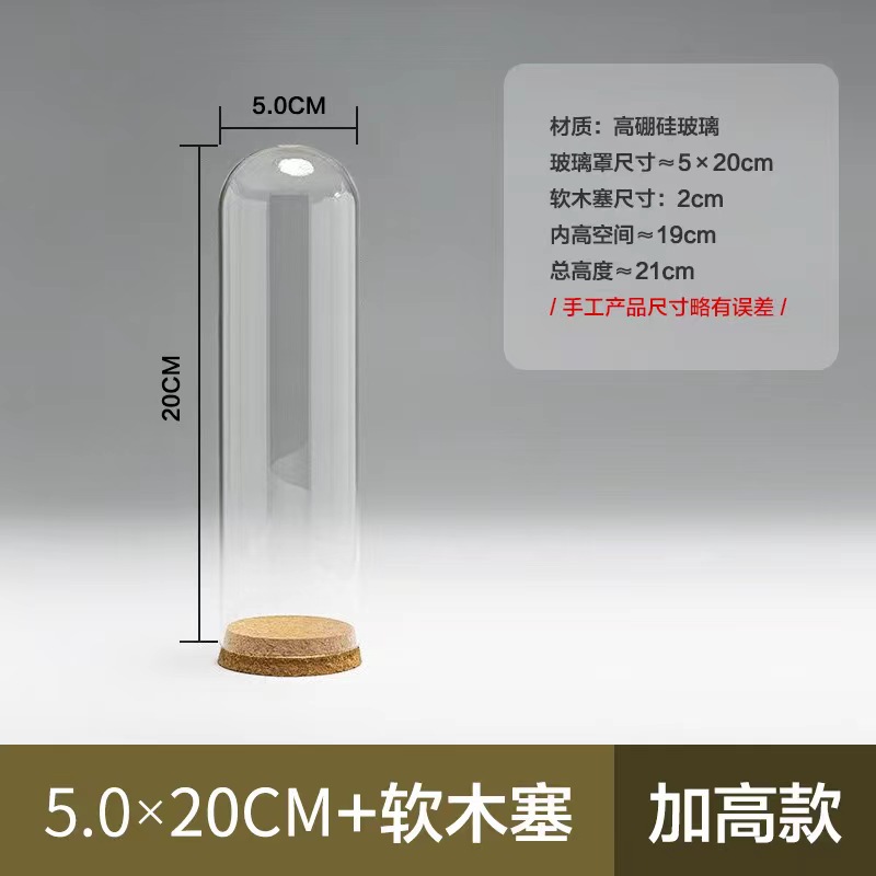 厂家直供永生花软木塞玻璃罩 DIY手办盲盒黏土软陶微景观防尘罩子