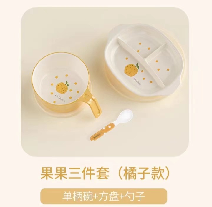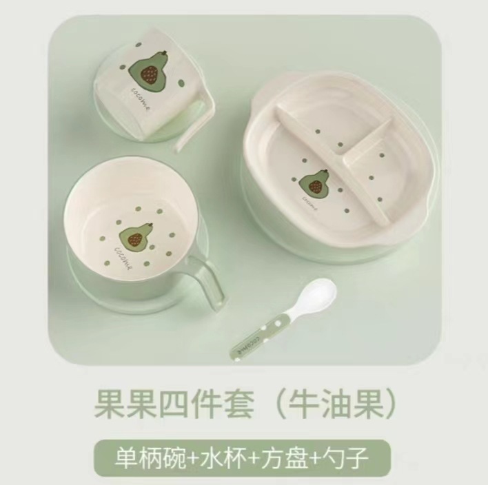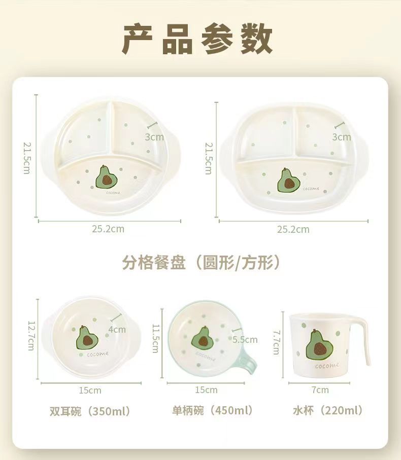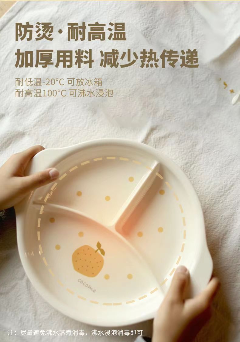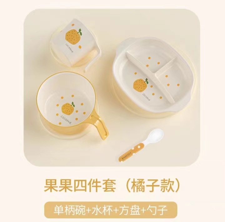 可可萌仿陶瓷儿童餐具儿童辅食碗水杯儿童分格餐盘辅食工具