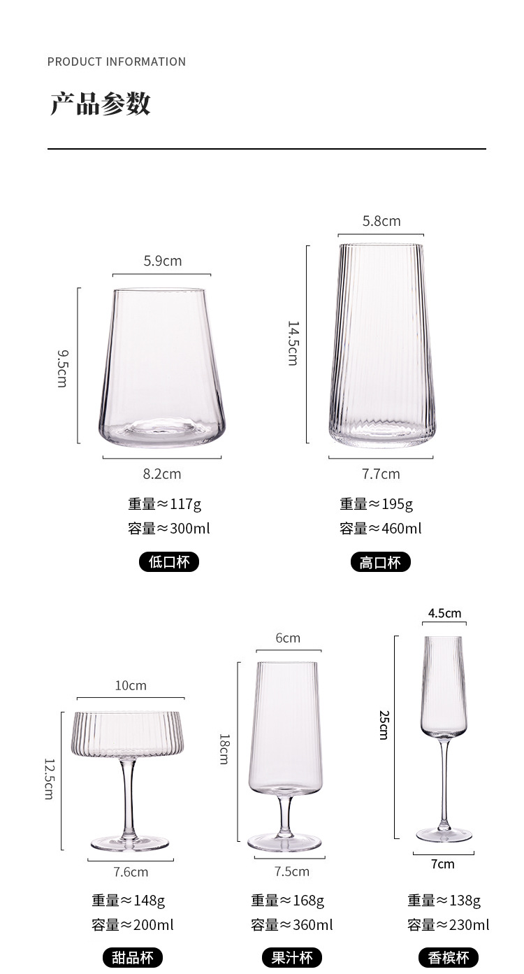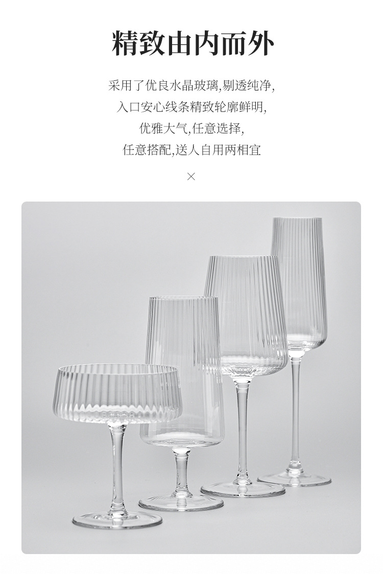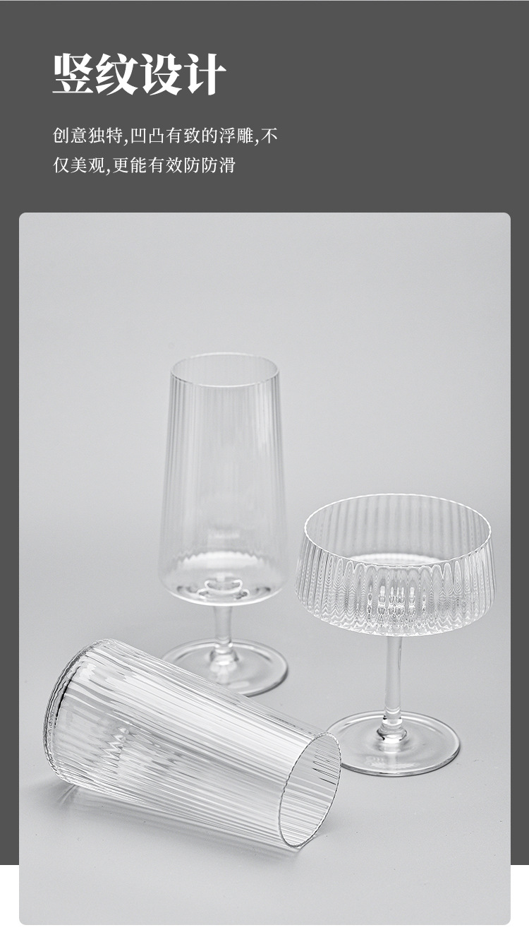 竖纹密楞玻璃红酒杯白葡萄酒杯香槟杯果汁口杯甜品杯冷水壶高脚杯