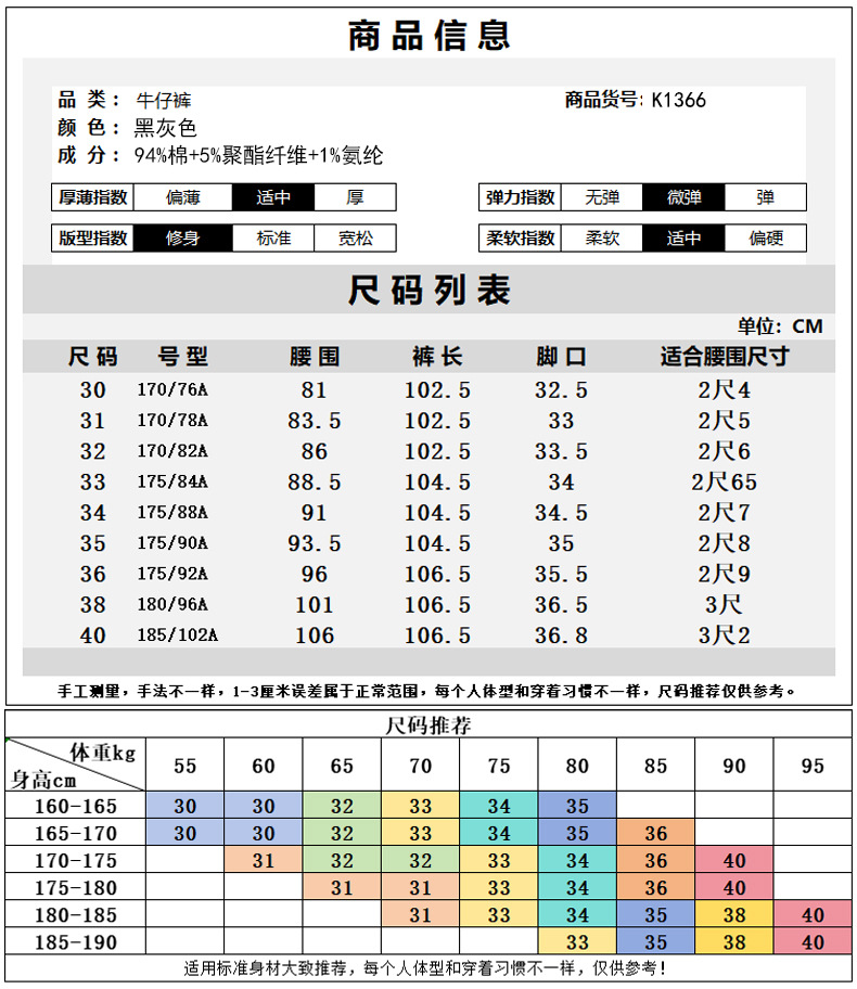 撤柜 牛仔裤男秋冬季休闲裤微弹修身中腰直筒水洗高棉长裤子K1366
