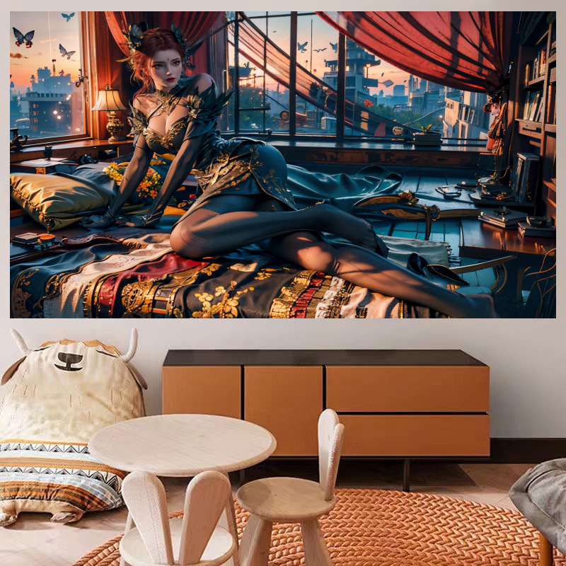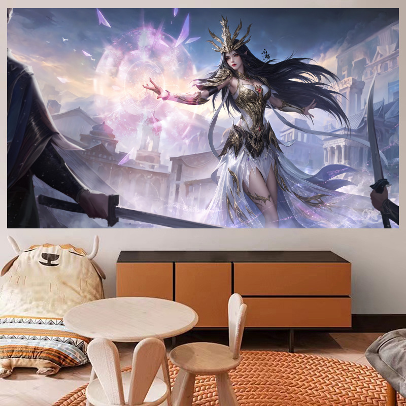 斗破苍穹美杜莎萧炎云韵海报背景墙挂布房间宿舍墙上装饰墙布挂毯