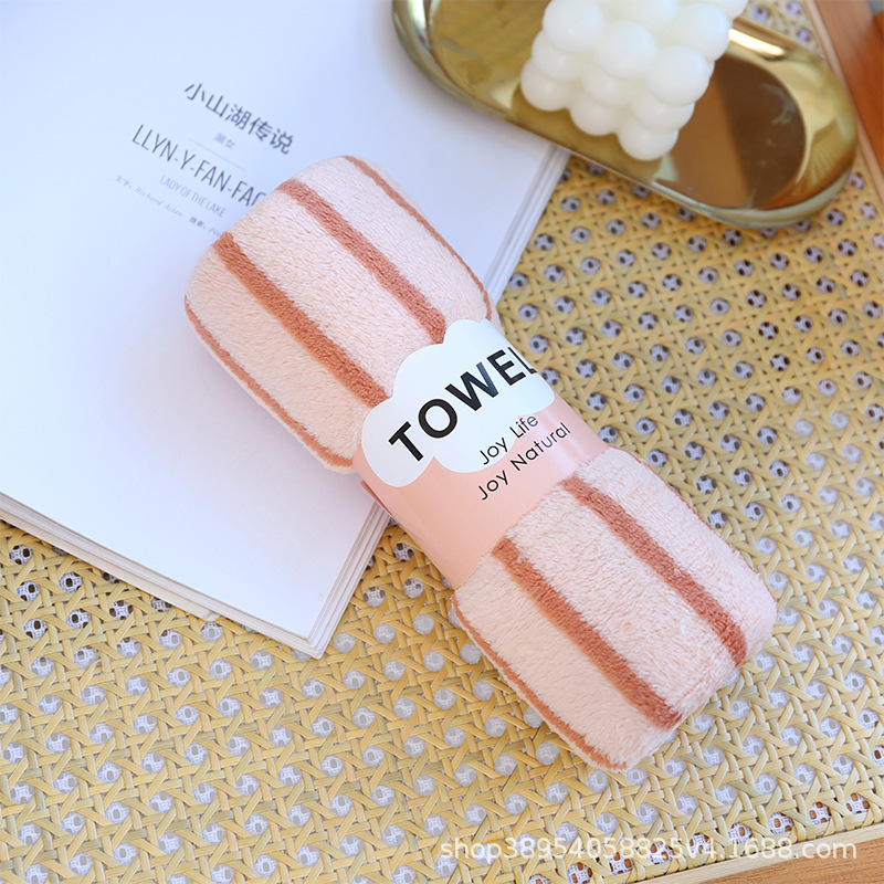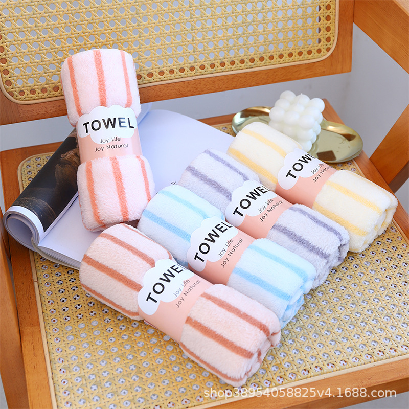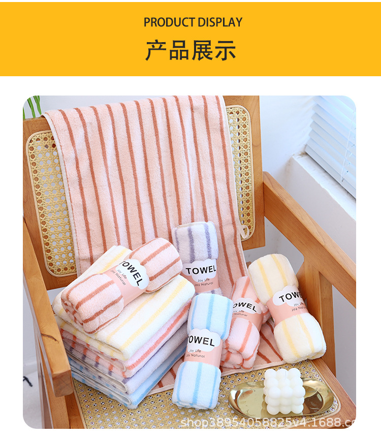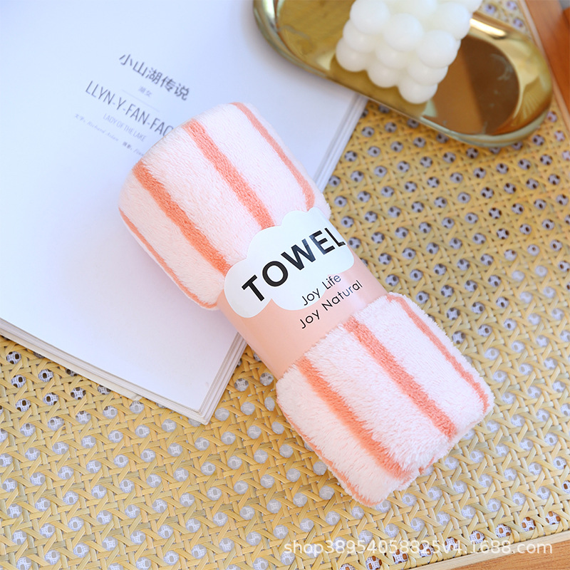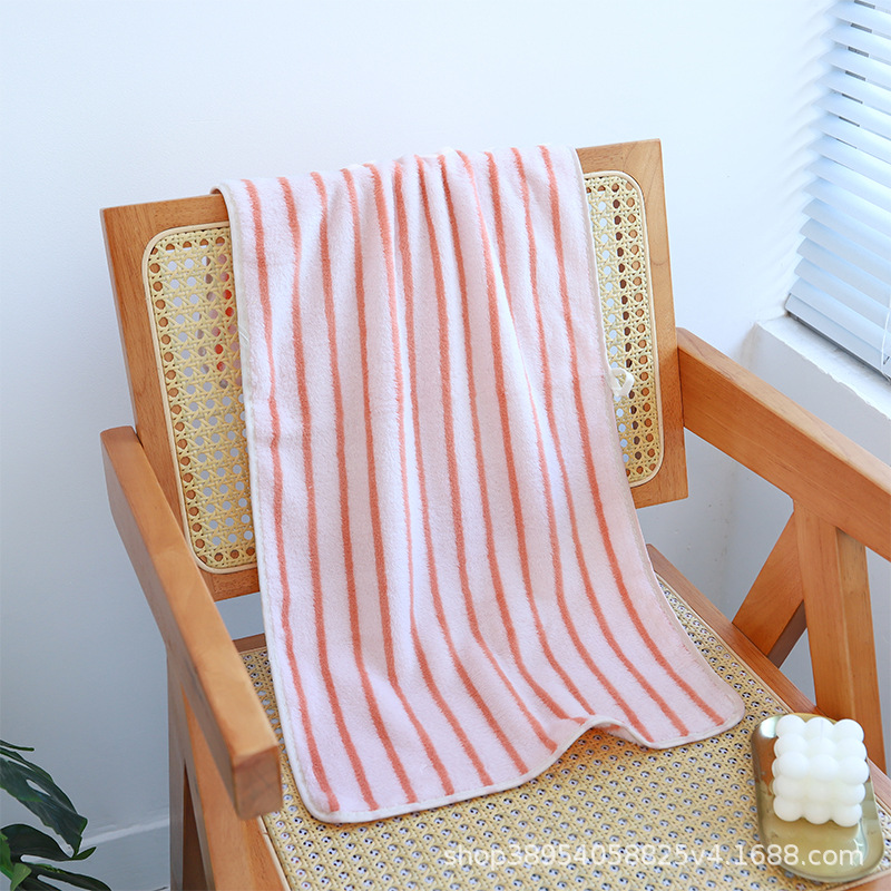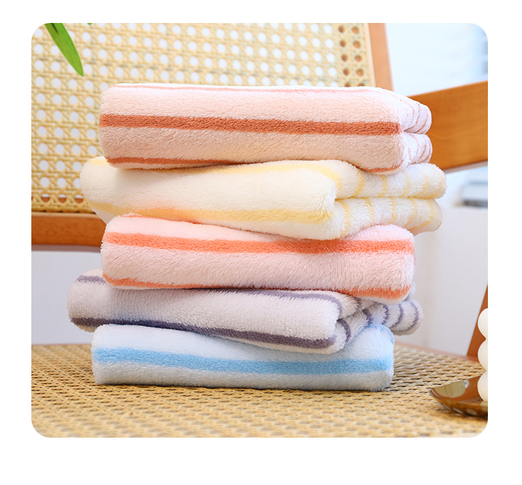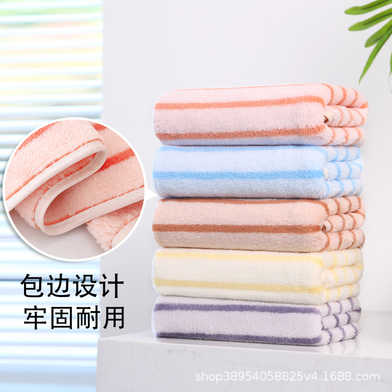 新款批发阳离子条纹珊瑚绒毛巾家用洗澡洗脸巾速干柔软吸水不掉毛