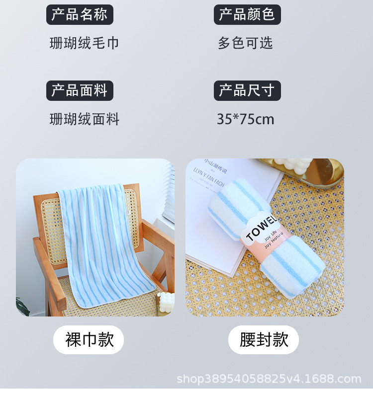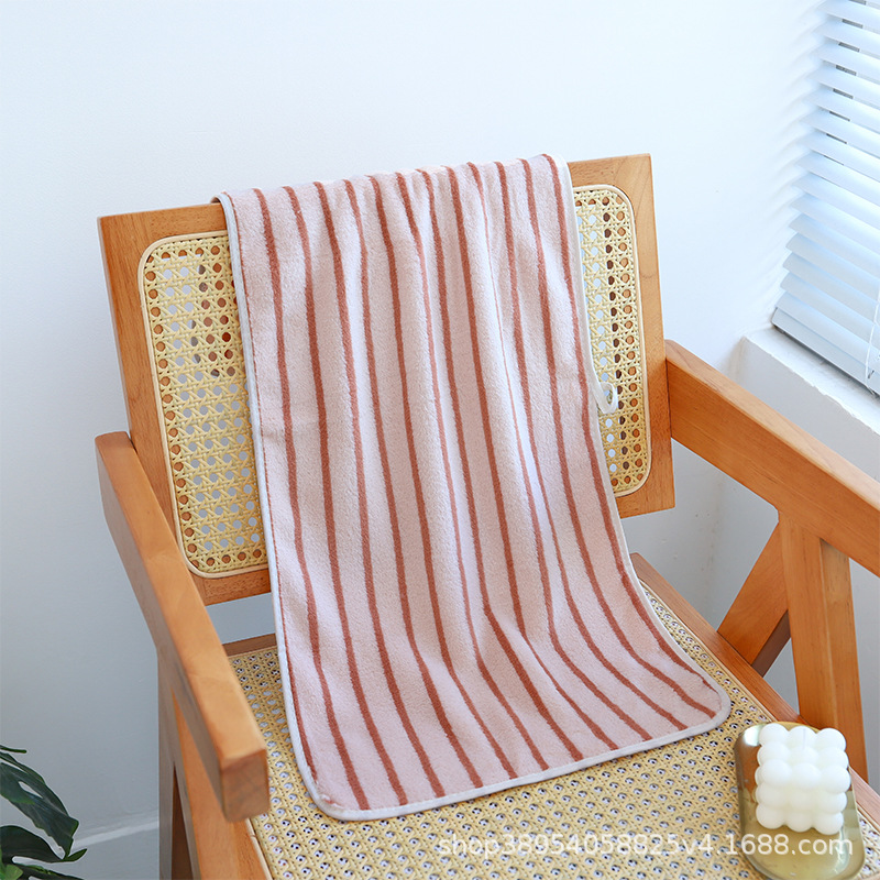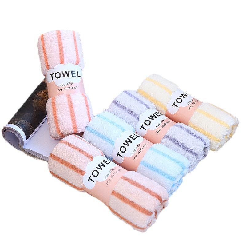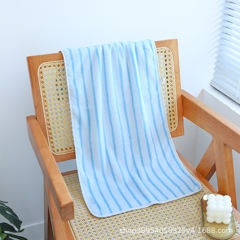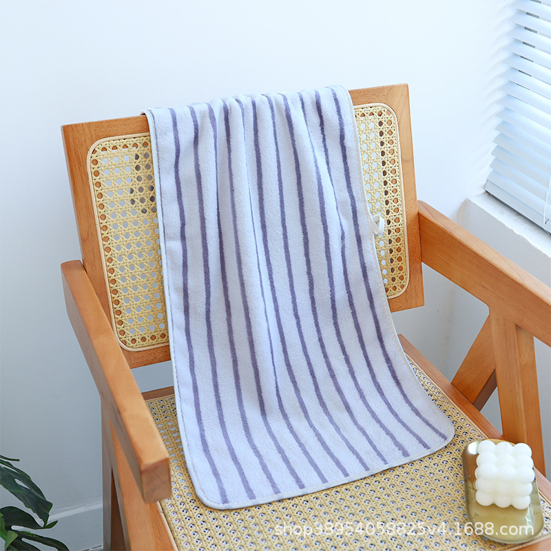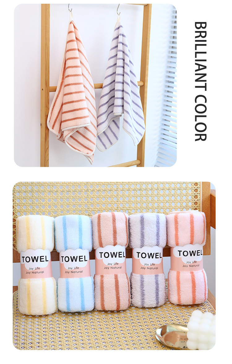 新款批发阳离子条纹珊瑚绒毛巾家用洗澡洗脸巾速干柔软吸水不掉毛