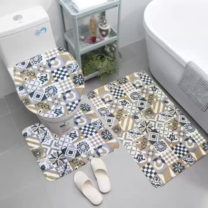 陶瓷图案三件套地毯吸水防滑家用地垫浴室客厅书房地毯