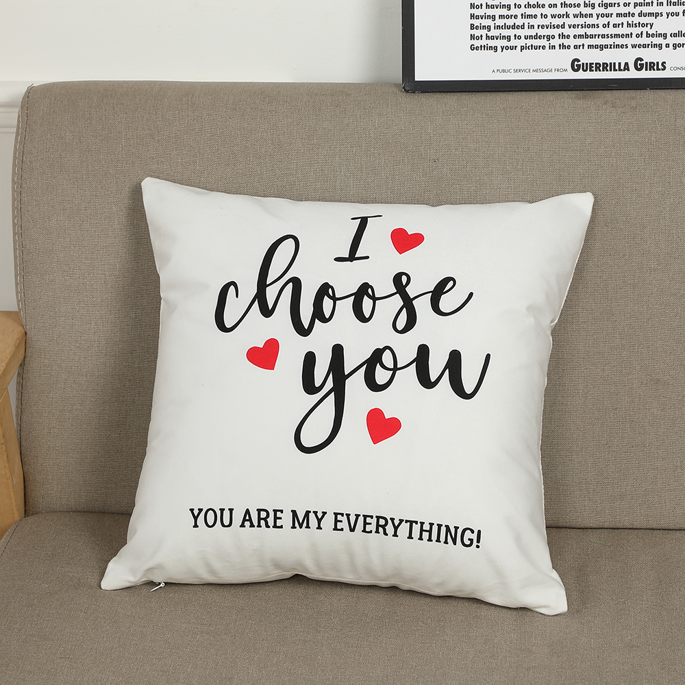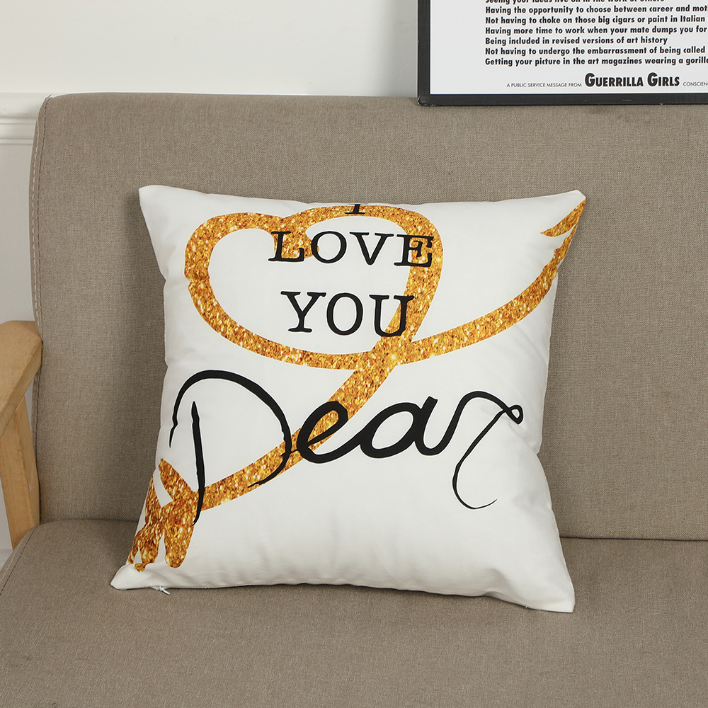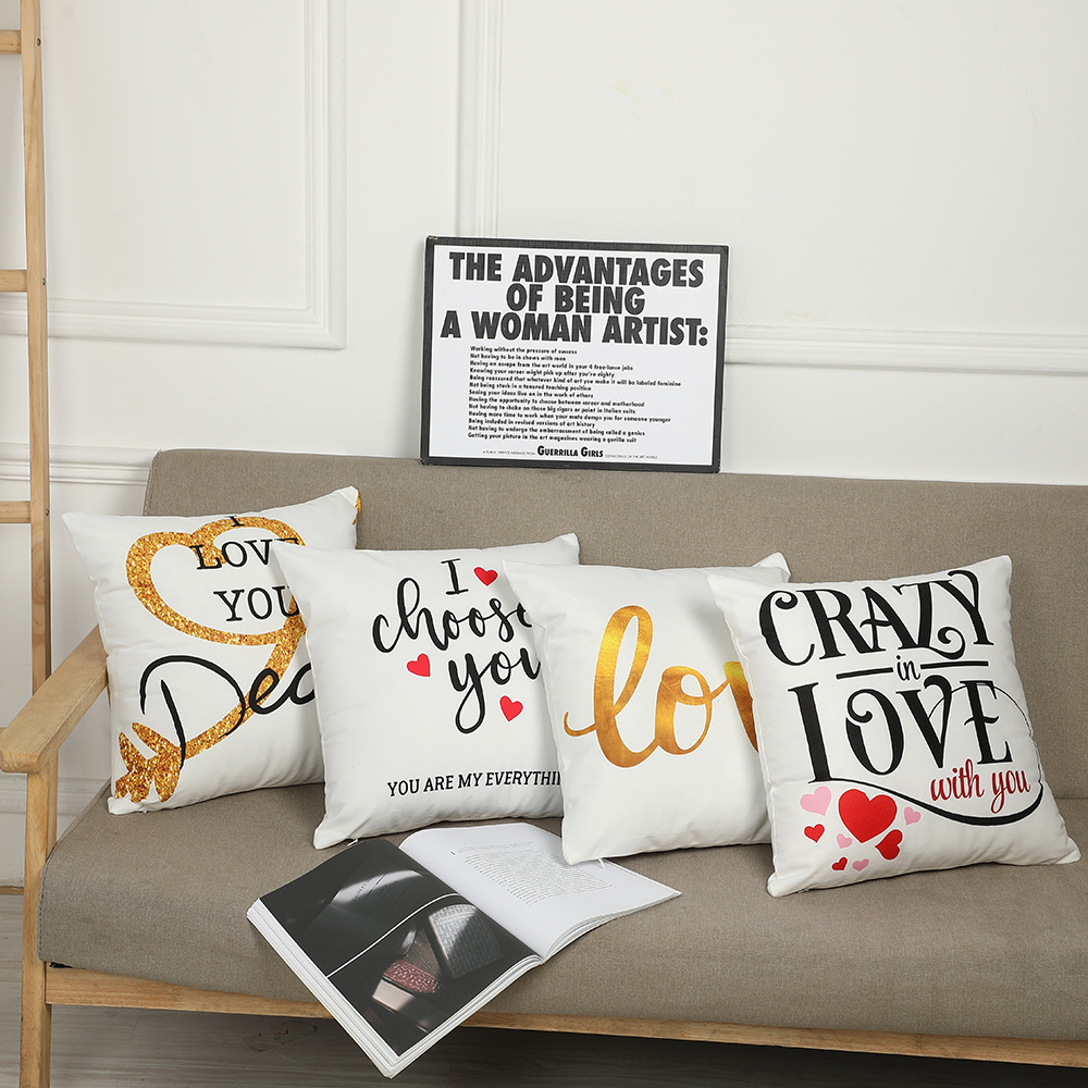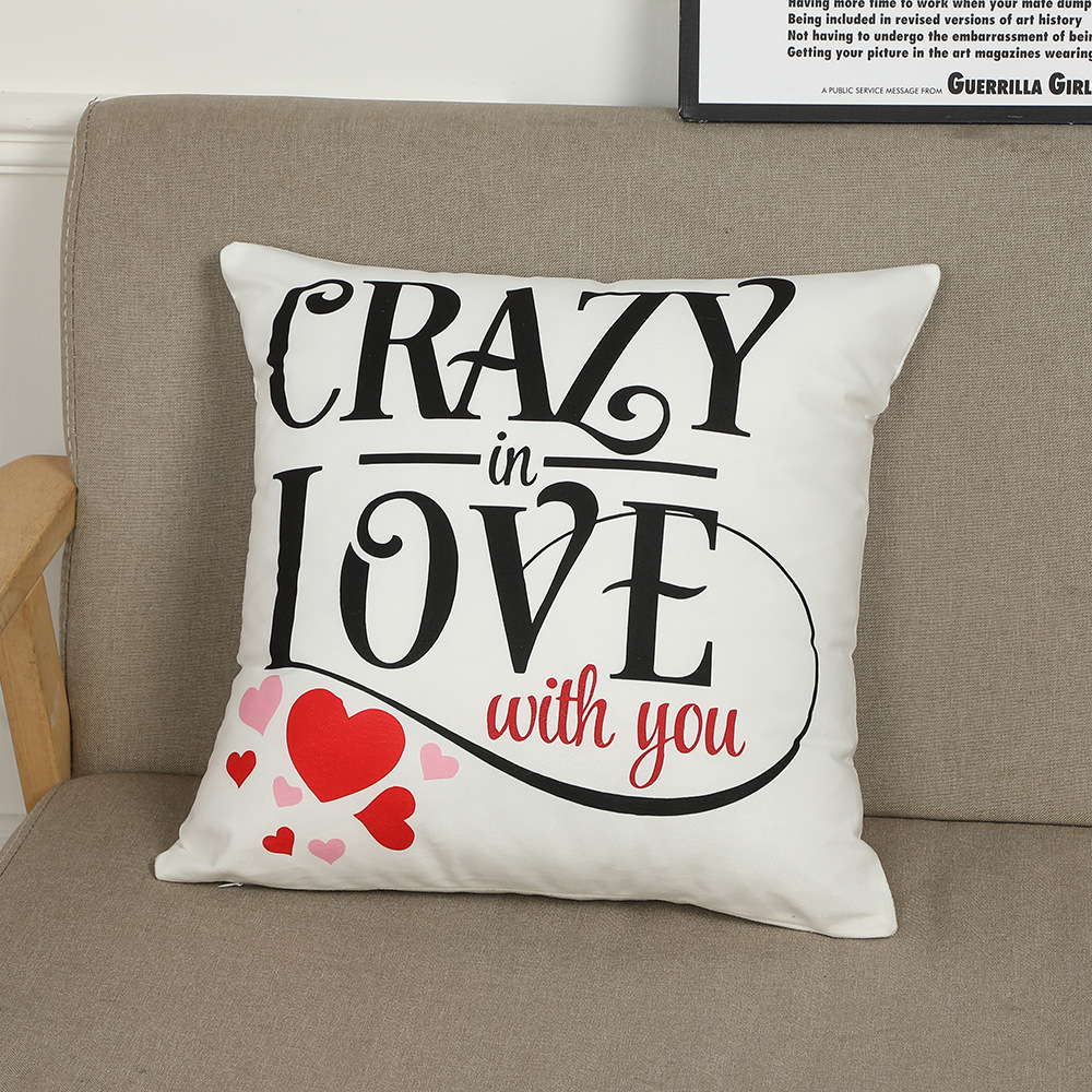 跨境新款情人节抱枕套短毛绒字母印花靠枕客厅卧室沙发靠垫套批发