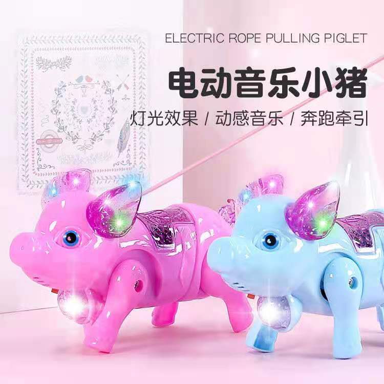 电动音乐牵绳投影小猪 抖音夜市地摊货源批发 发光玩具 儿童玩具