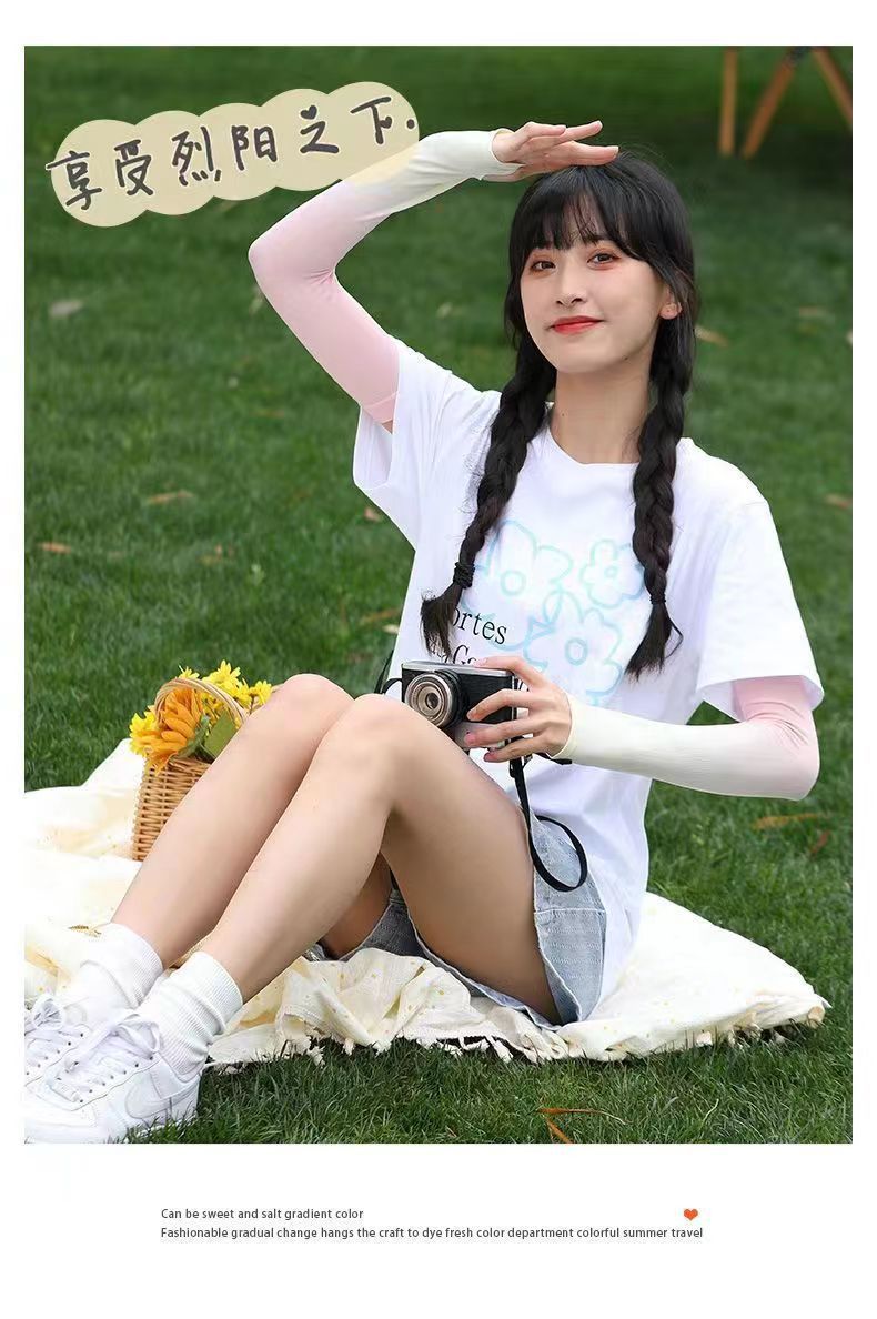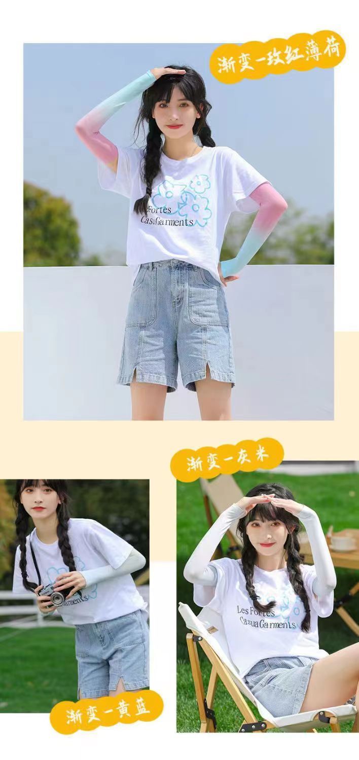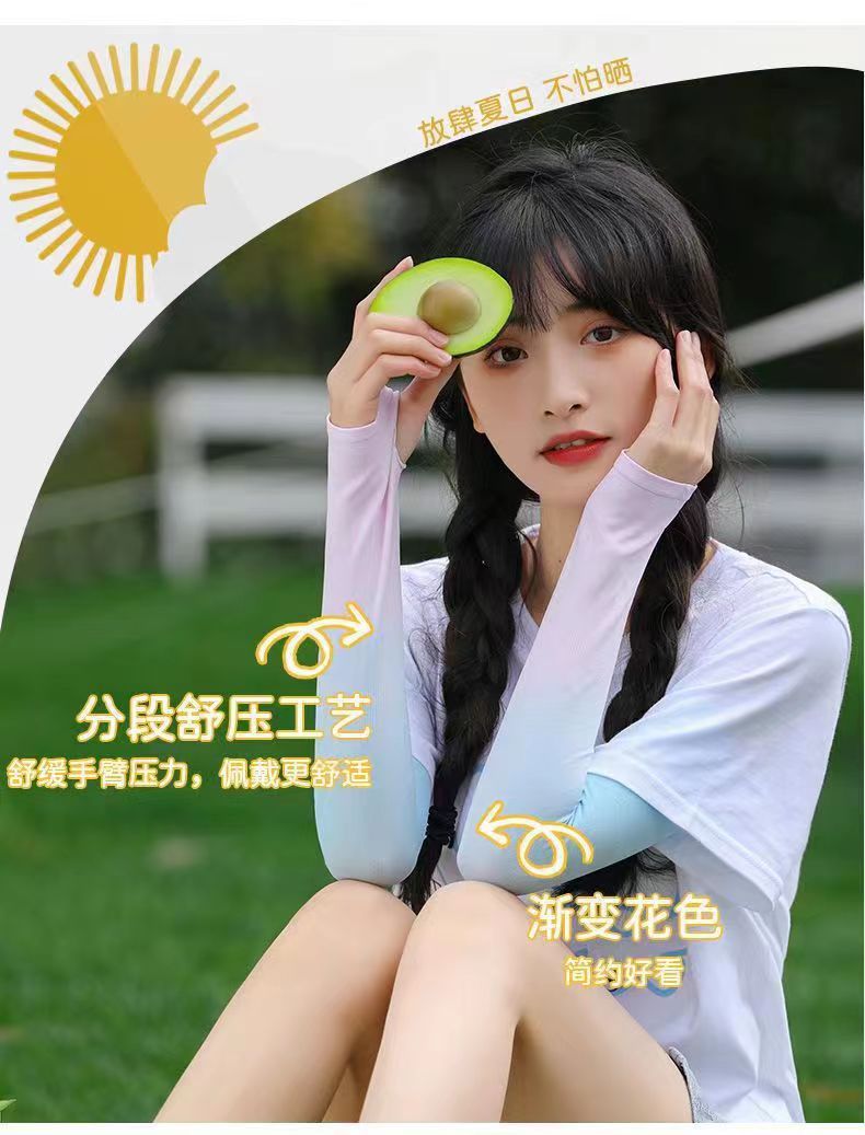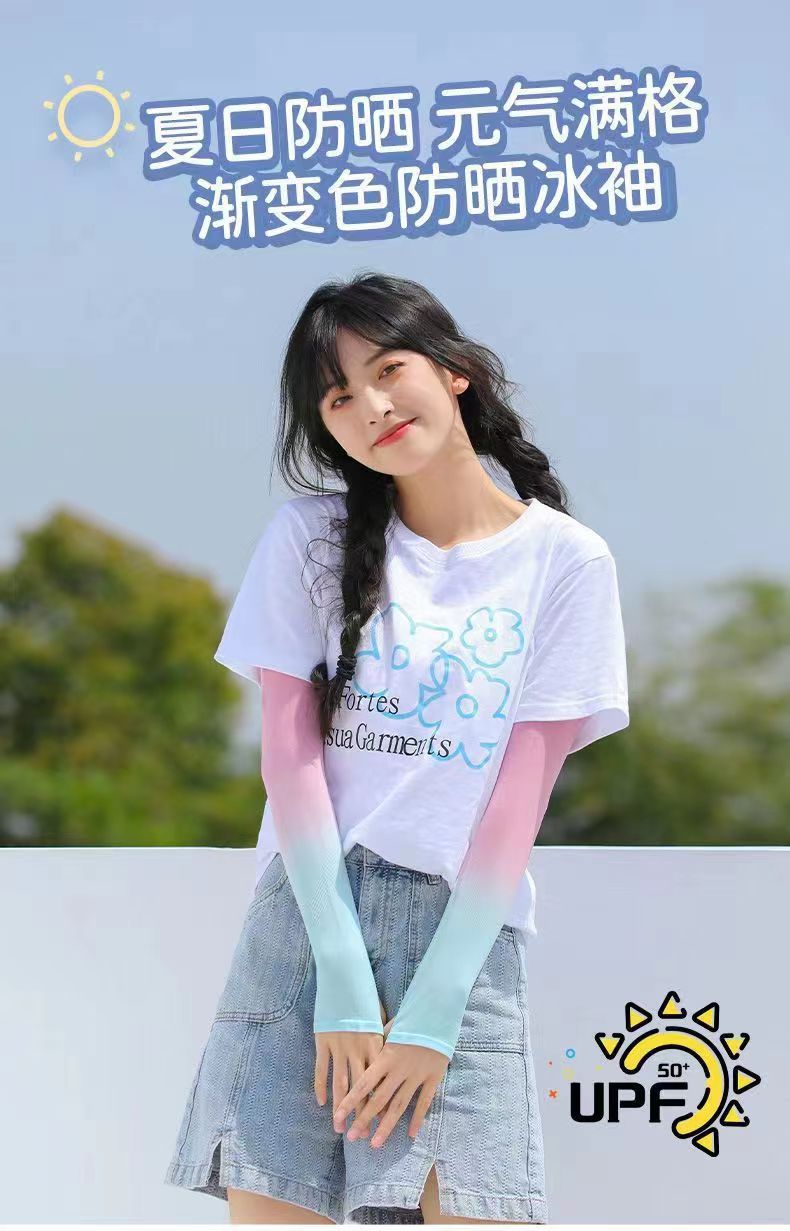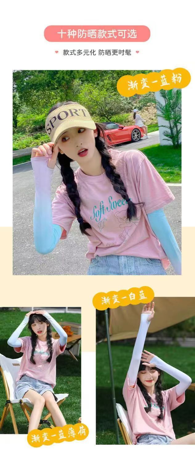 2024新款冰袖渐变色冰丝防晒袖套男女户外骑行开车防紫外线