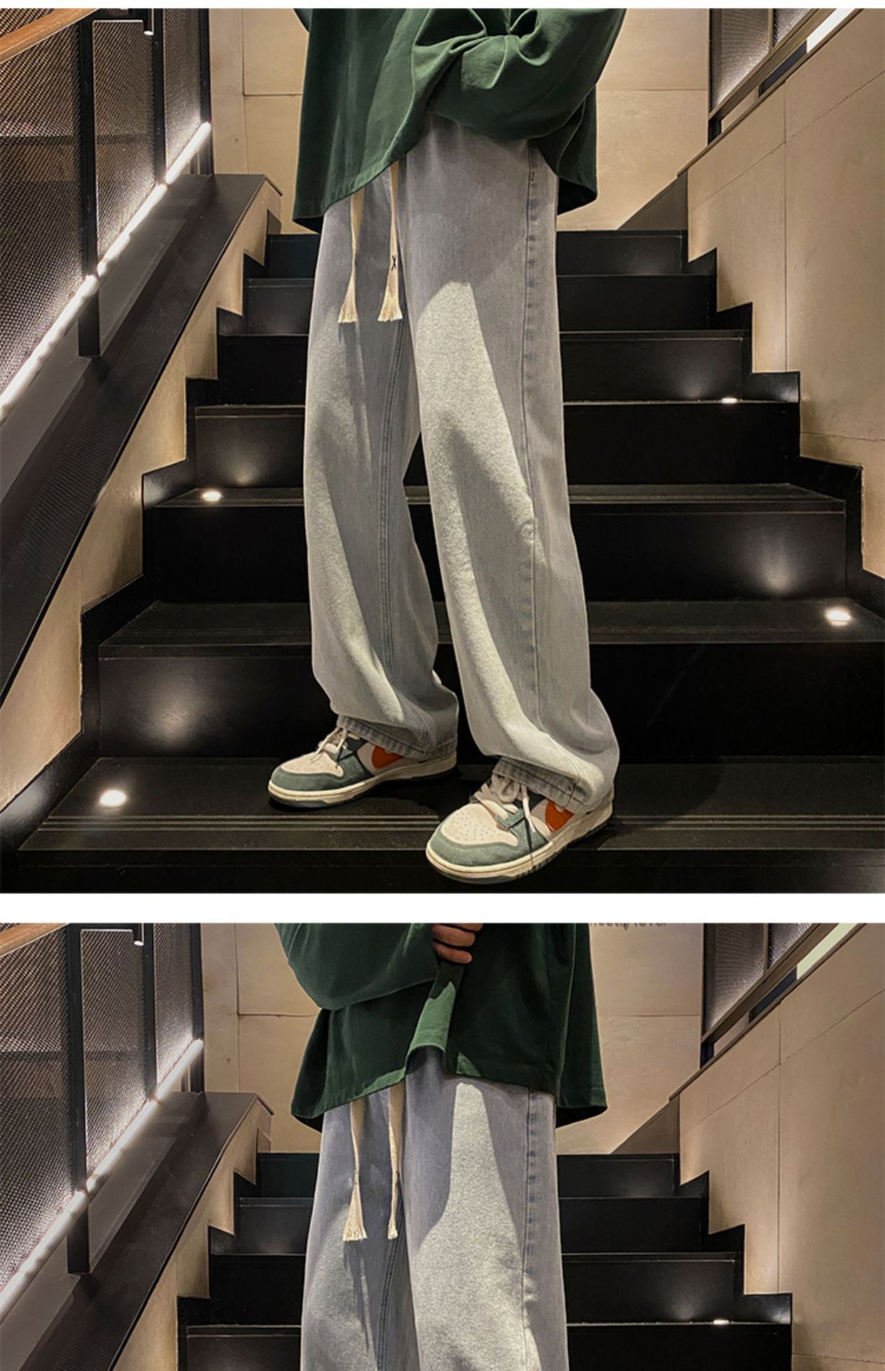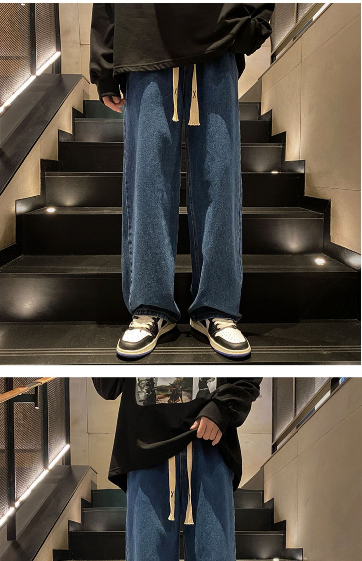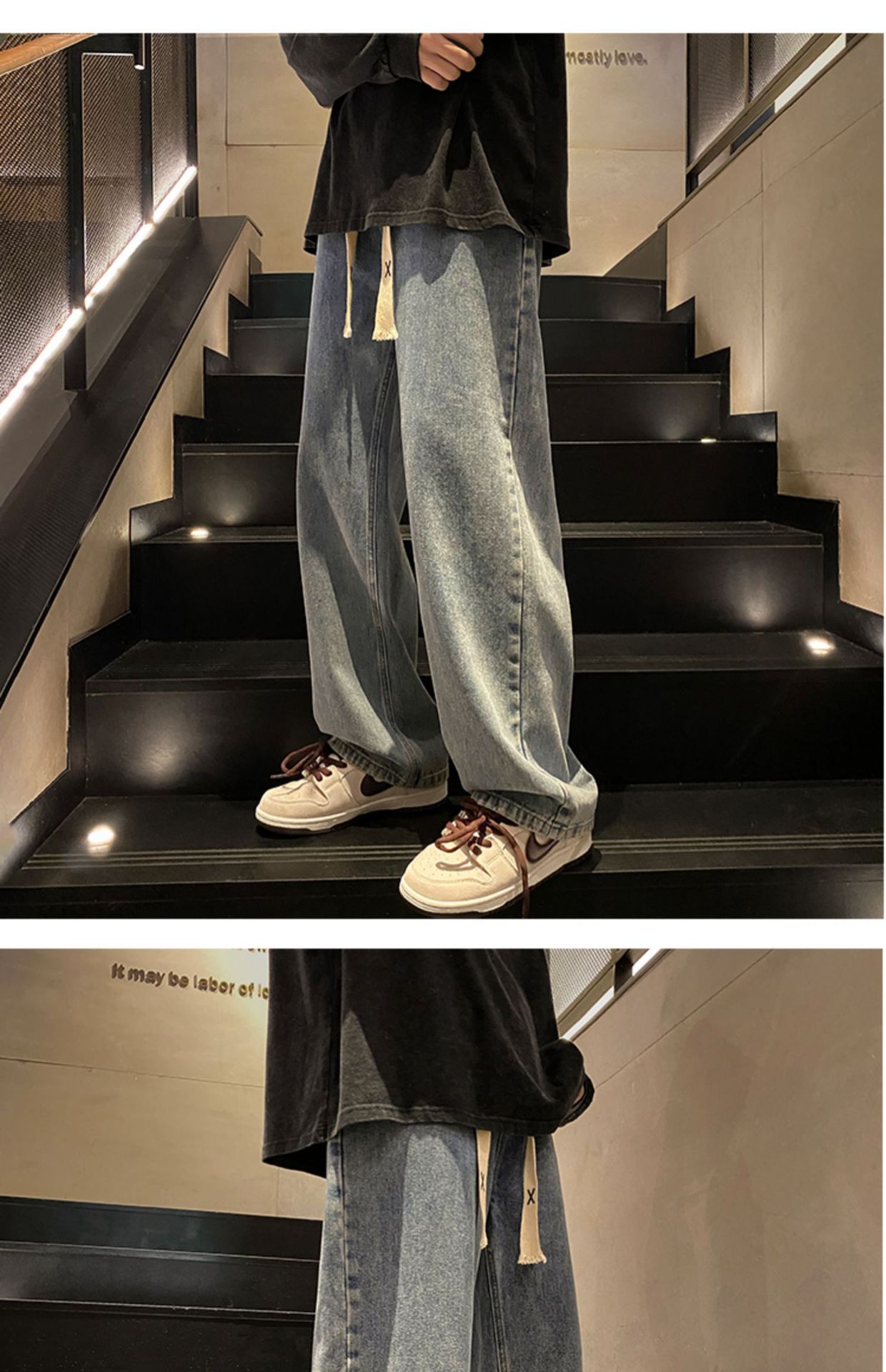 美式复古男士牛仔裤秋冬季直筒宽松潮牌阔腿裤高街百搭休闲长裤子